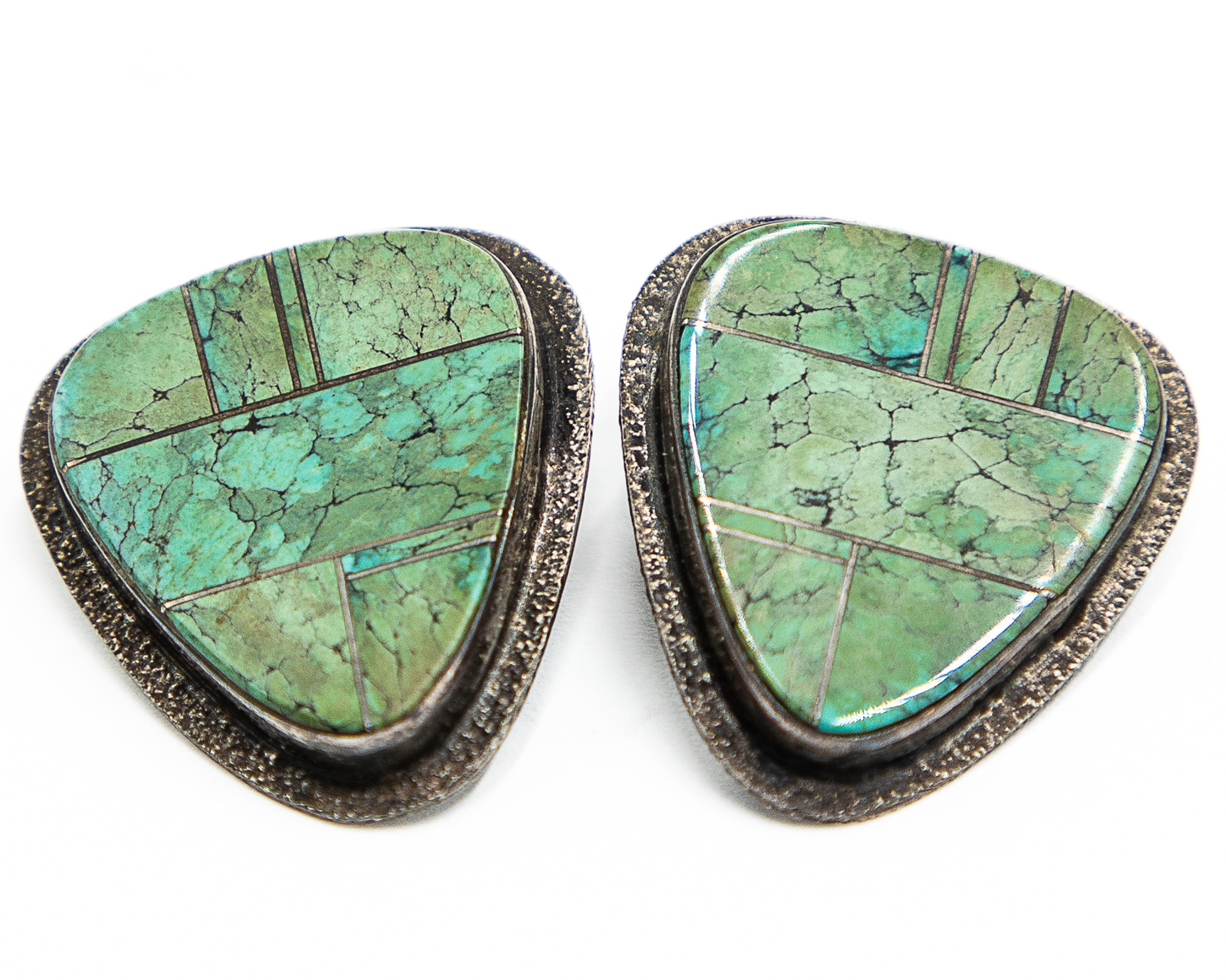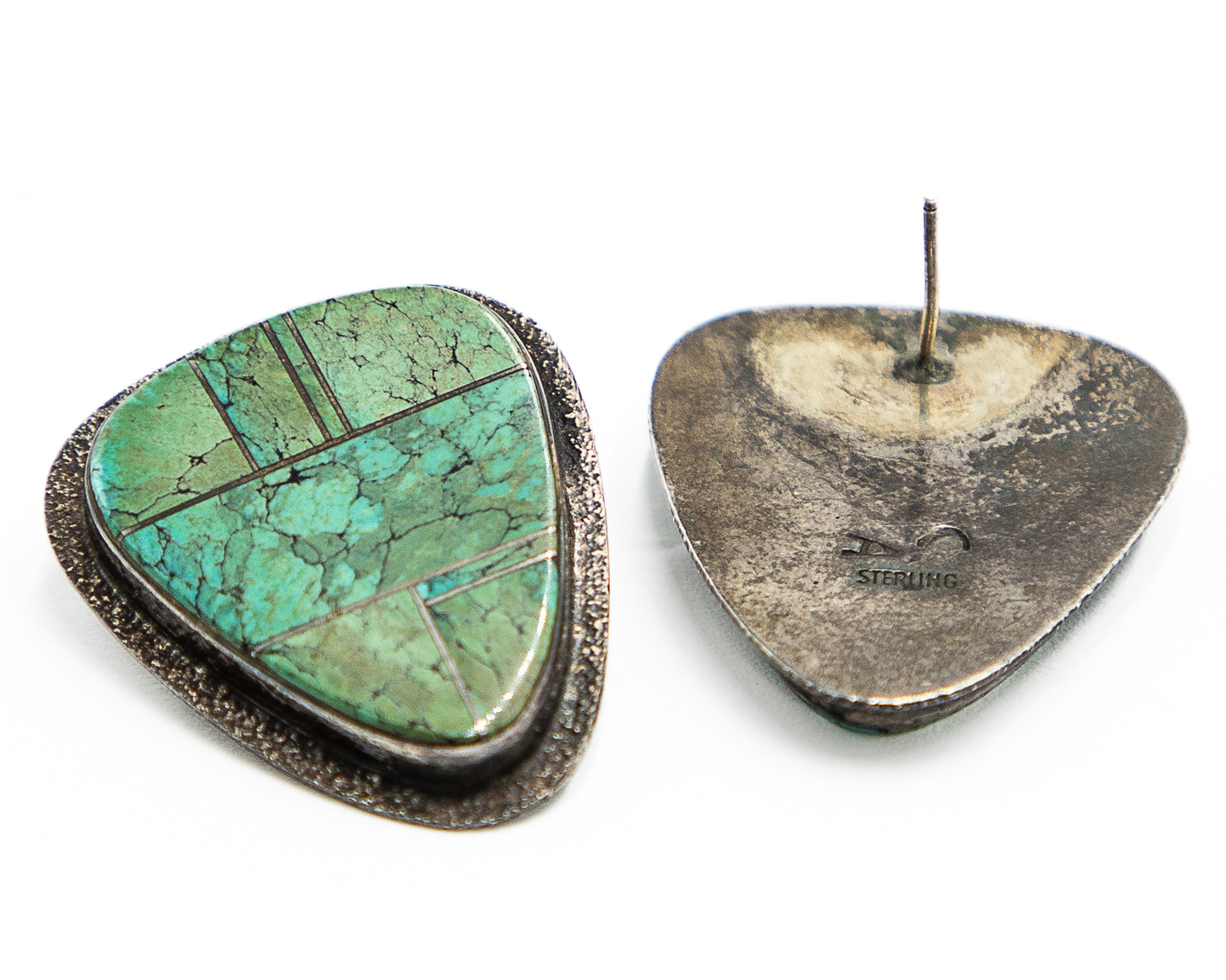 Cecil Ashley Navajo Green Turquoise Inlay Earrings 22.5g