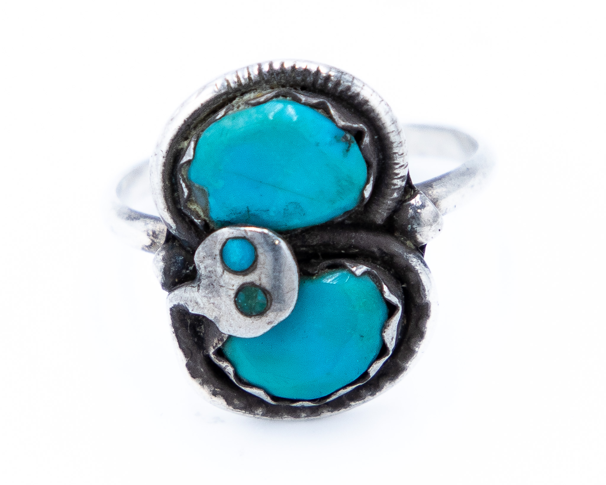 Effie Calavaza Zuni Sterling Turquoise Snake and Eggs Ring Sz. 11.5, 7g