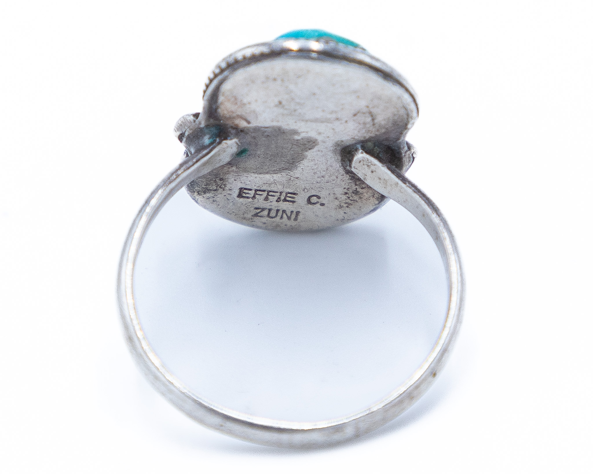 Effie Calavaza Zuni Sterling Turquoise Snake and Eggs Ring Sz. 11.5