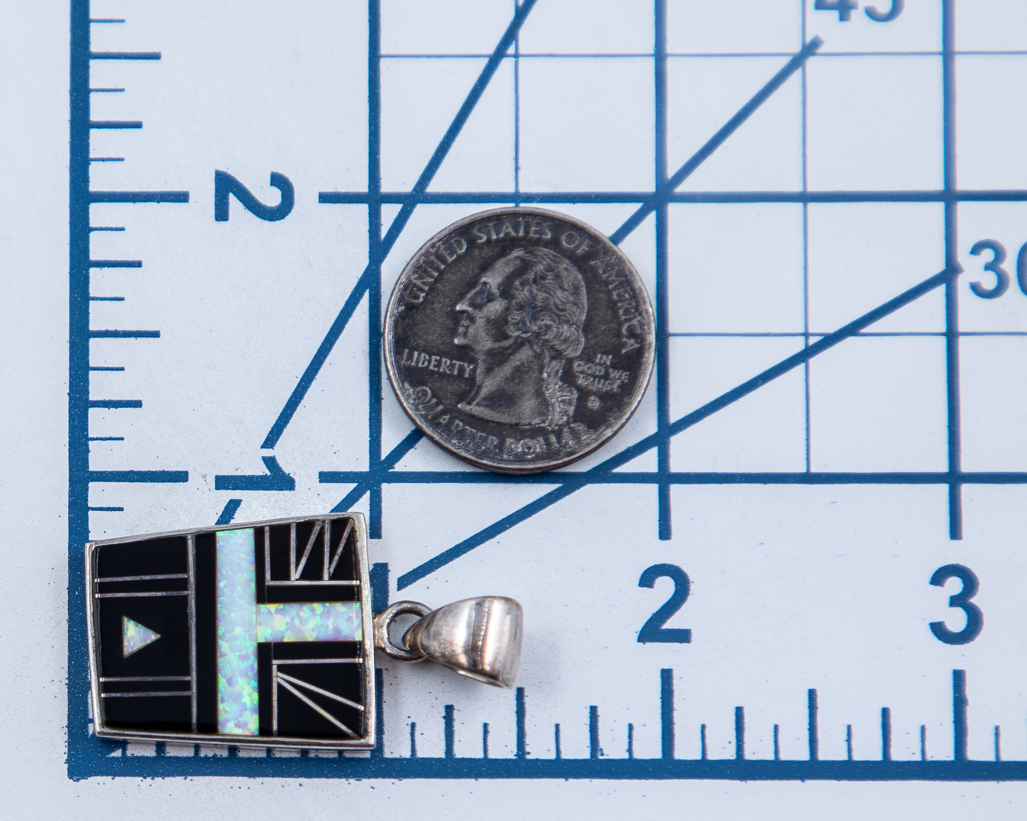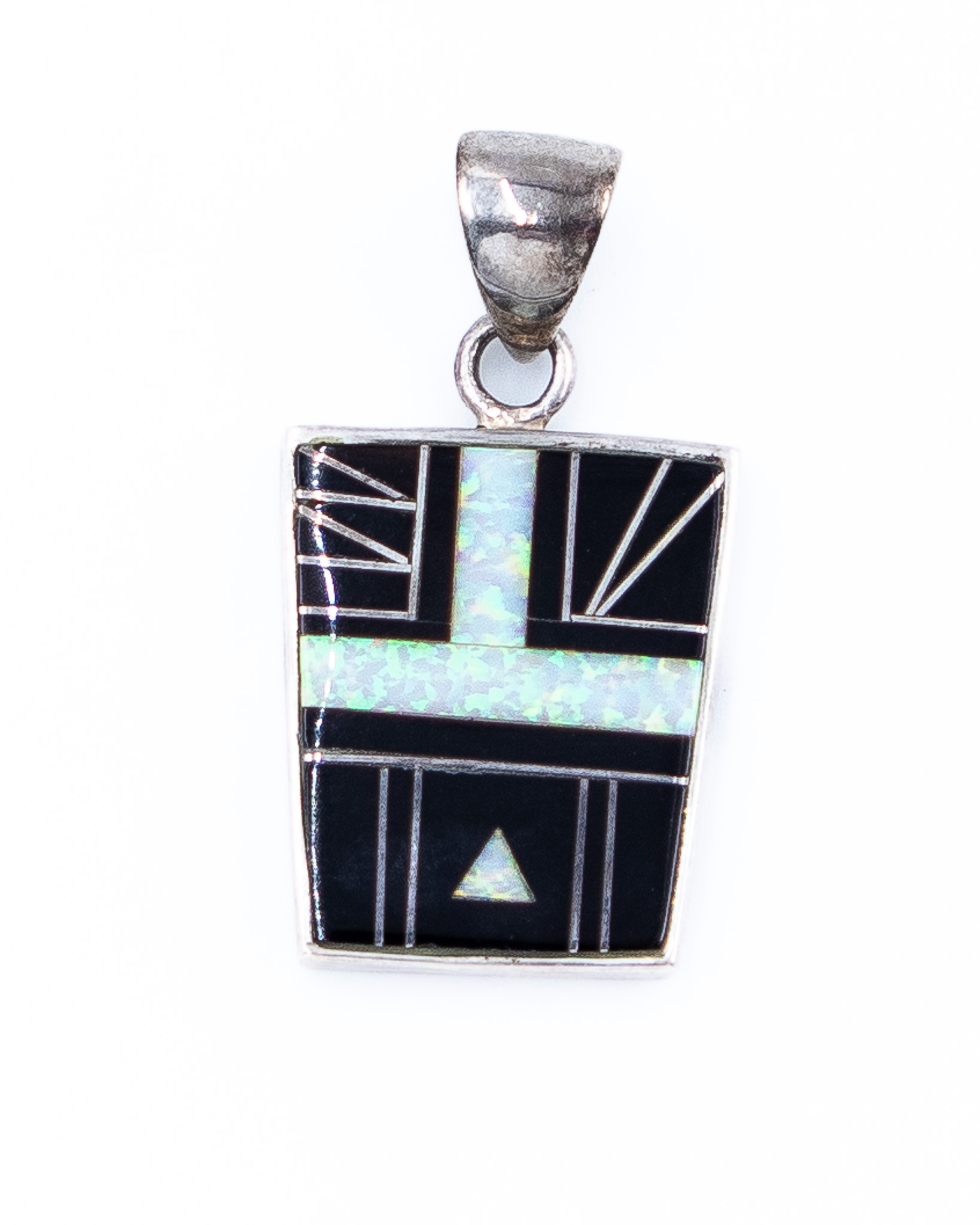 Vintage Zuni Sunface Inlay Sterling Pendant 8g-Onyx, Synthetic Opal