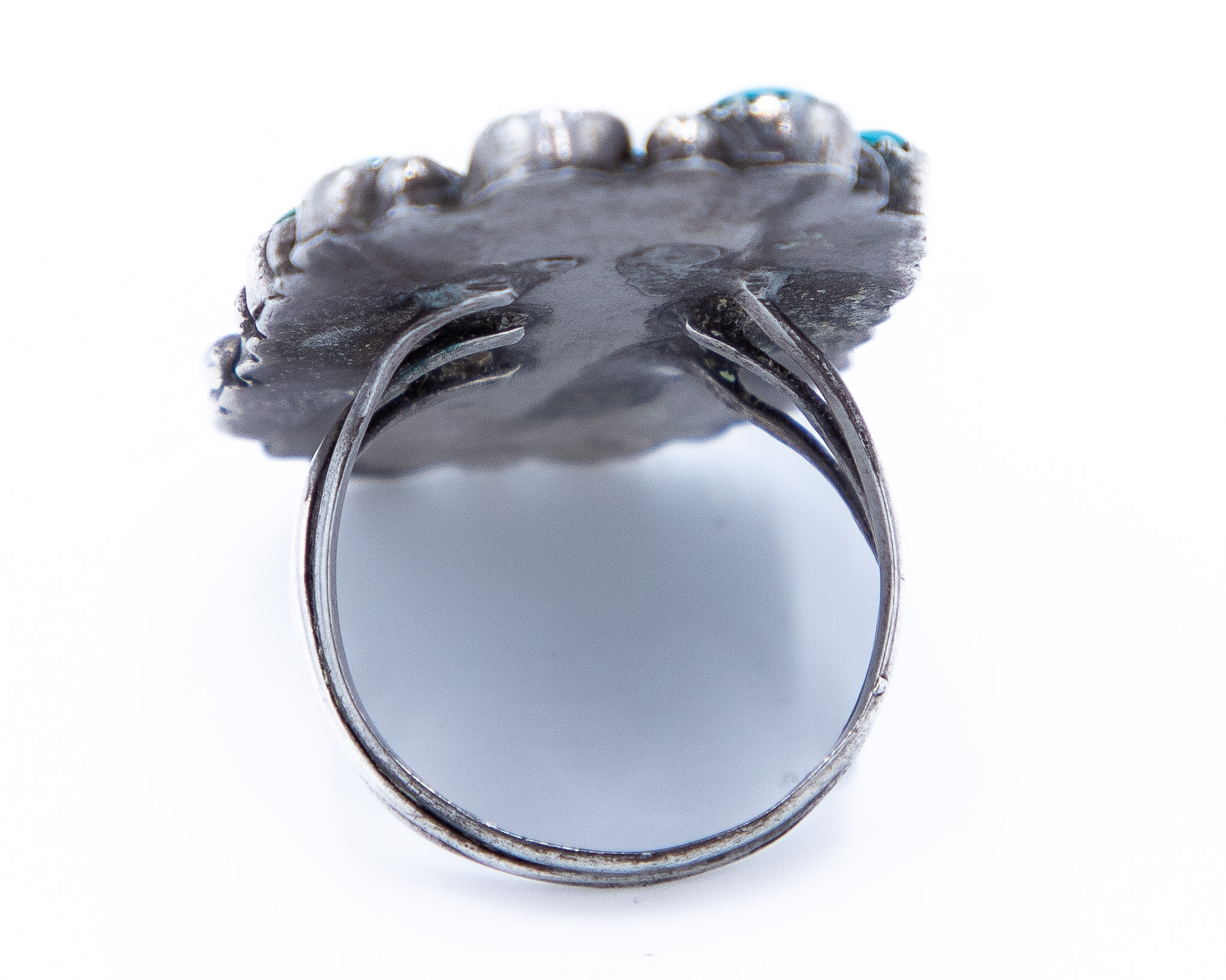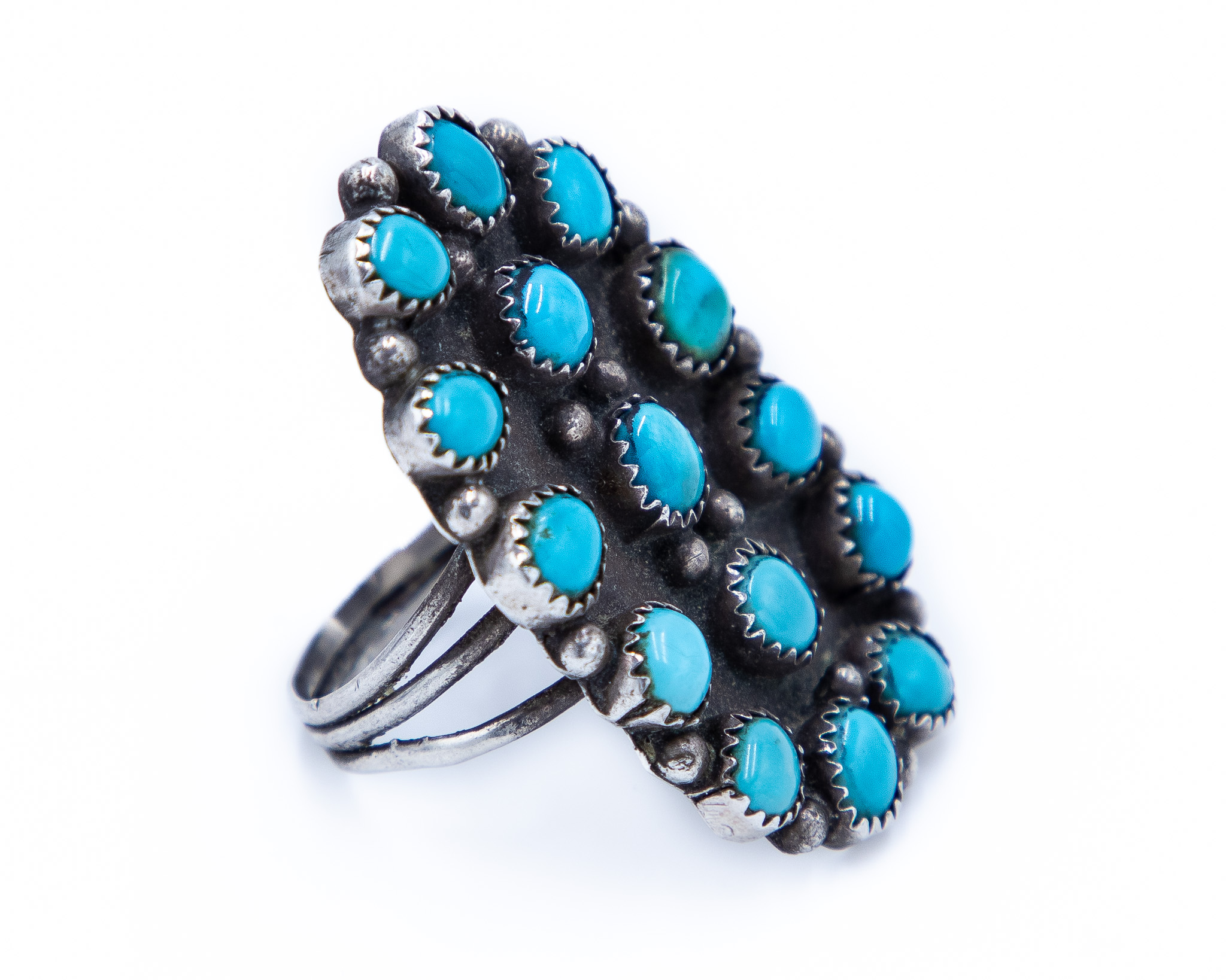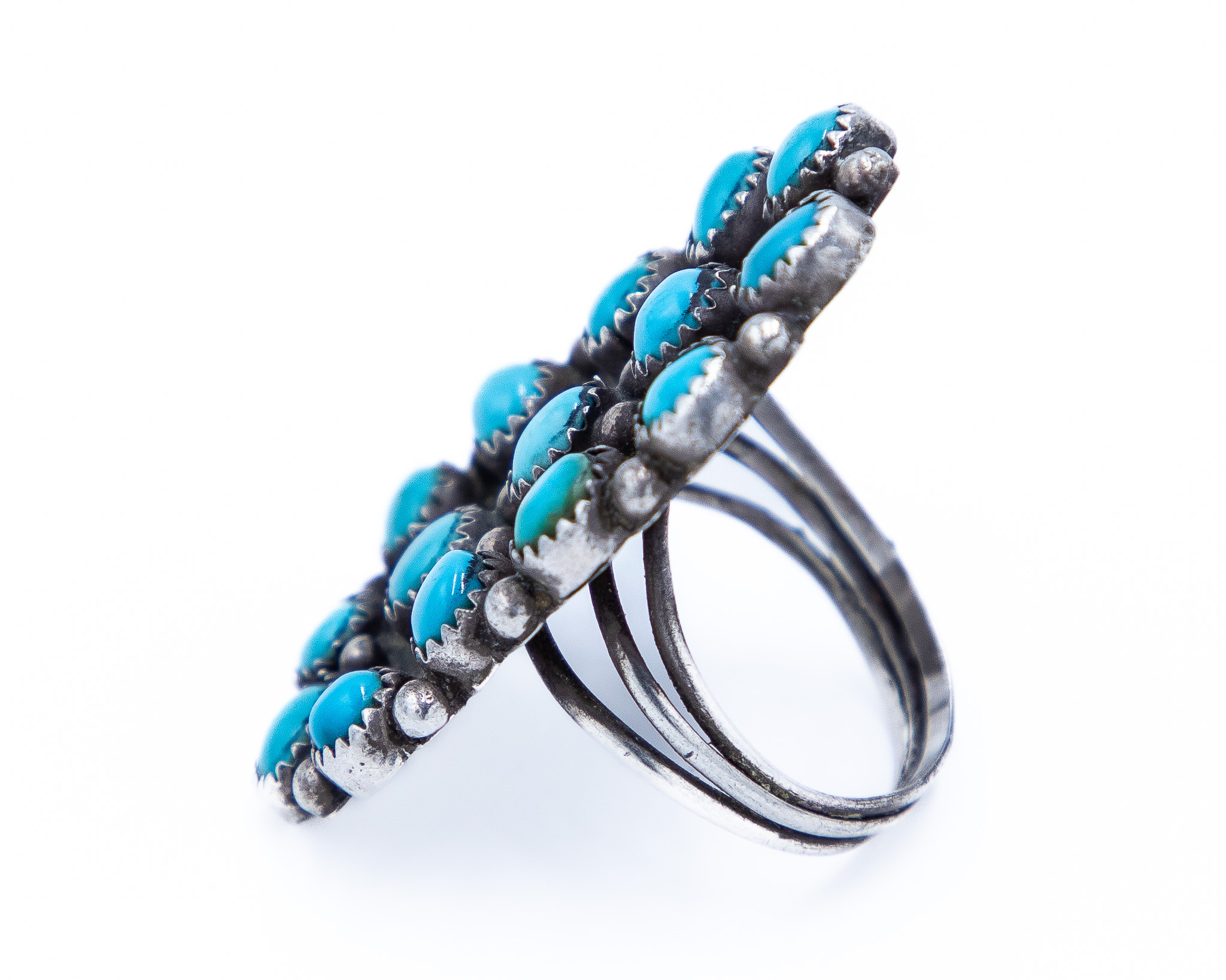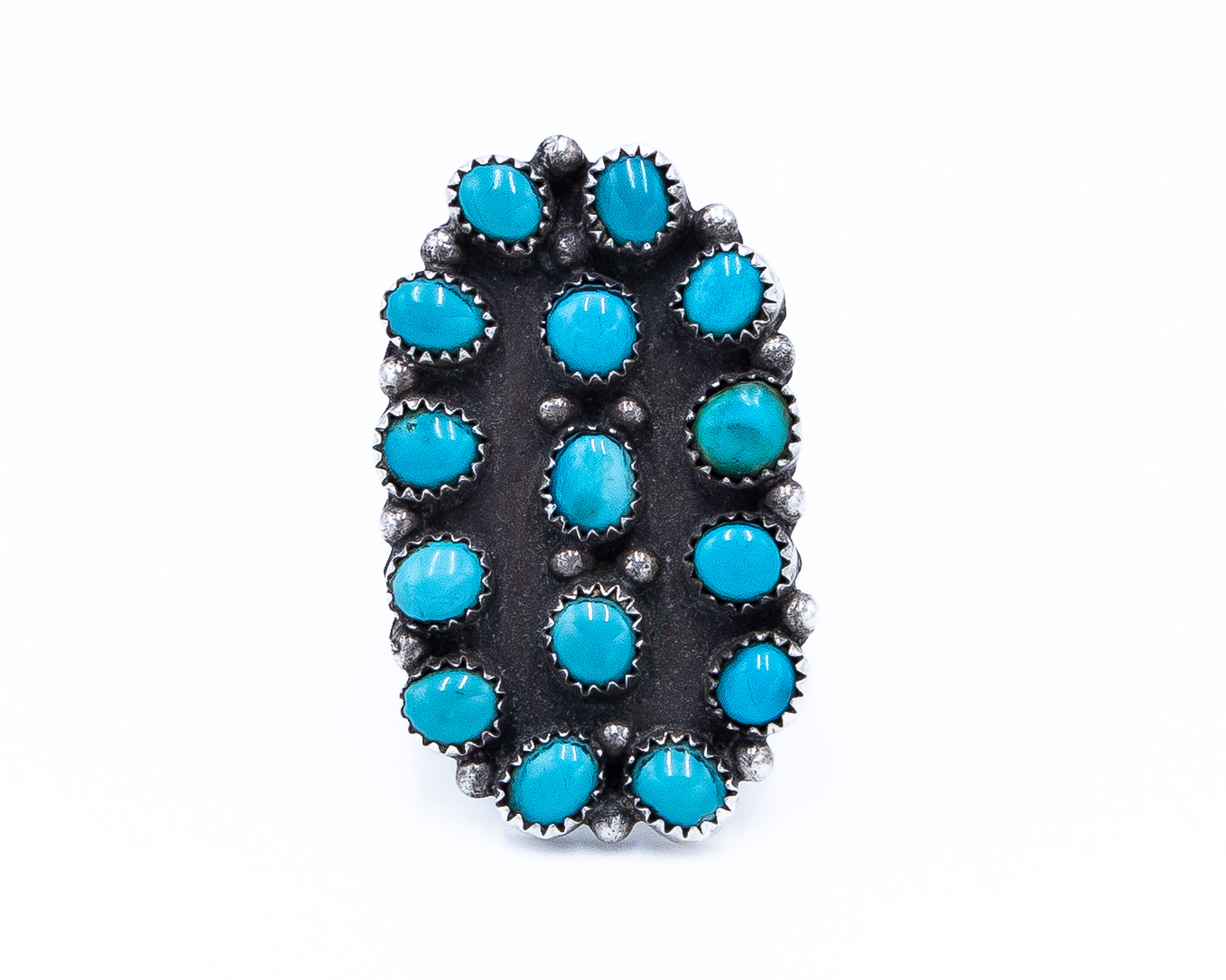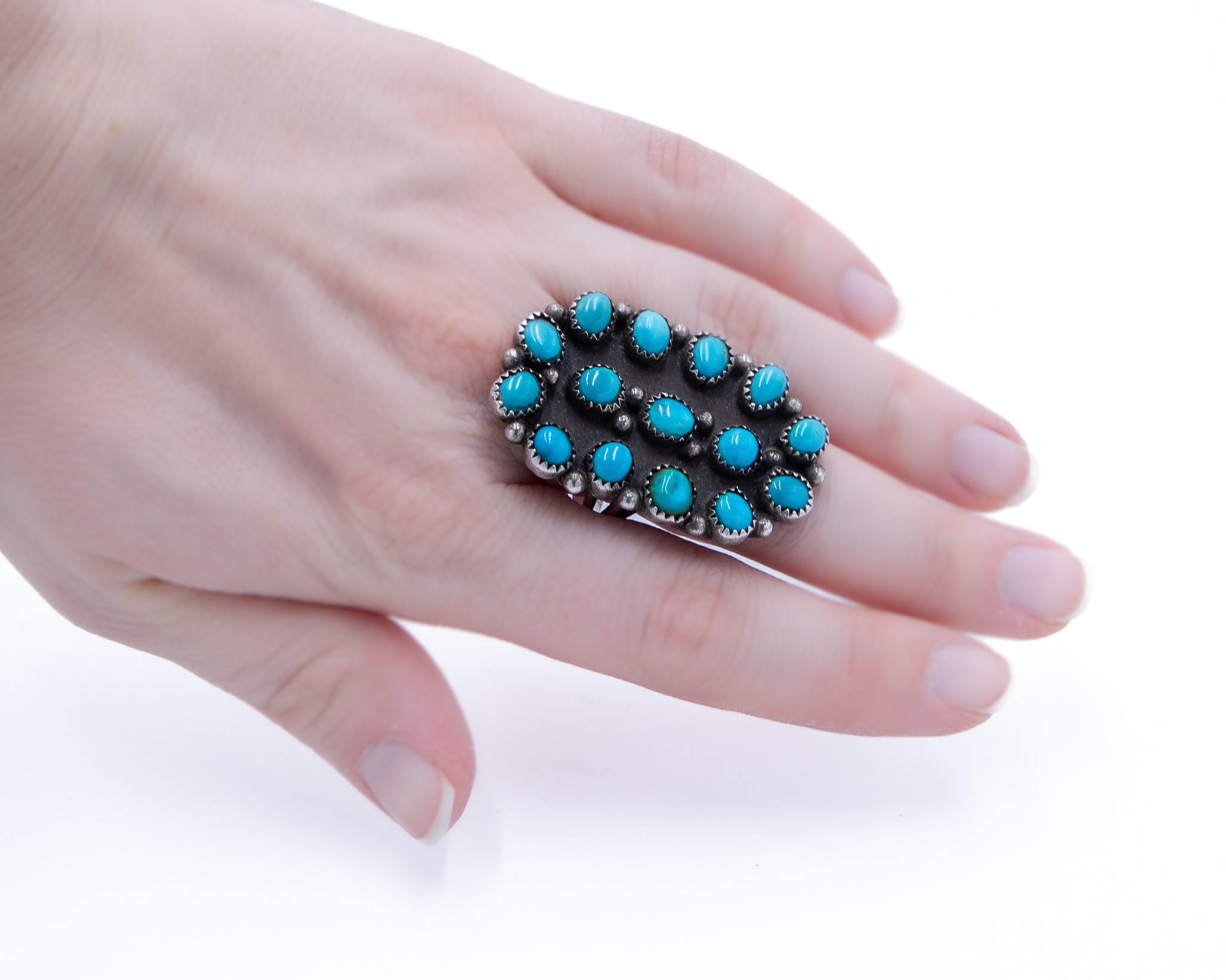Large Vintage Turquoise Cluster Sterling Ring Sz. 12, 13g