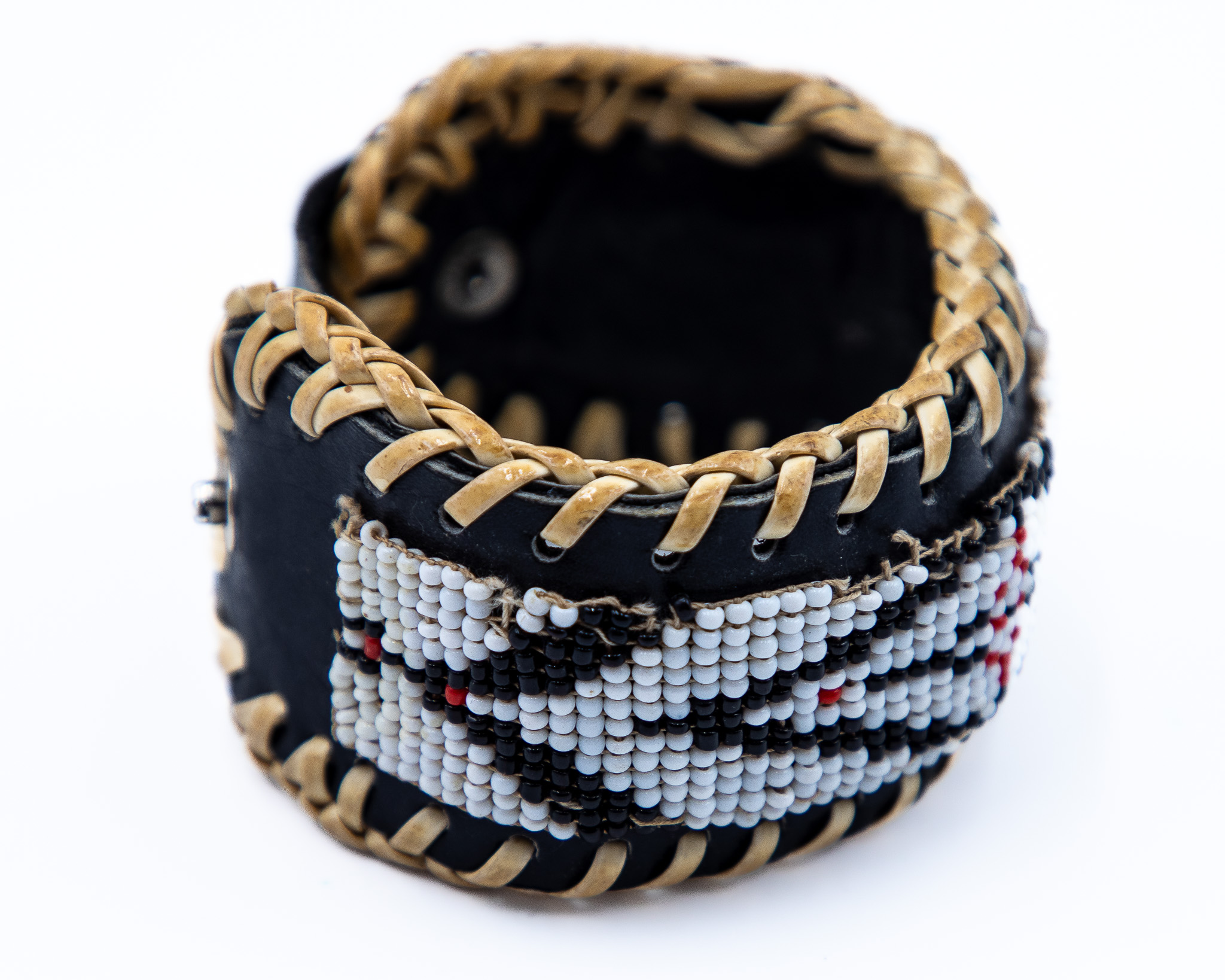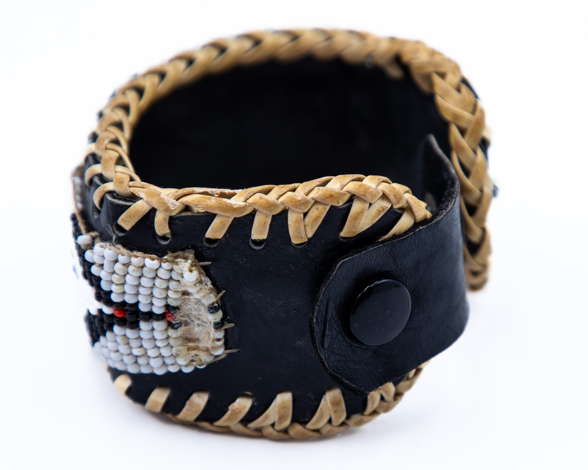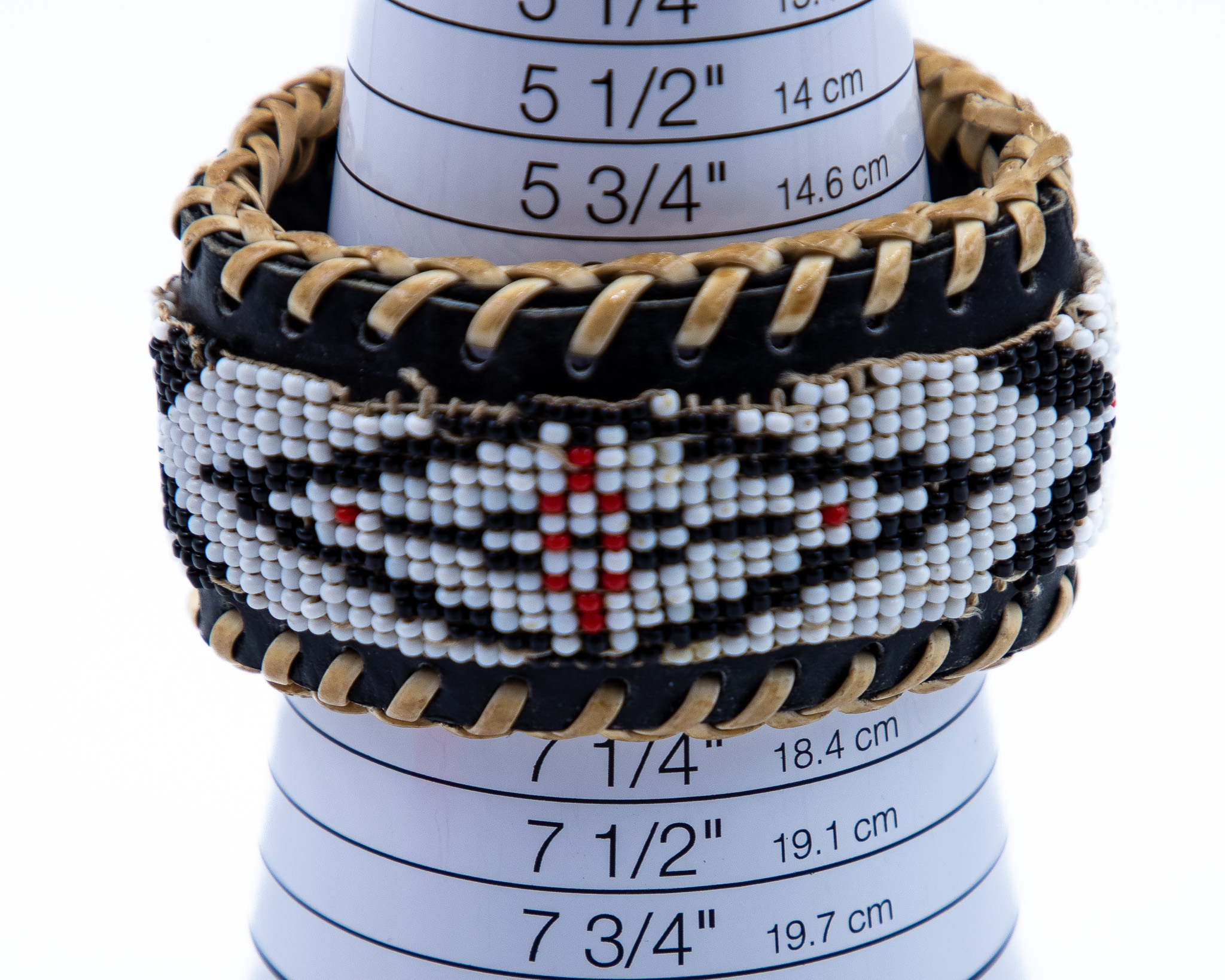 Vintage Navajo Zuni Leather Microbead Cuff Bracelet As Is-Damage Shown in Photos