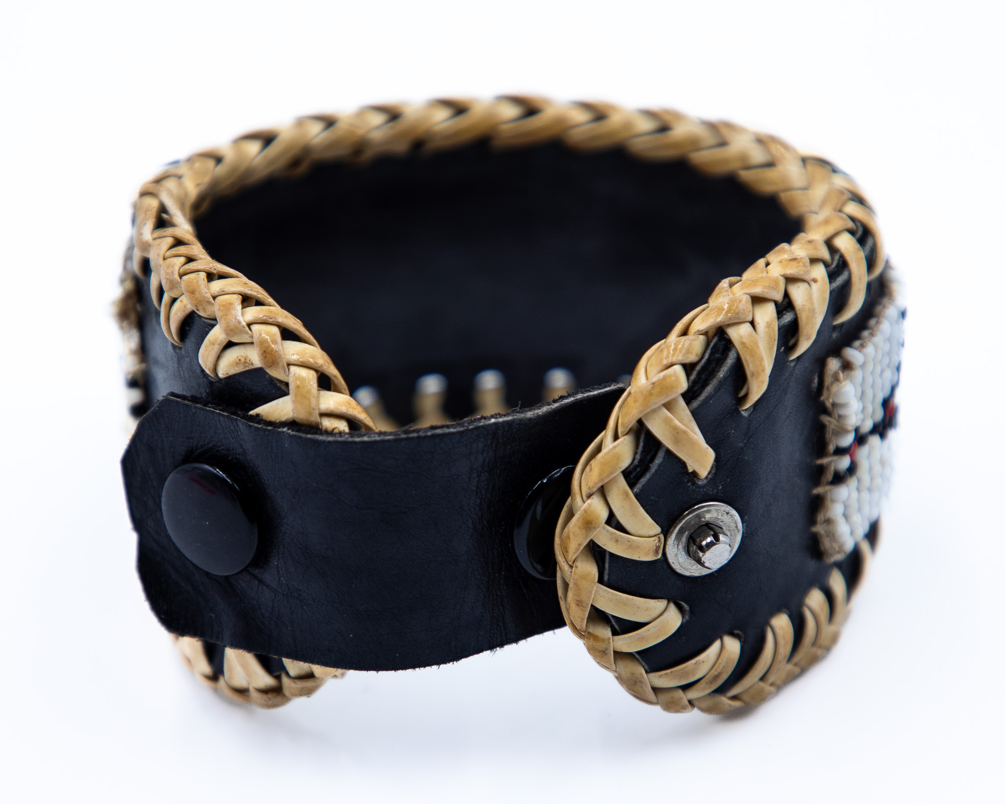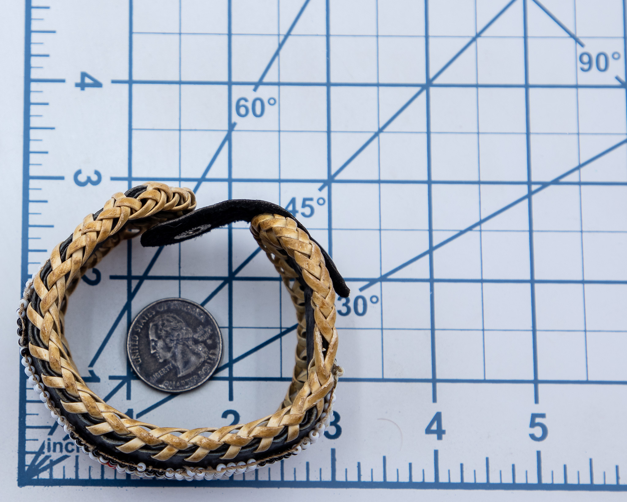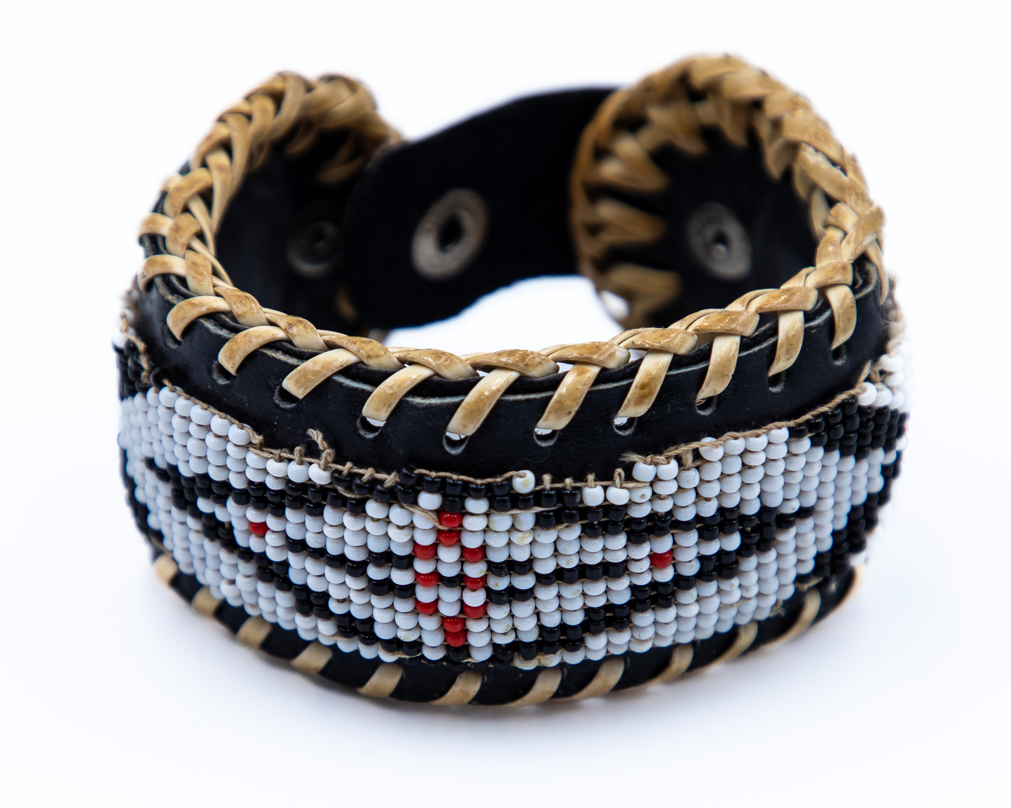 Vintage Navajo Zuni Leather Microbead Cuff Bracelet As Is-Damage Shown in Photos