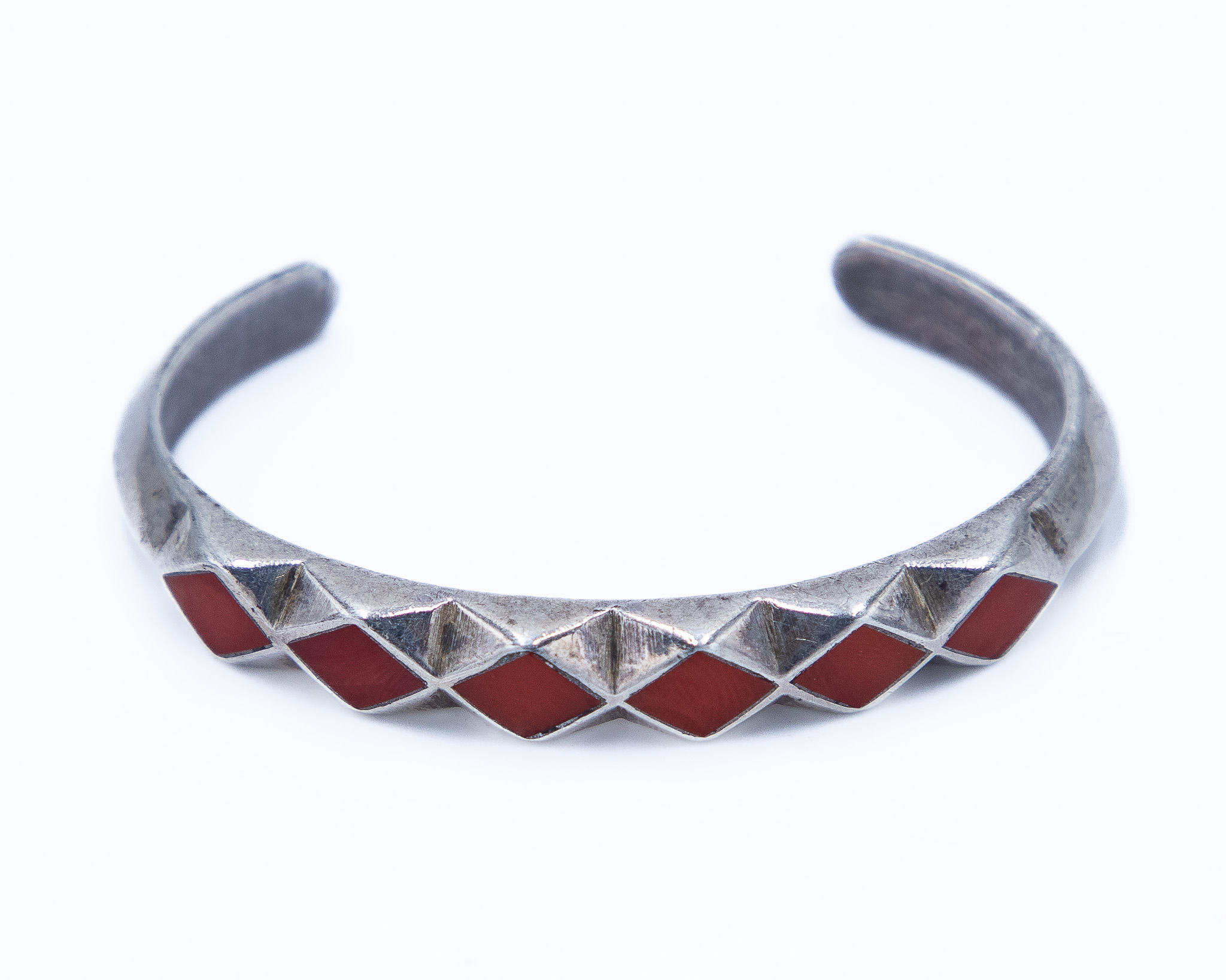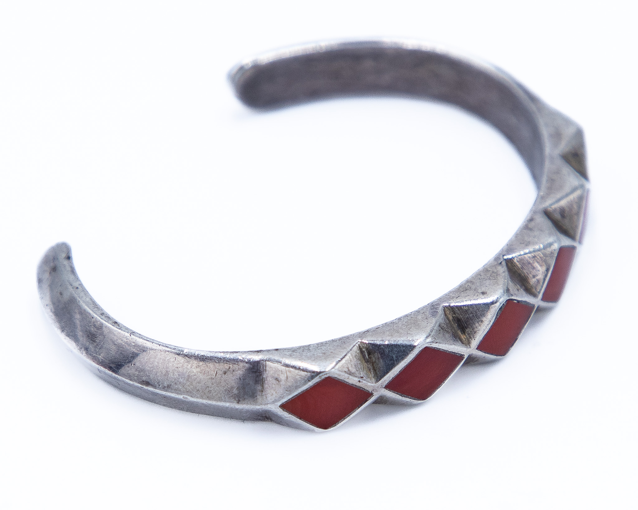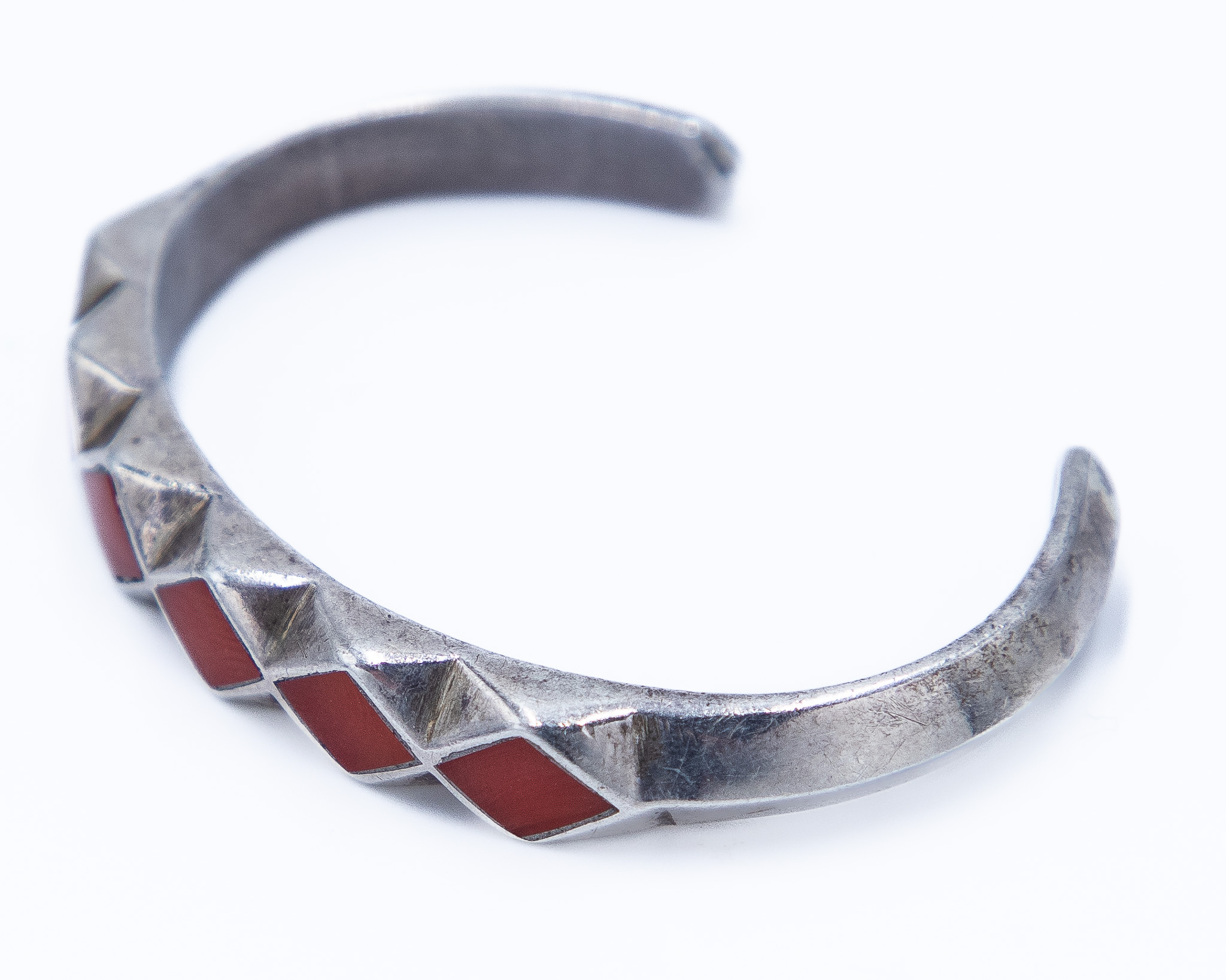 Vintage Native American Coral Sterling Cuff Bracelet 23g