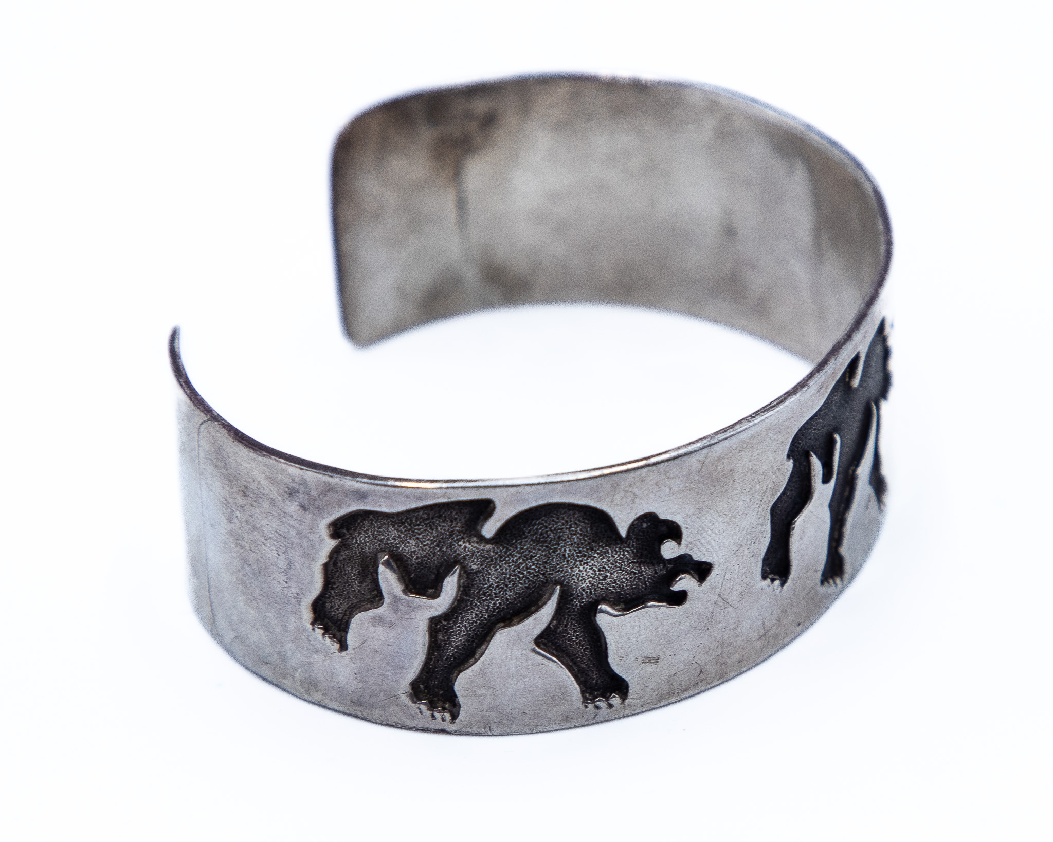 J. Nelson Sterling Bear Cuff Bracelet 59g
