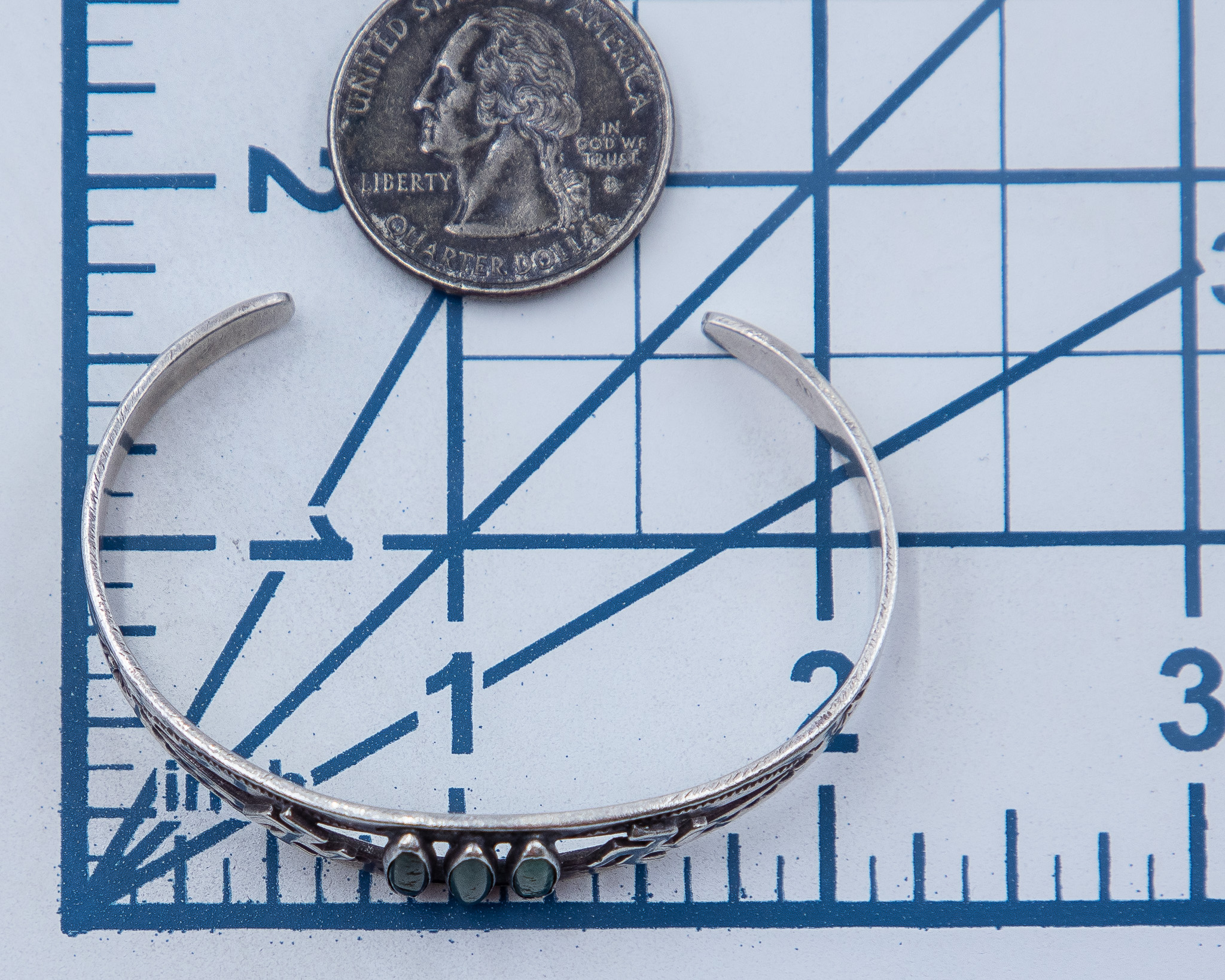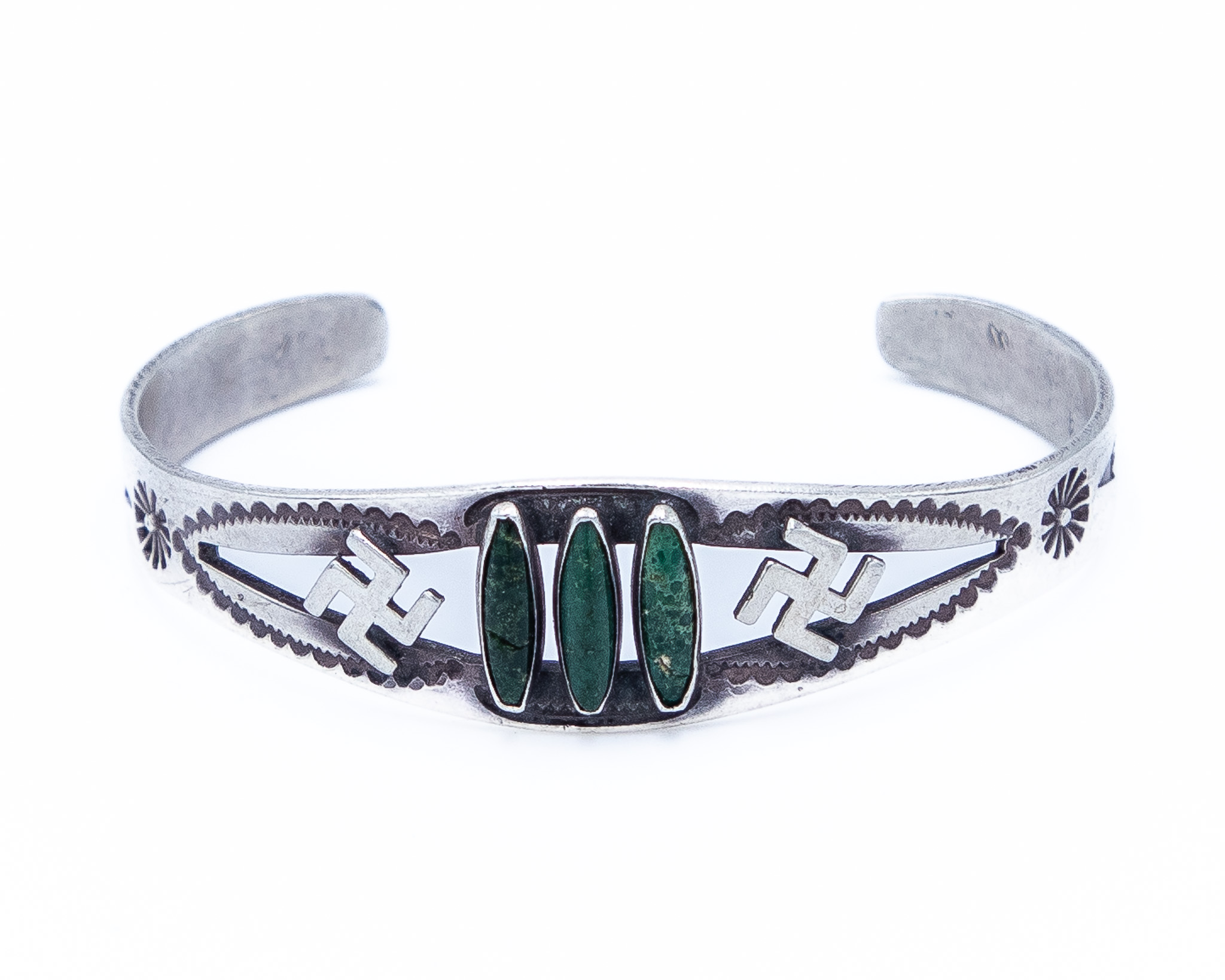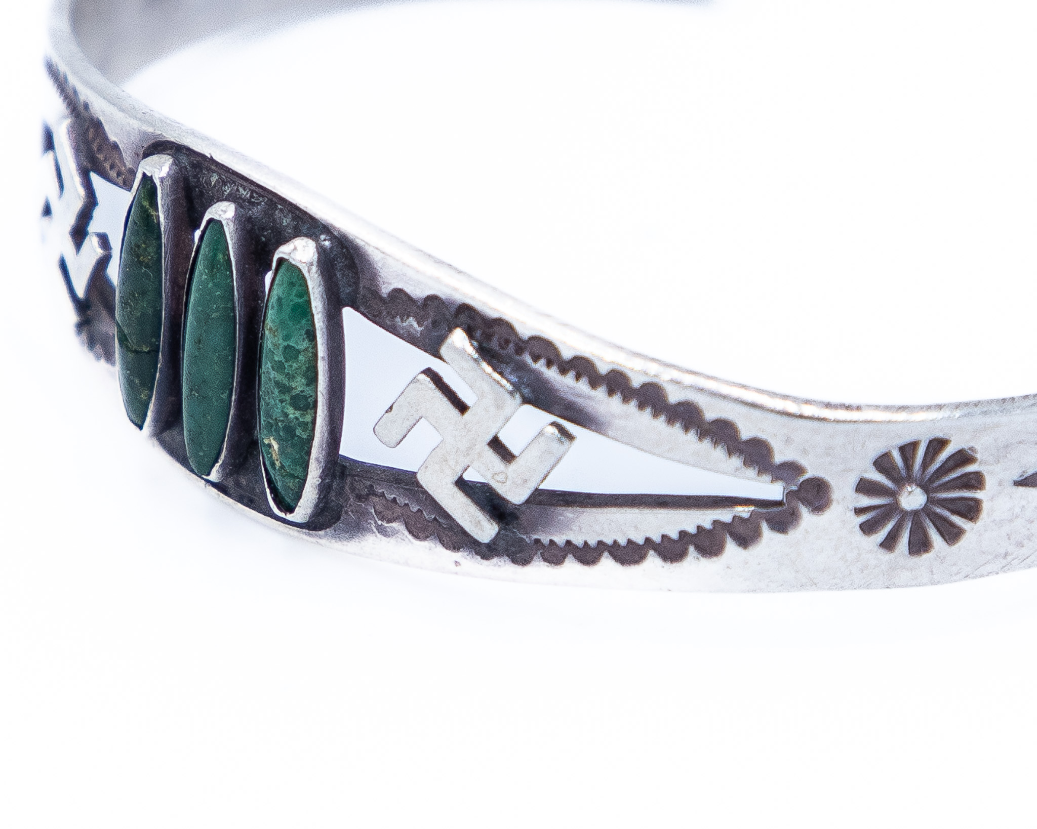 Pre-1940 Navajo Whirling Logs Sterling Green Turquoise Cuff Bracelet 11g-Cracks in stone