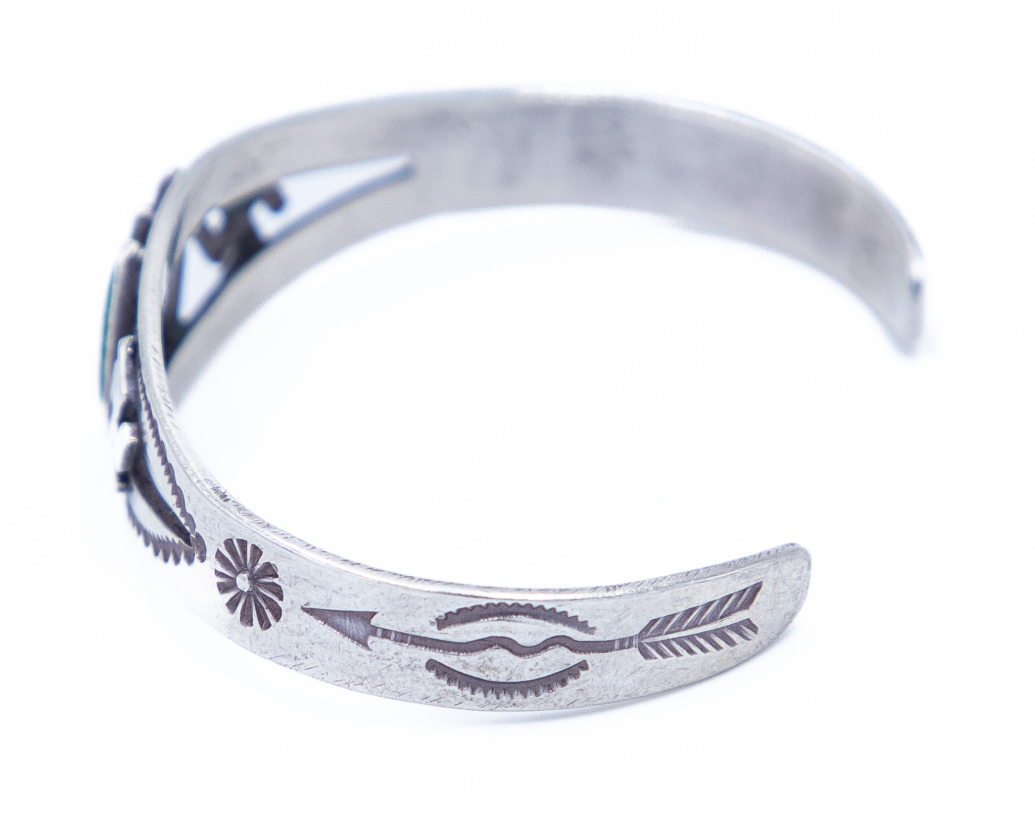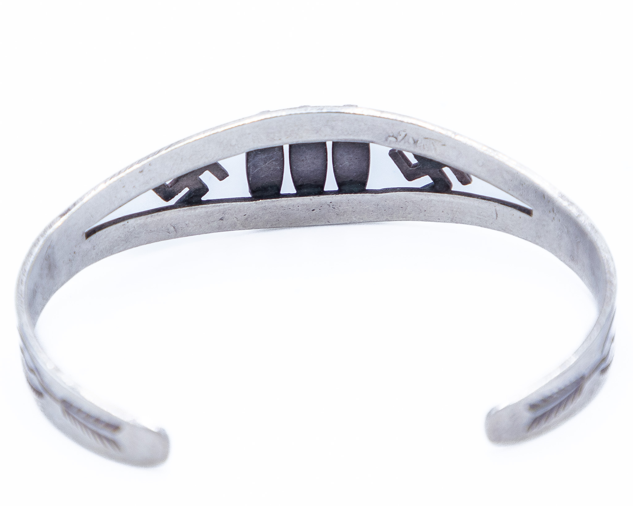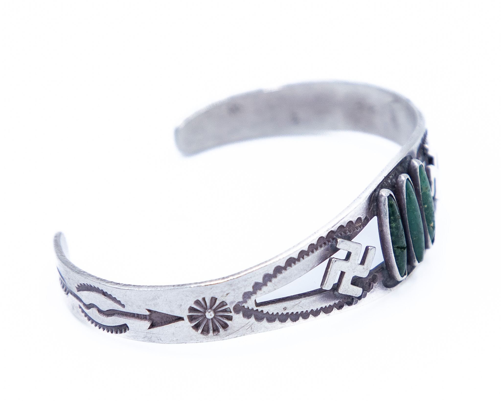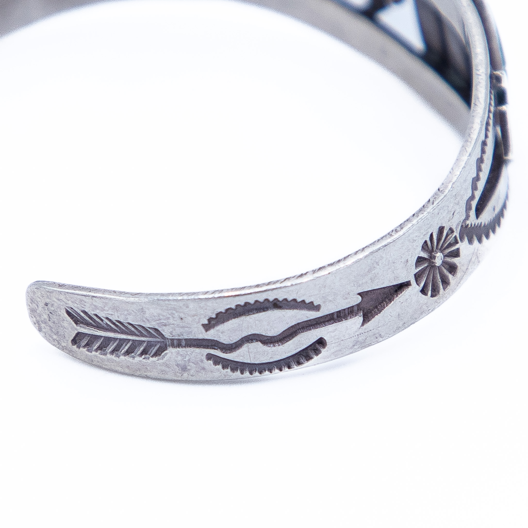 Pre-1940 Navajo Whirling Logs Sterling Green Turquoise Cuff Bracelet 11g-Cracks in stone