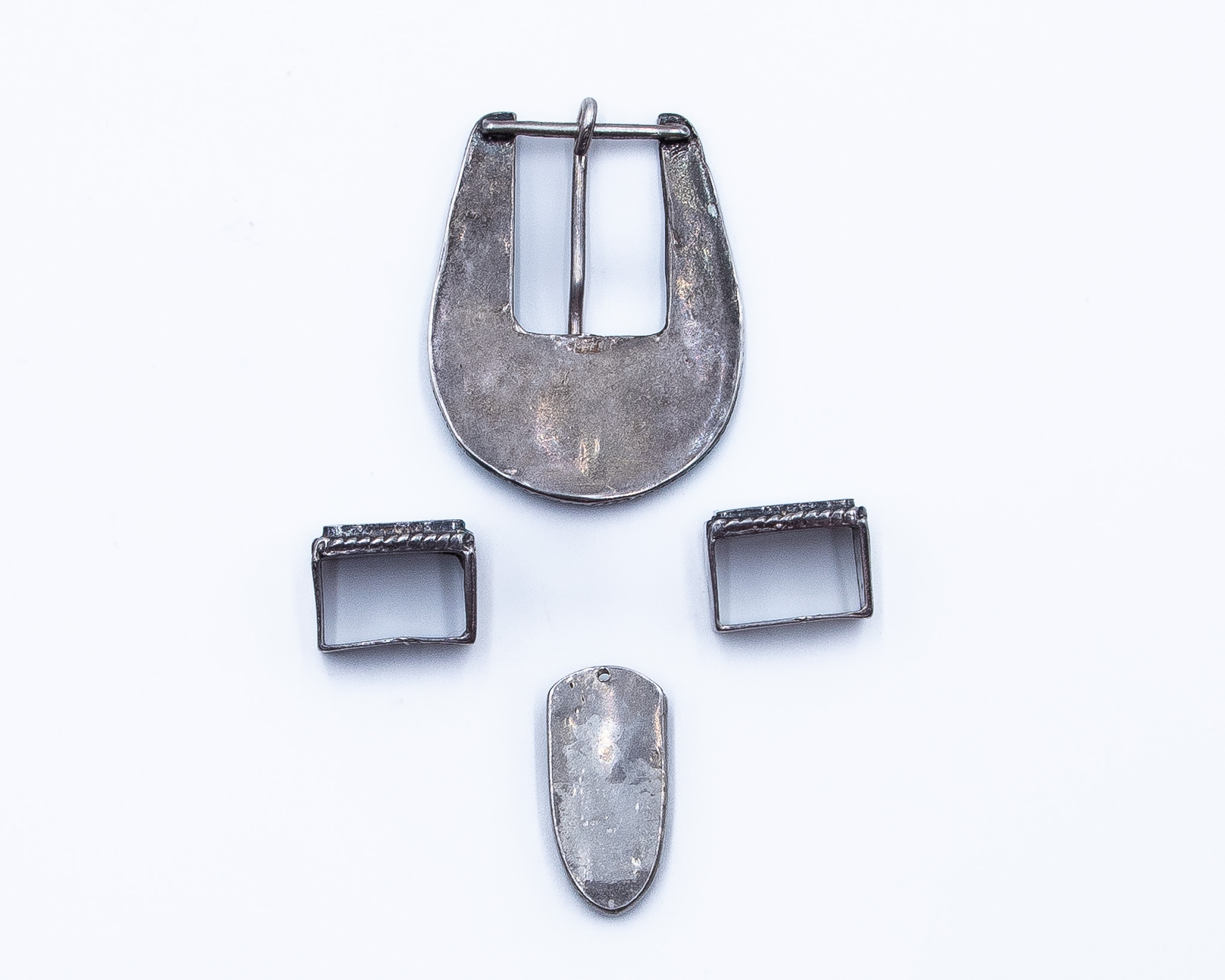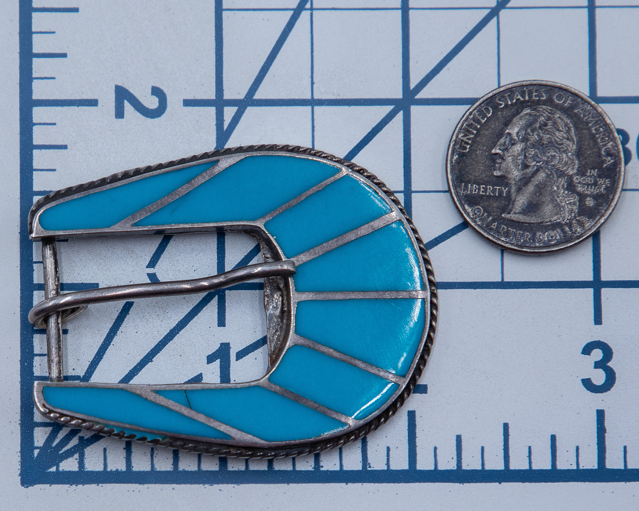 Vintage Zuni Sterling Turquoise Inlay Belt Buckle Loops & Tips 55g