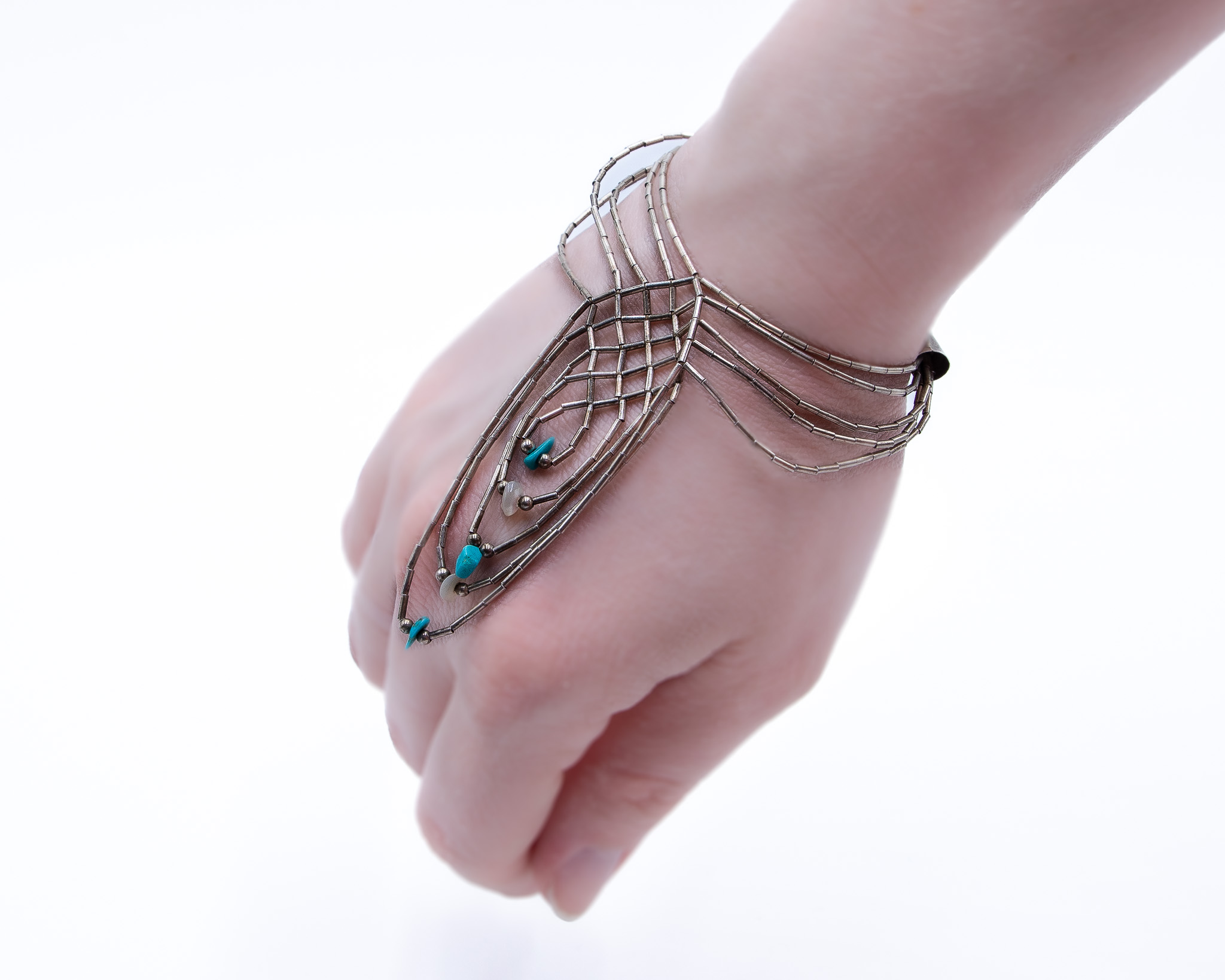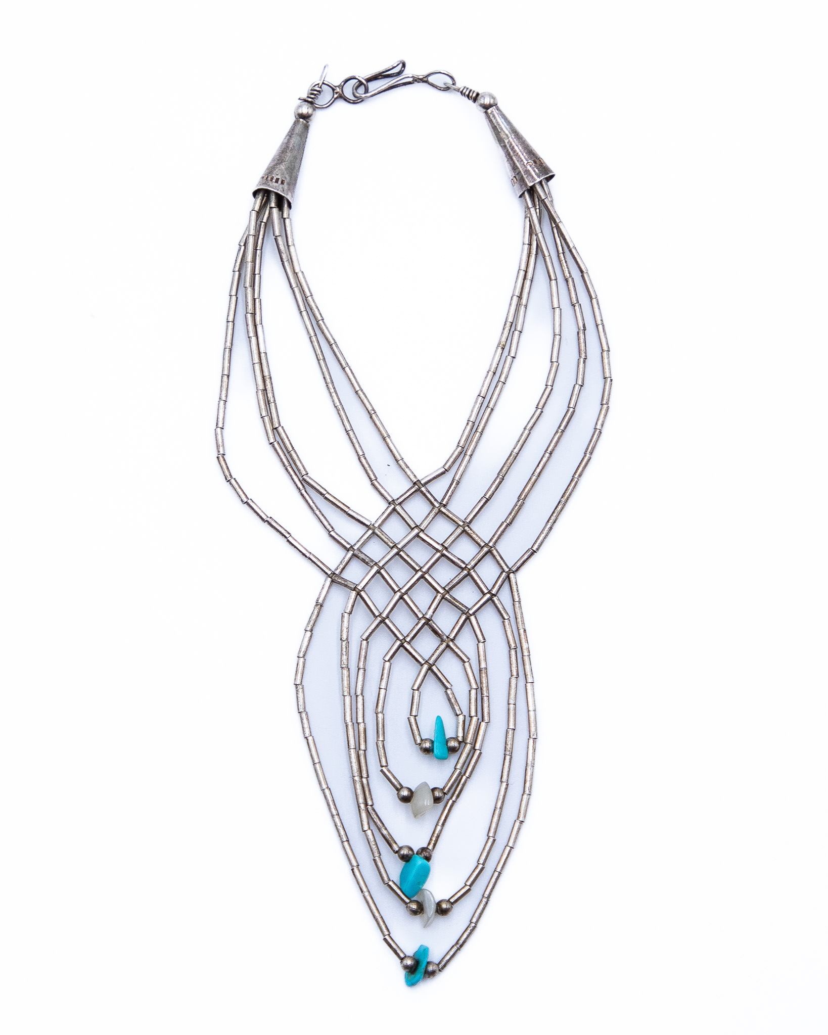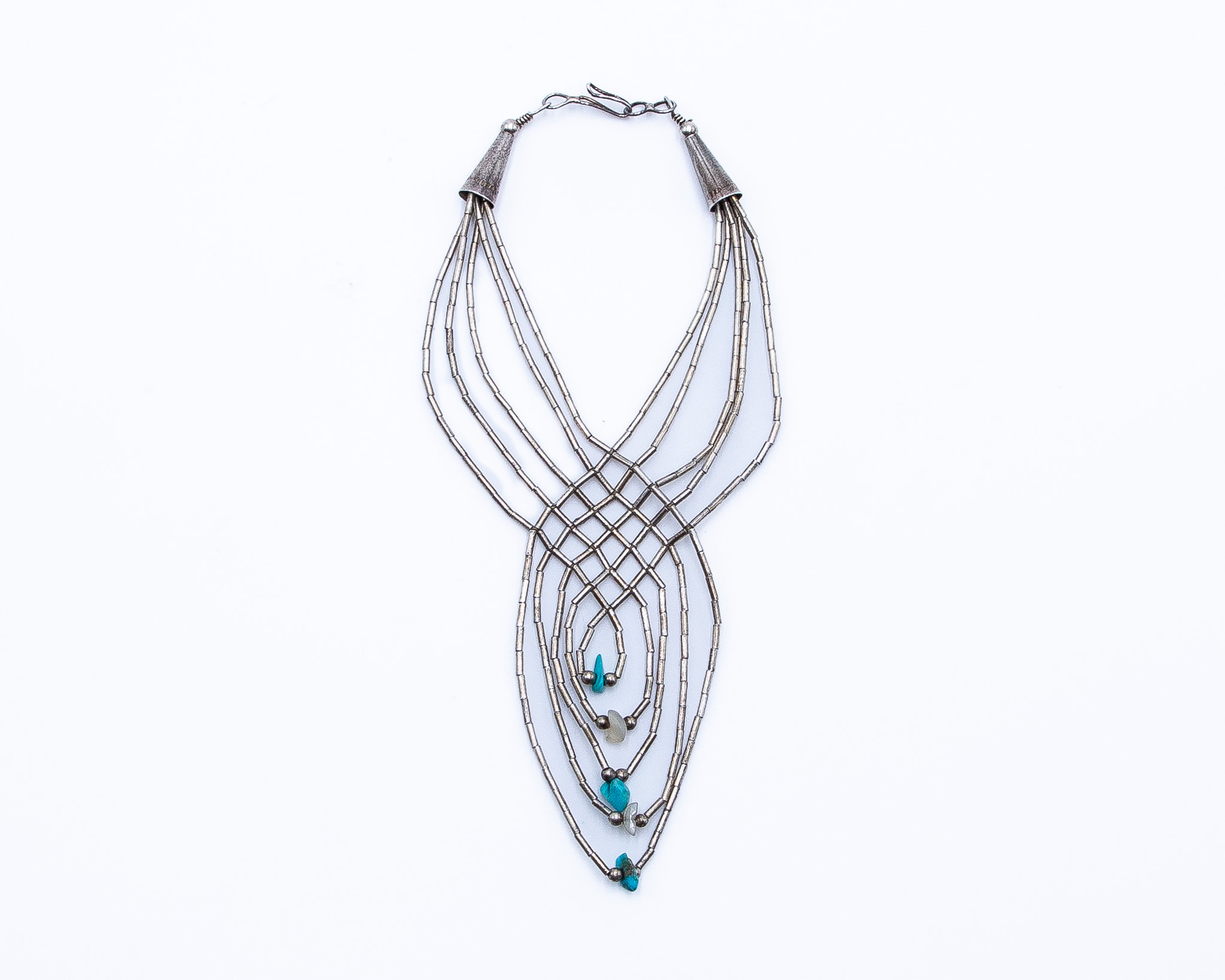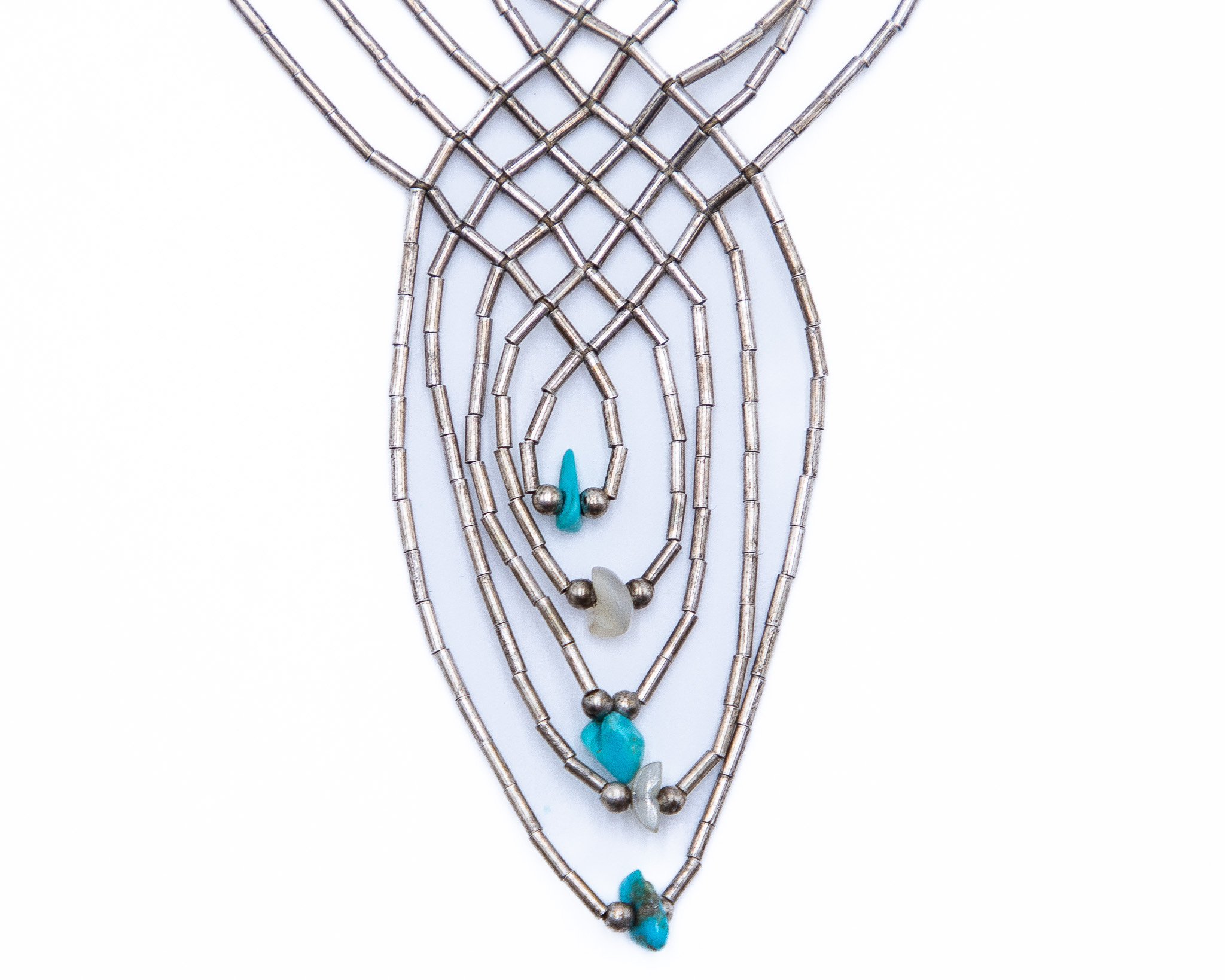 Vintage Liquid Silver Turquoise Mother Of Pearl Bracelet 9g