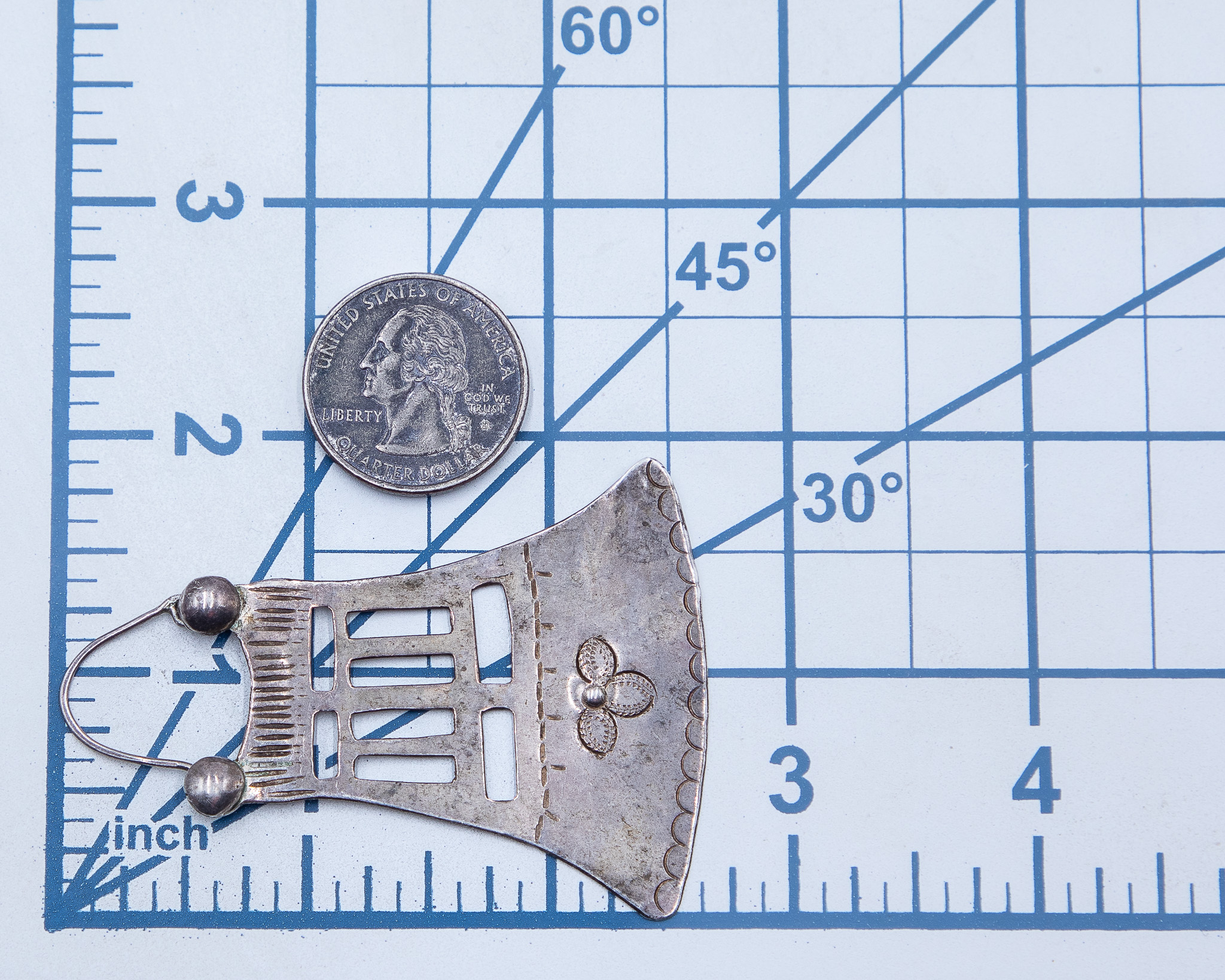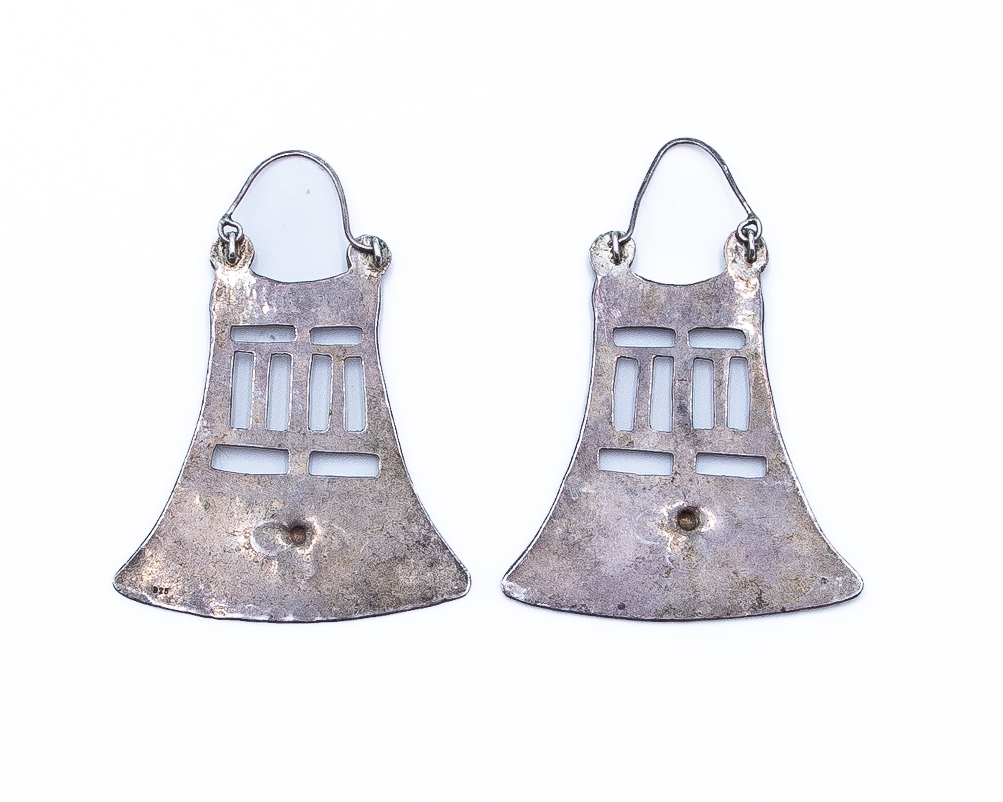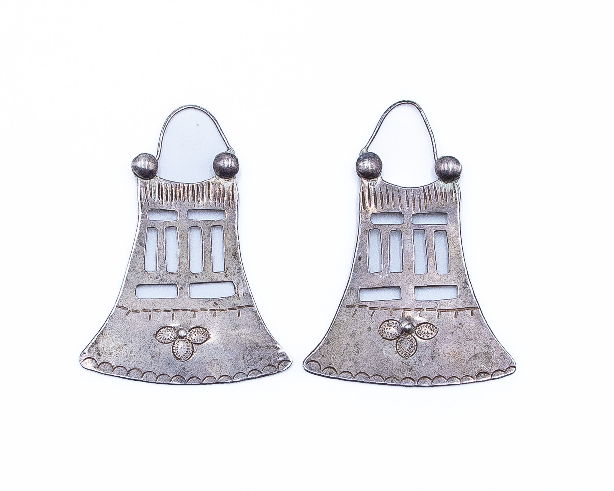Old Native American Sterling Hand Stamped Bell Earrings 15.5g