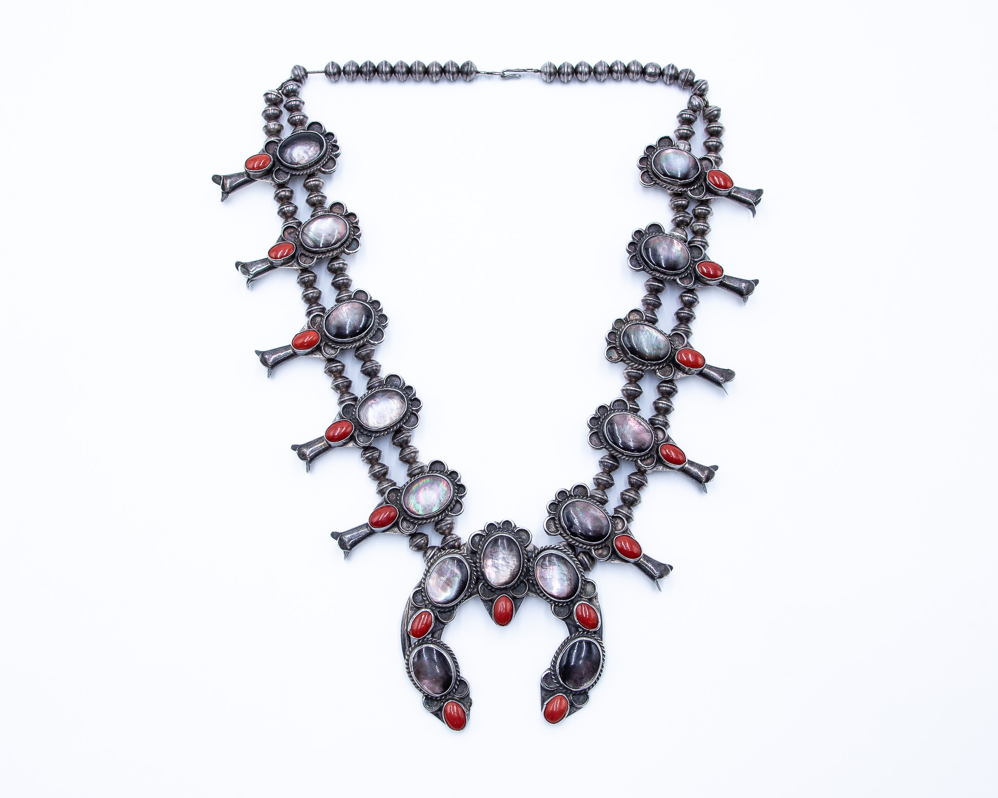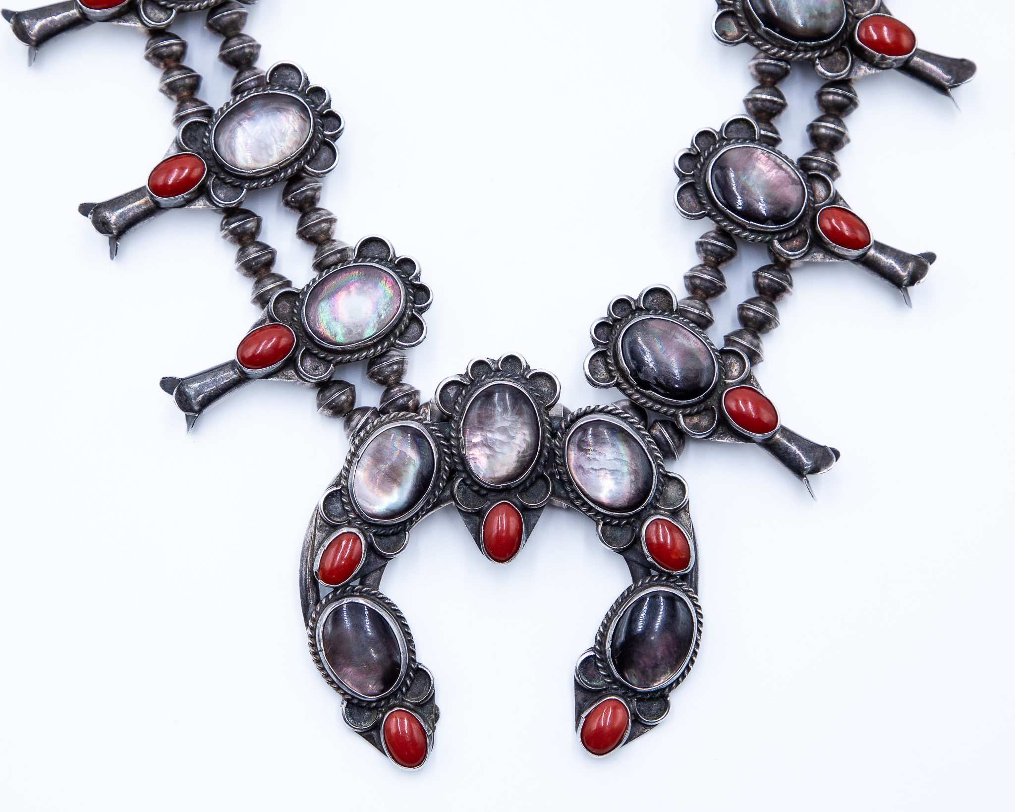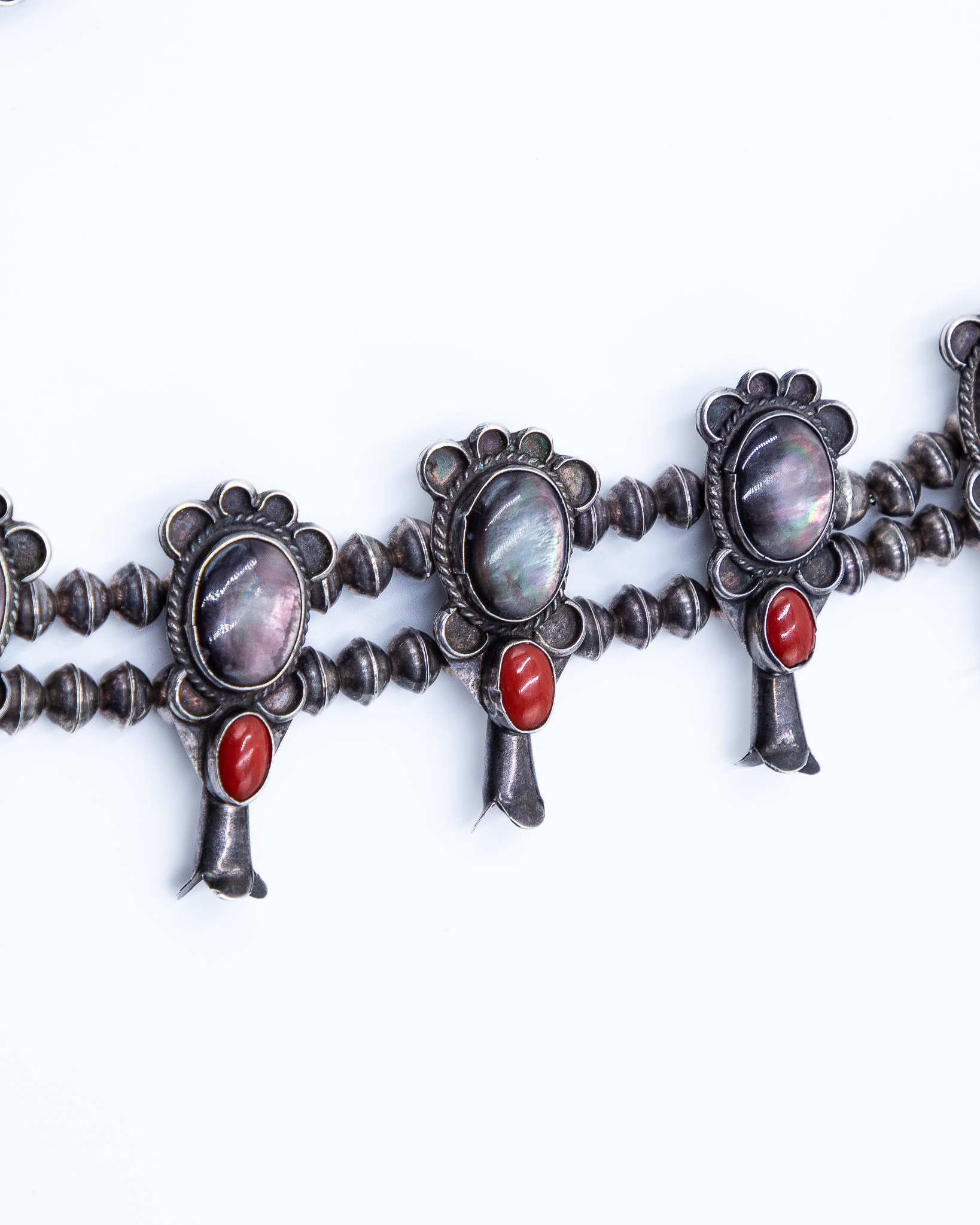 Vintage Moonstone Coral Squash Blossom Necklace 270g