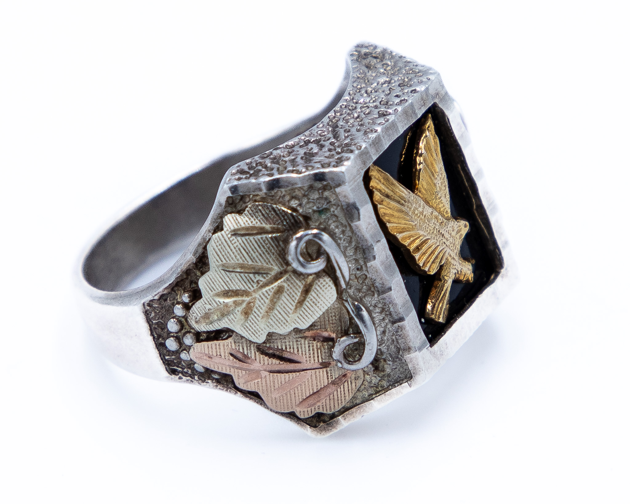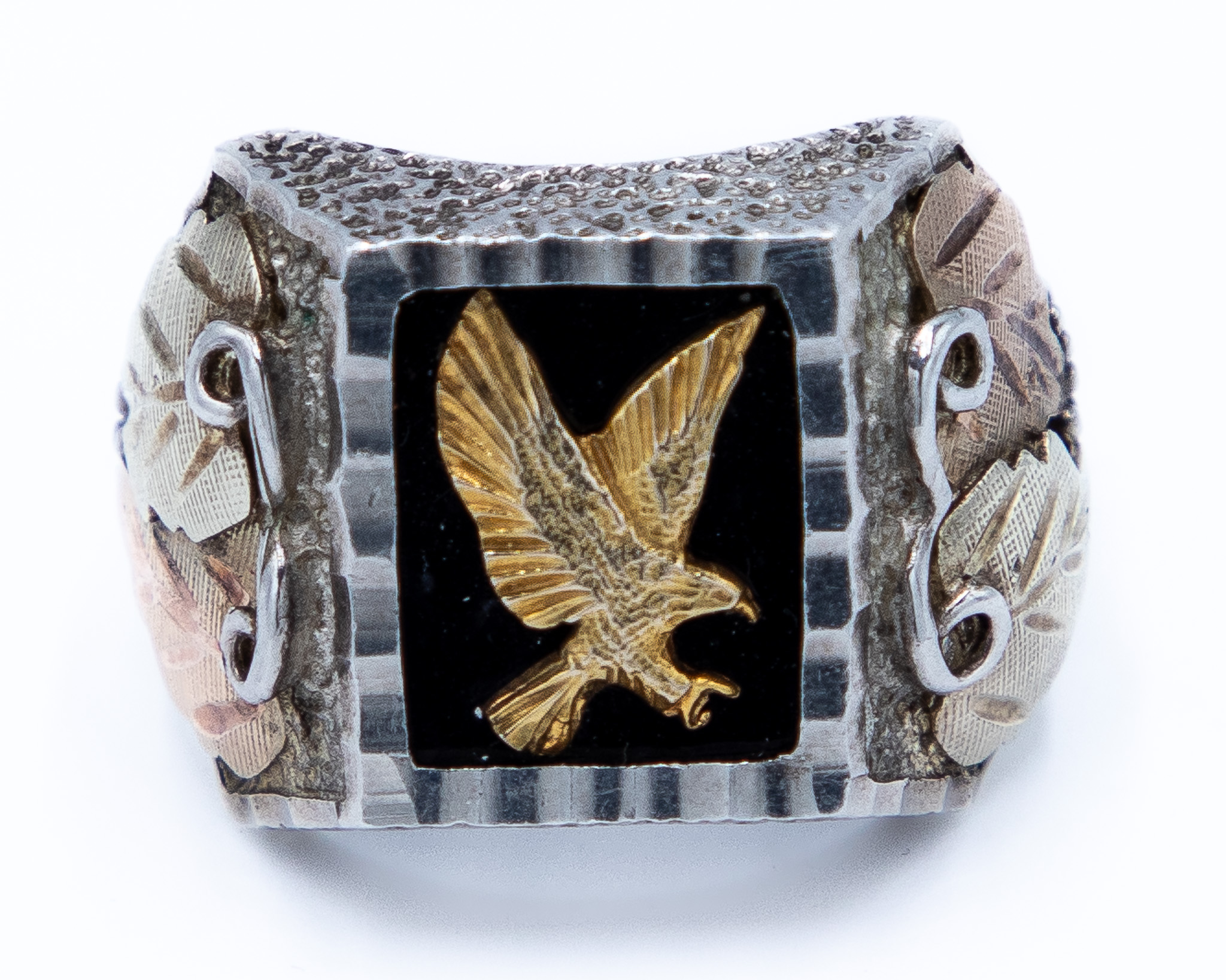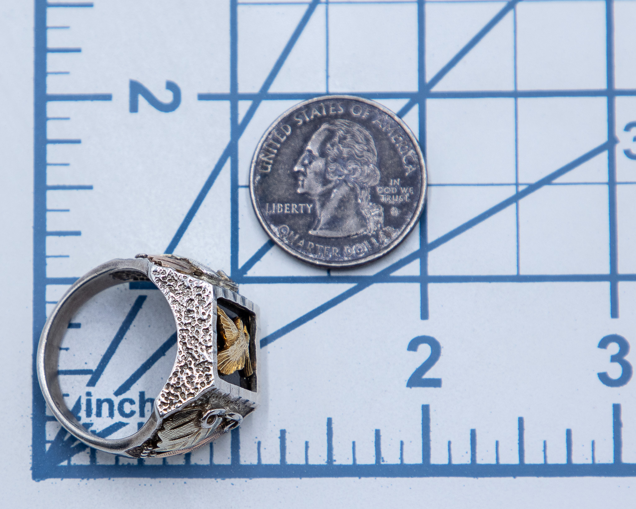 14K Gold Eagle Sterling Shadow Box Ring Signed OGC Sz. 13, 14g