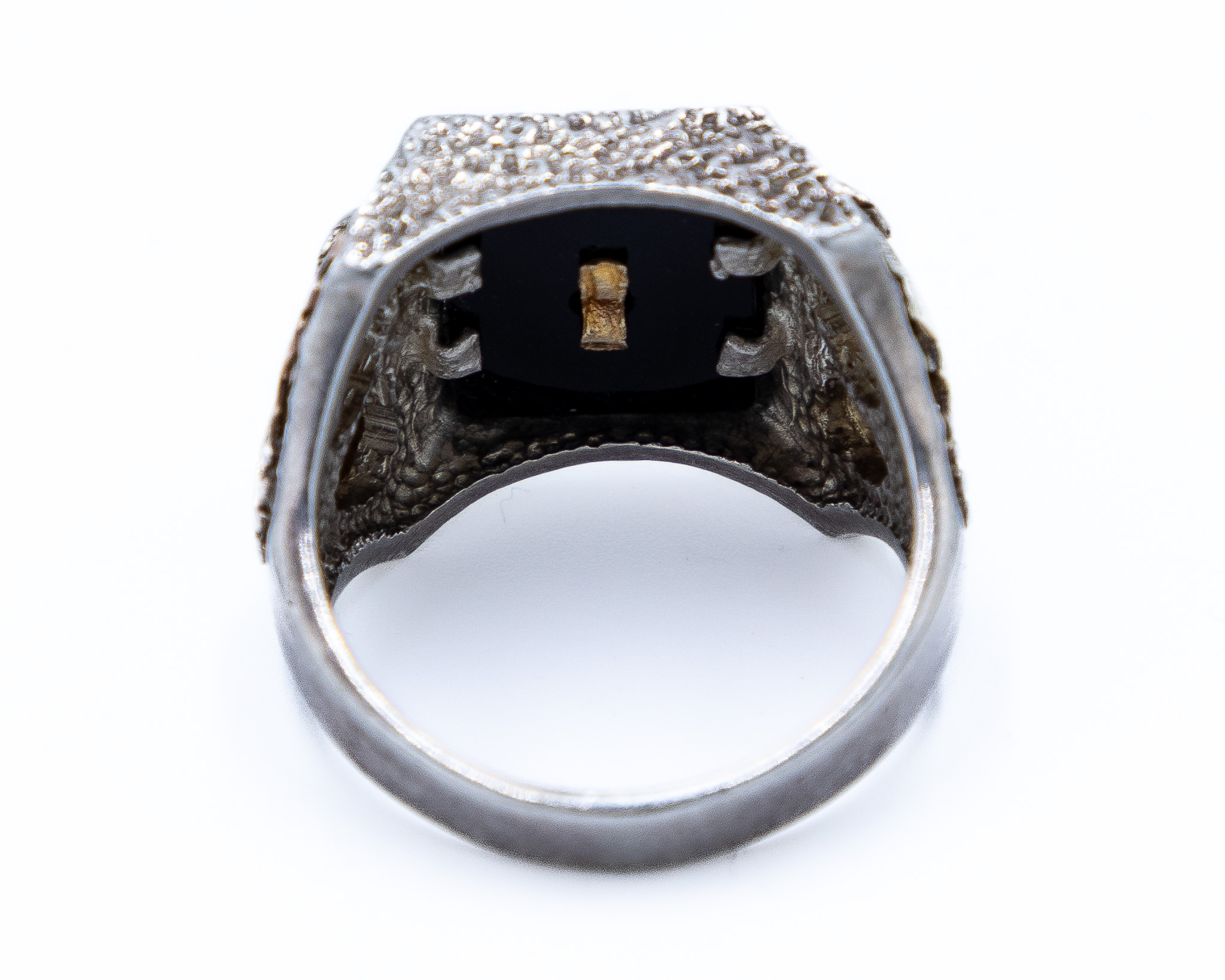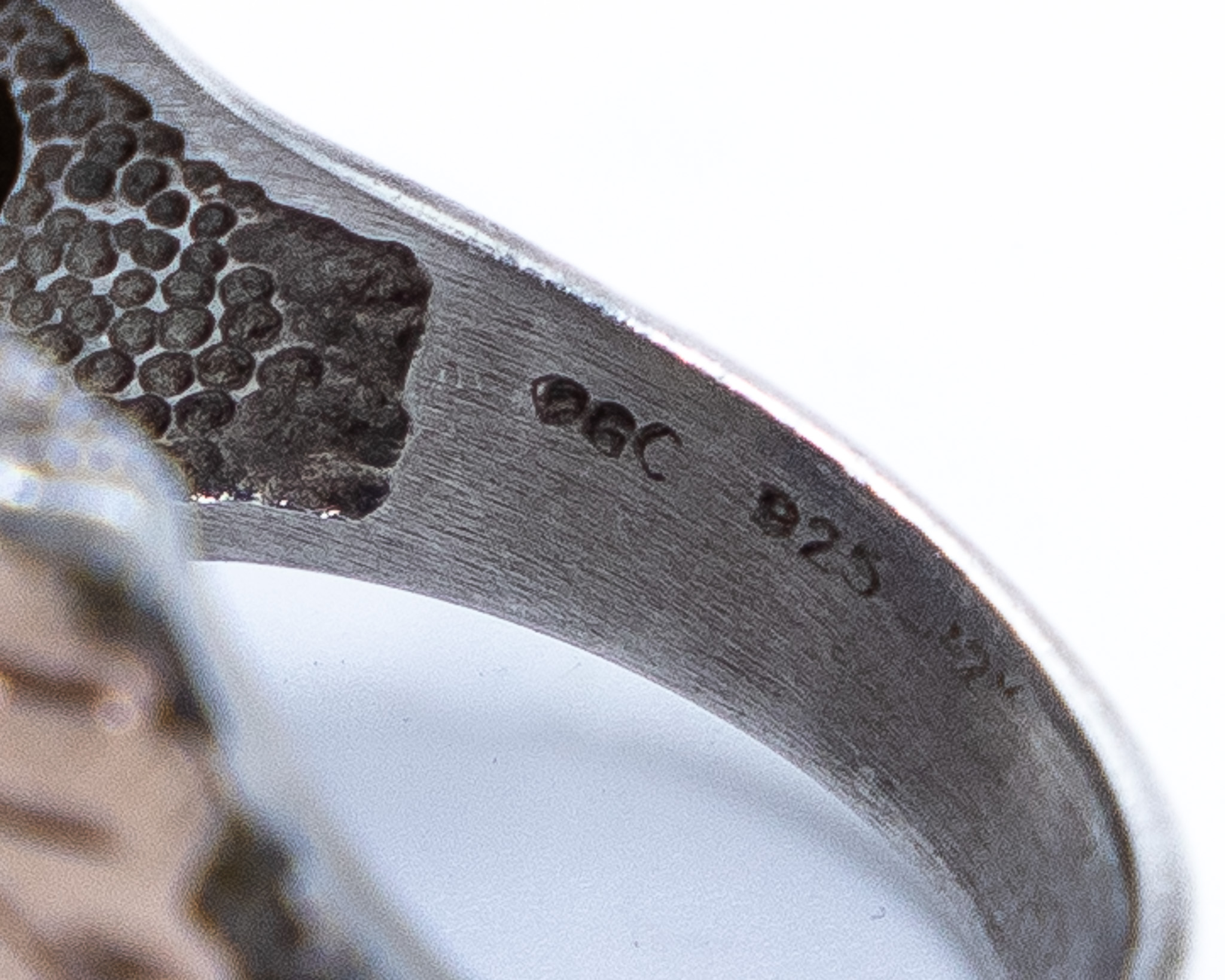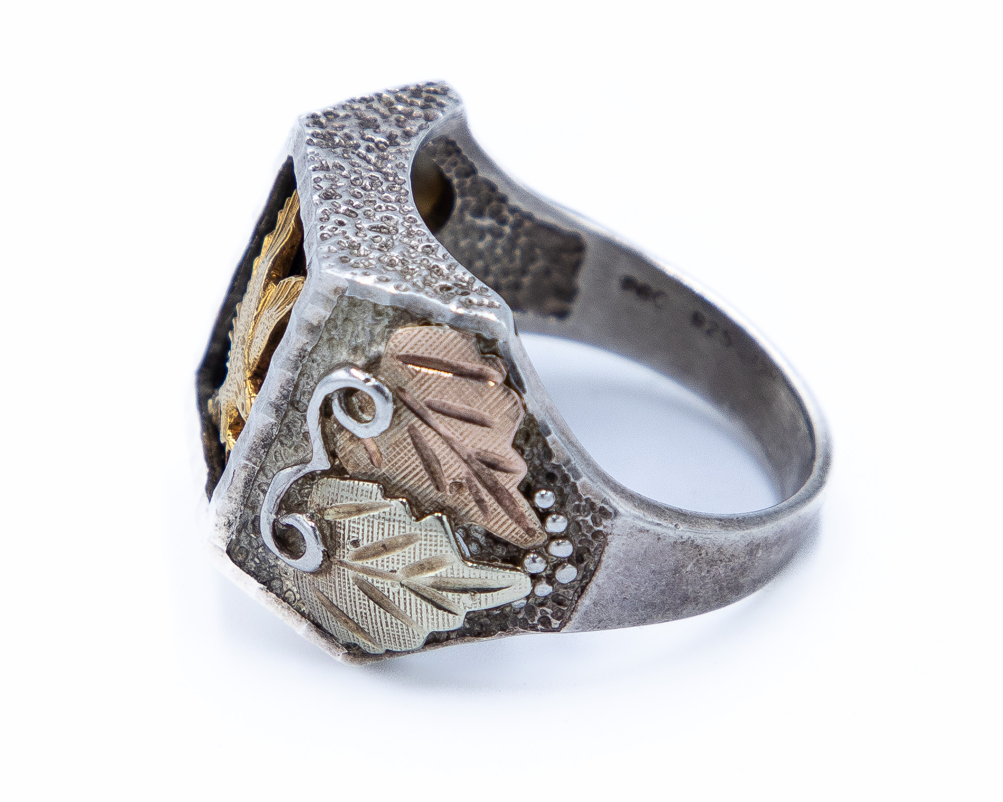 14K Gold Eagle Sterling Shadow Box Ring Signed OGC Sz. 13, 14g