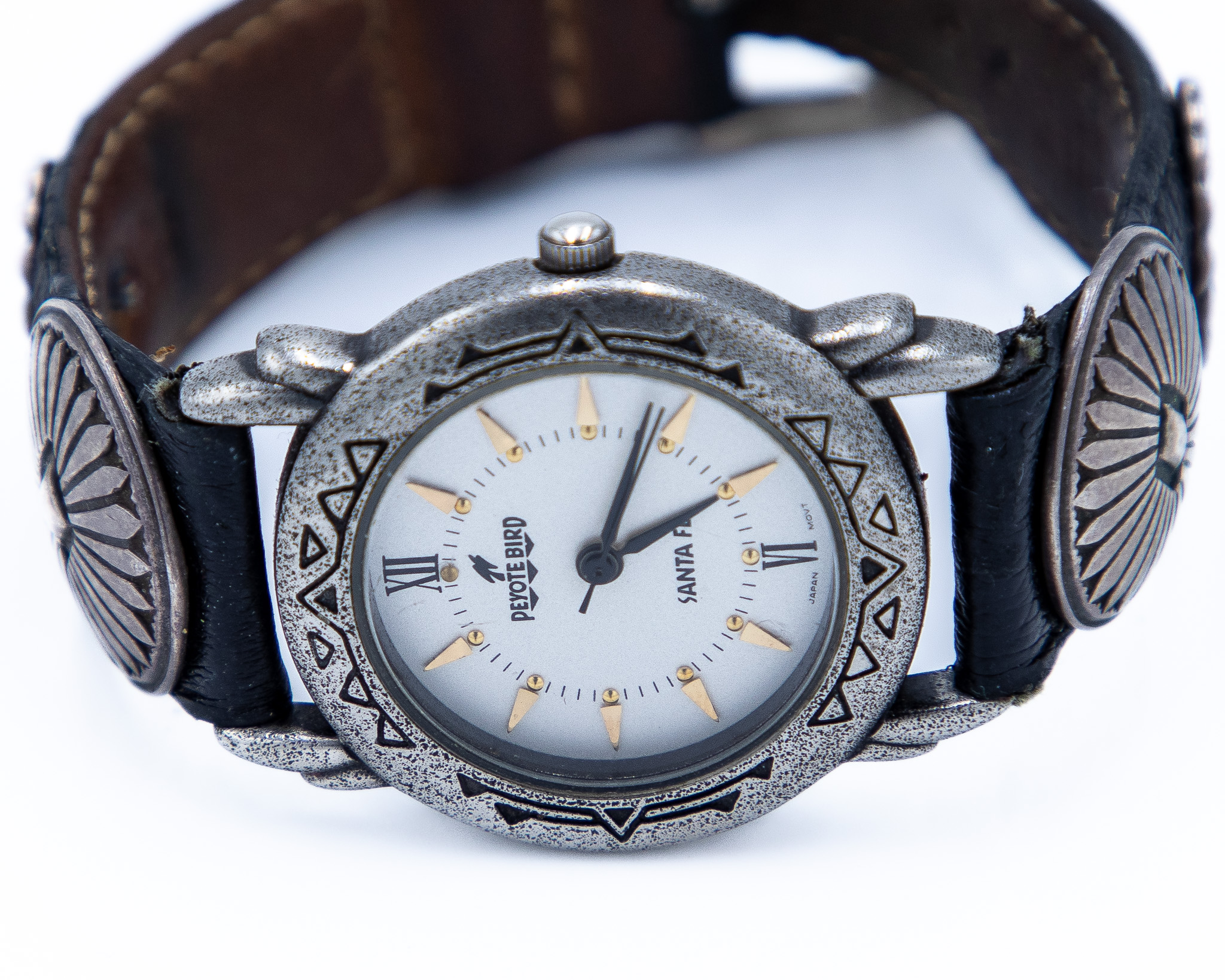 Vintage PEYOTE-BIRD designs Santa Fe Sterling Steel Watch 38.5g