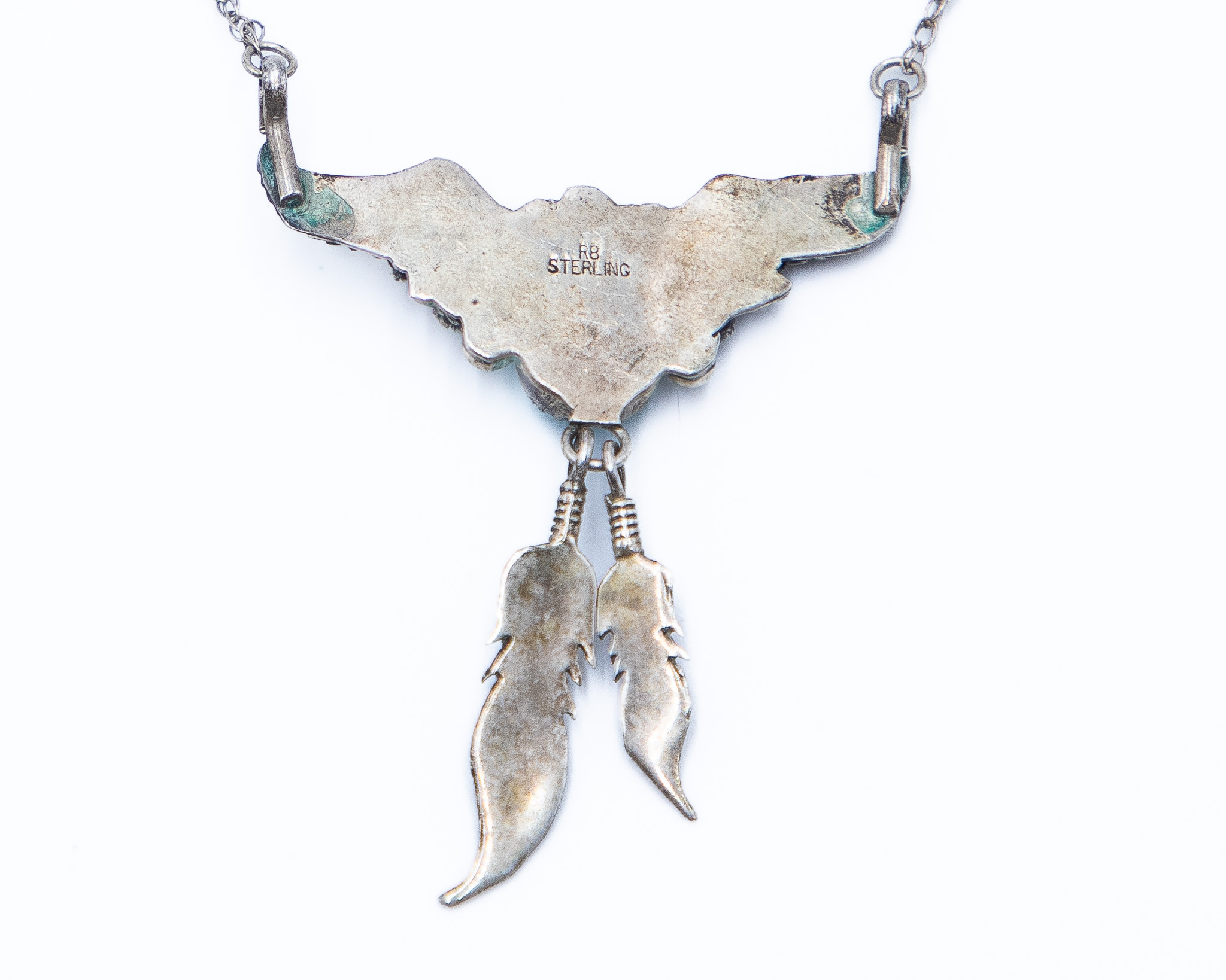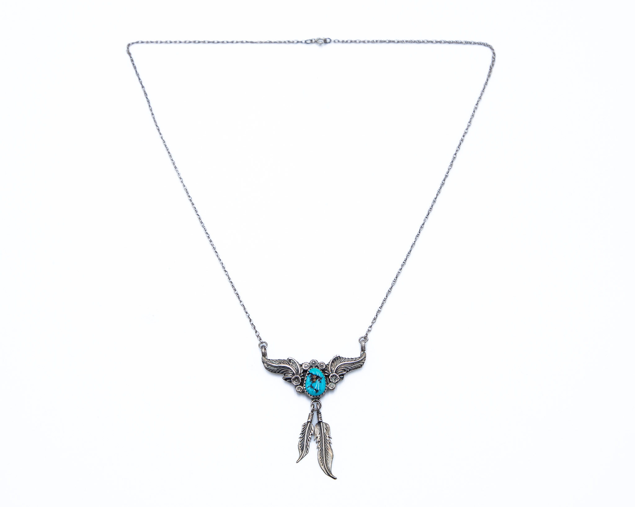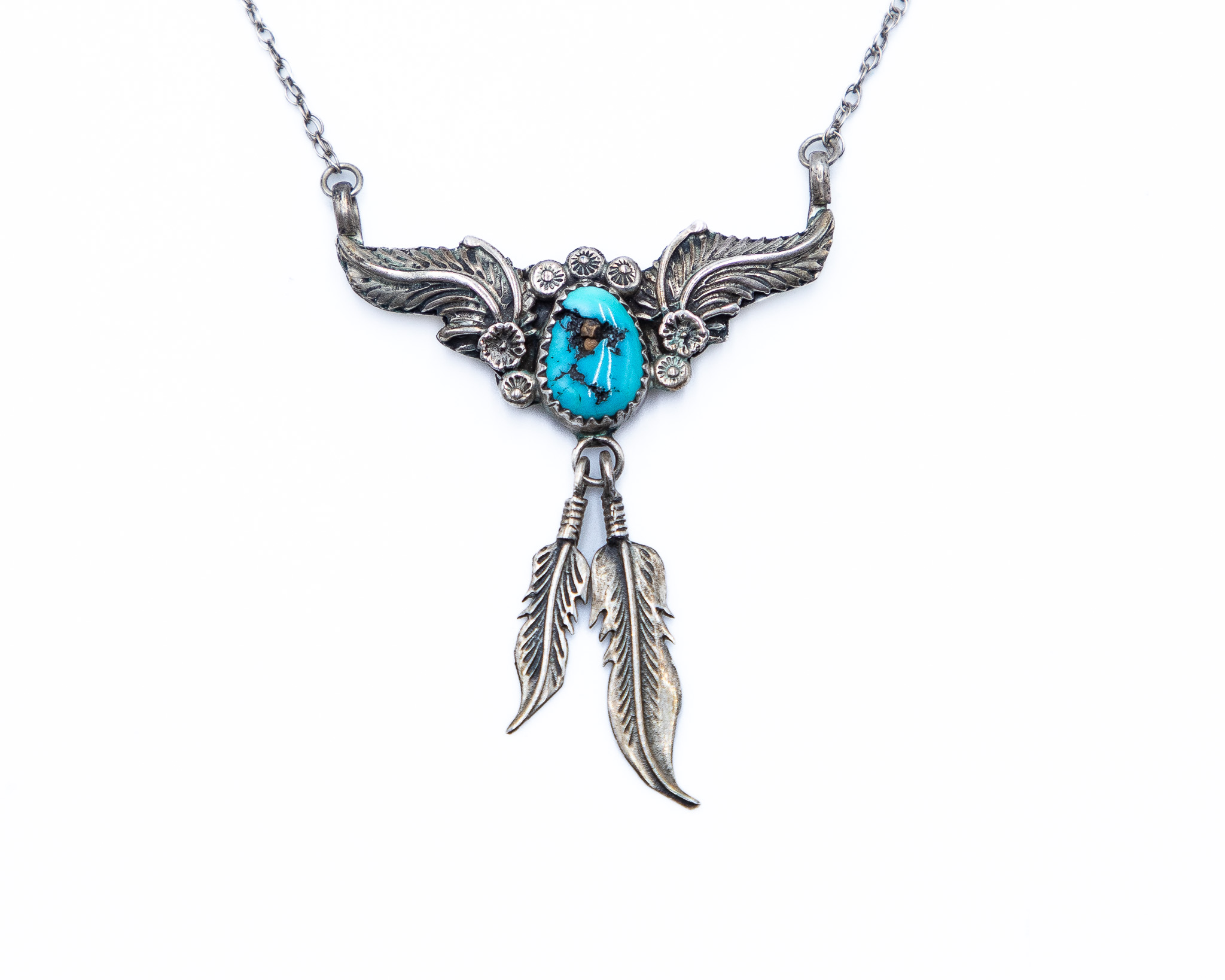 Richard Begay Navajo Sterling Turquoise Feather Blossom Necklace 8.5g