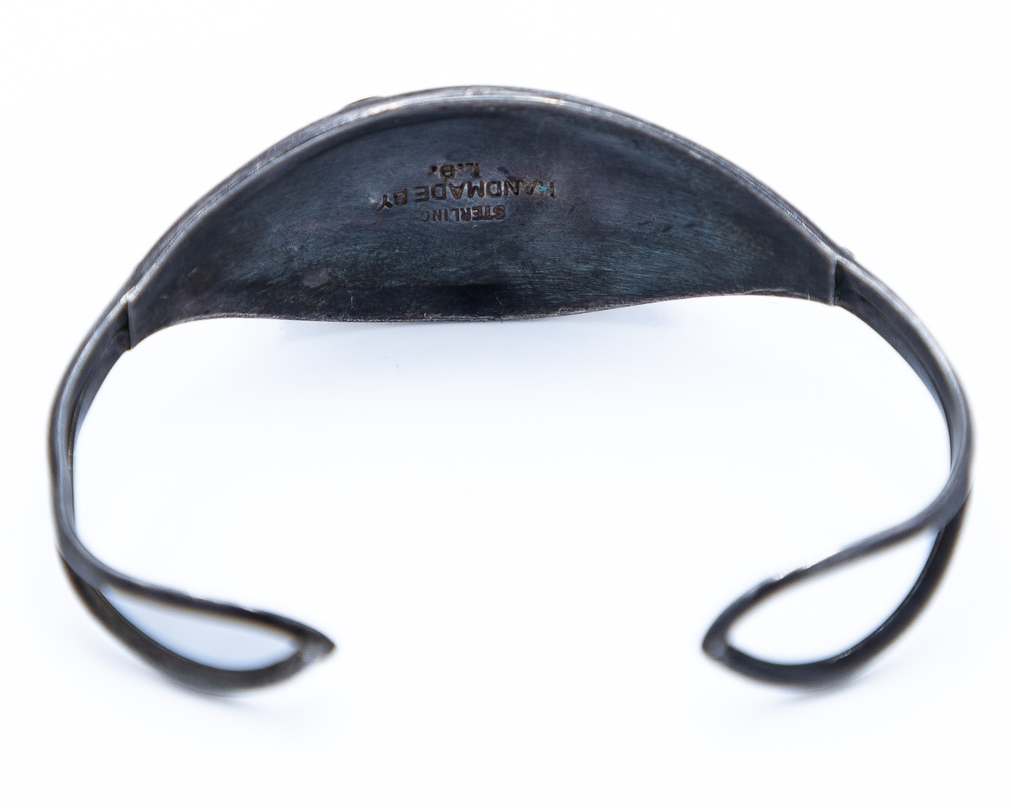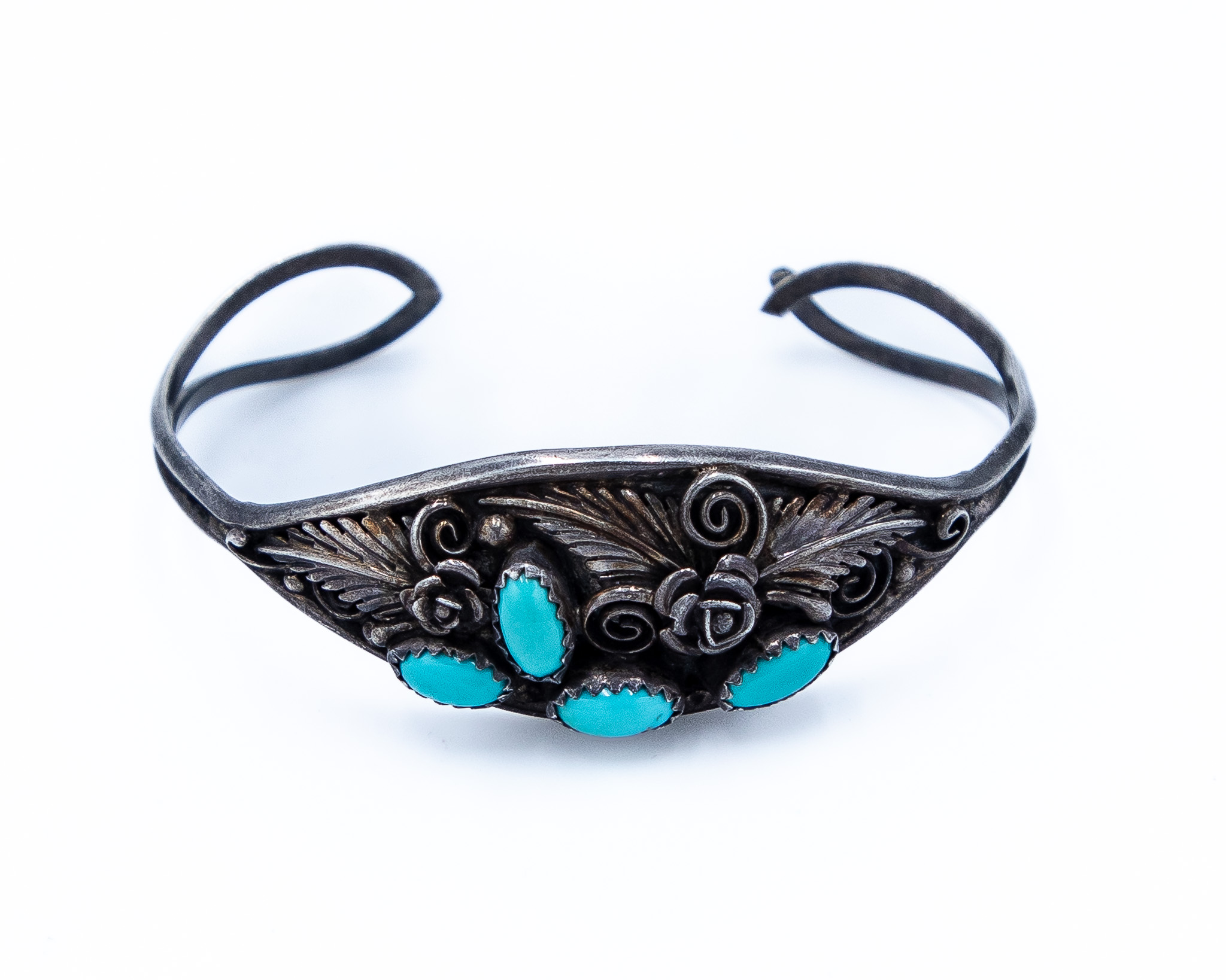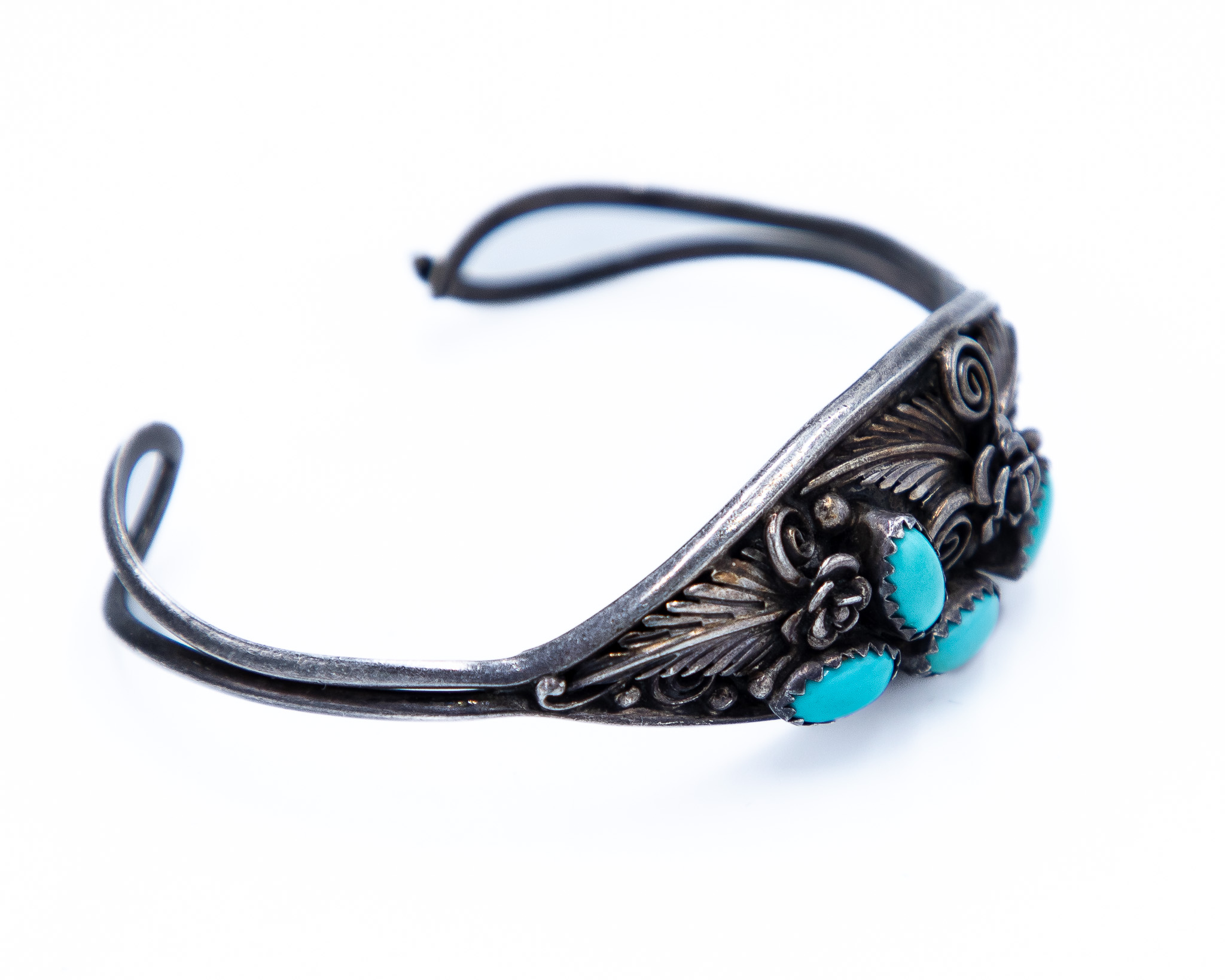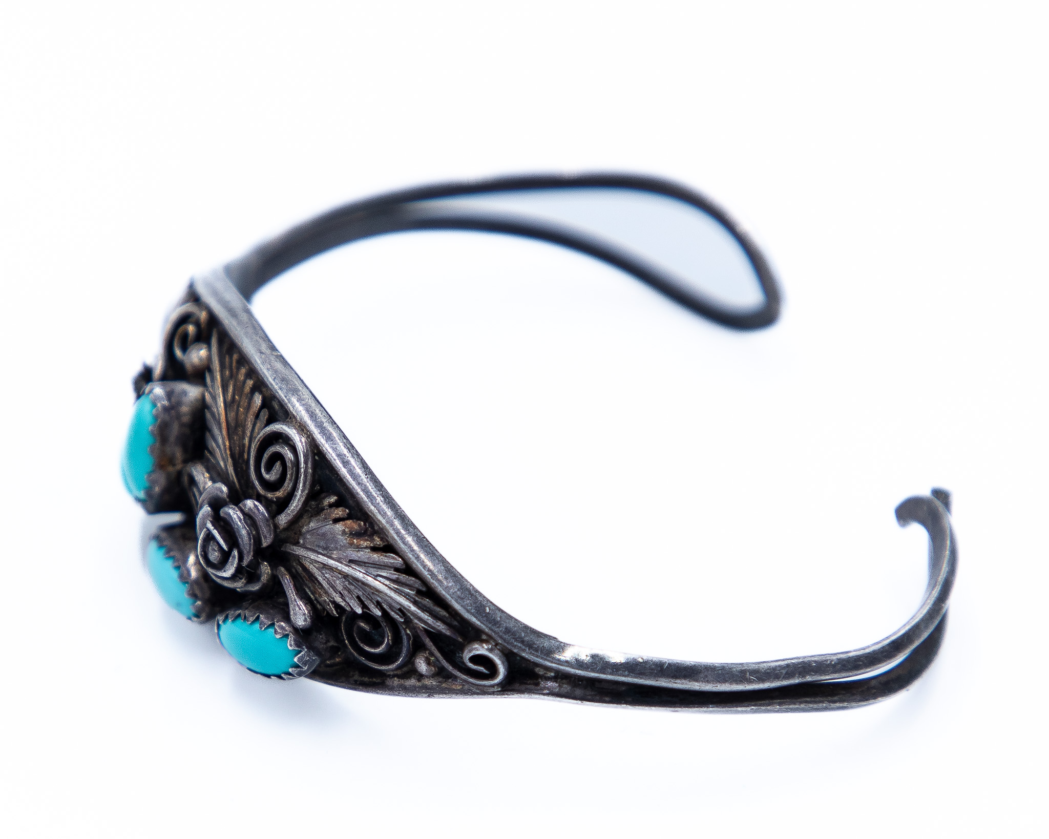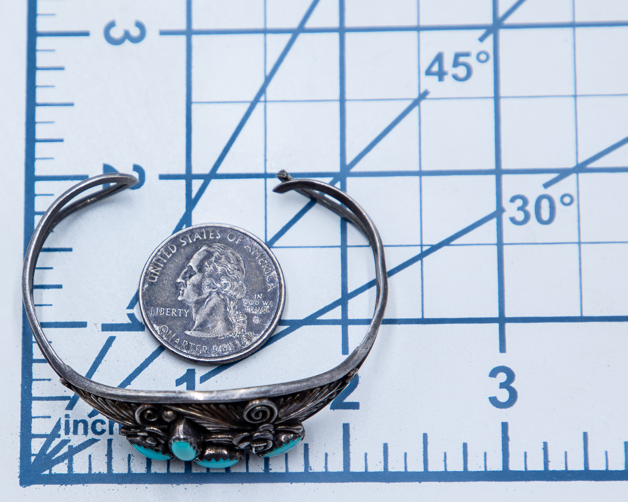 Signed Handmade By LB Navajo Sterling Turquoise Blossom Cuff Bracelet 14g-Broken metal shown in photo