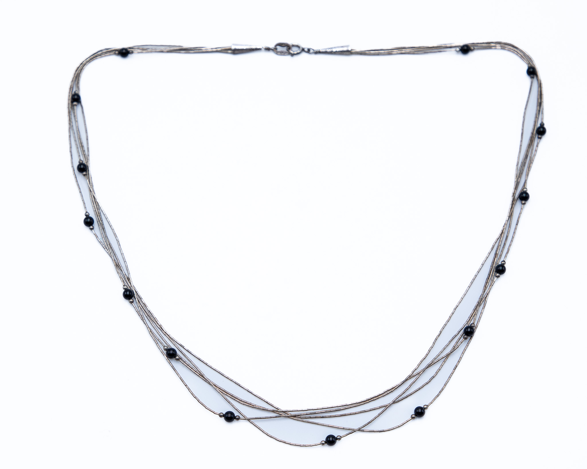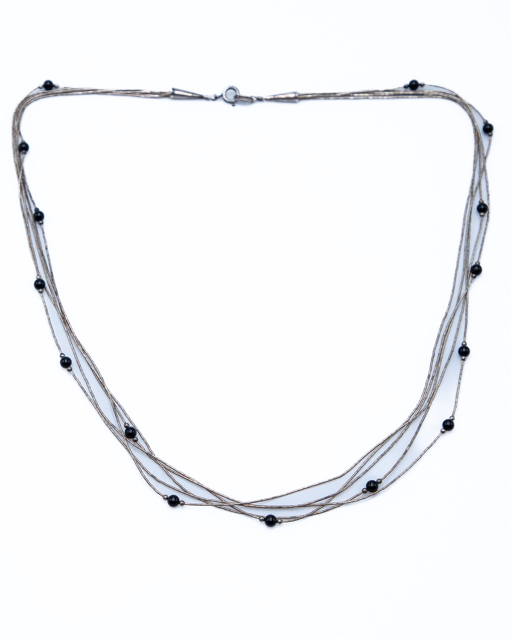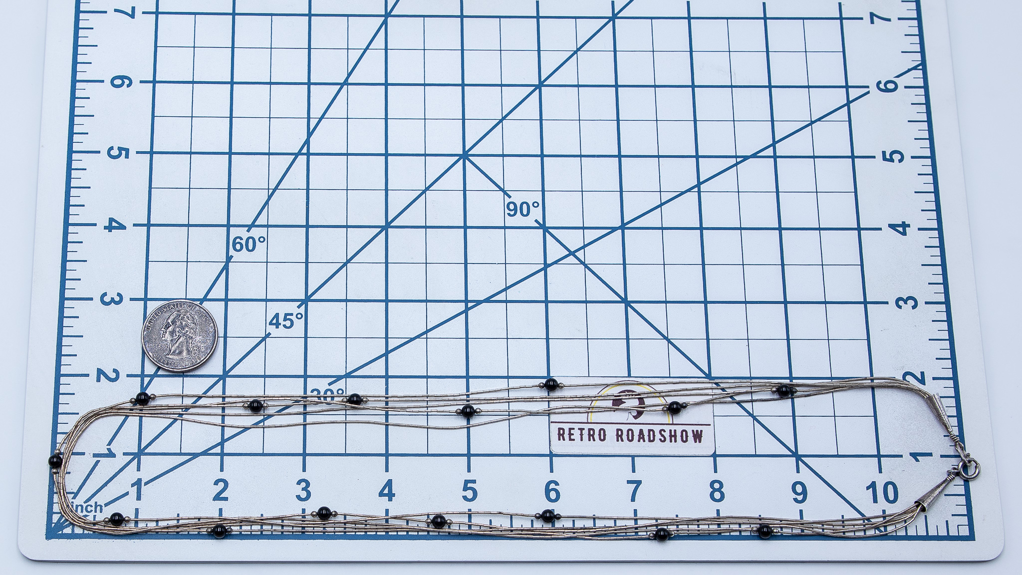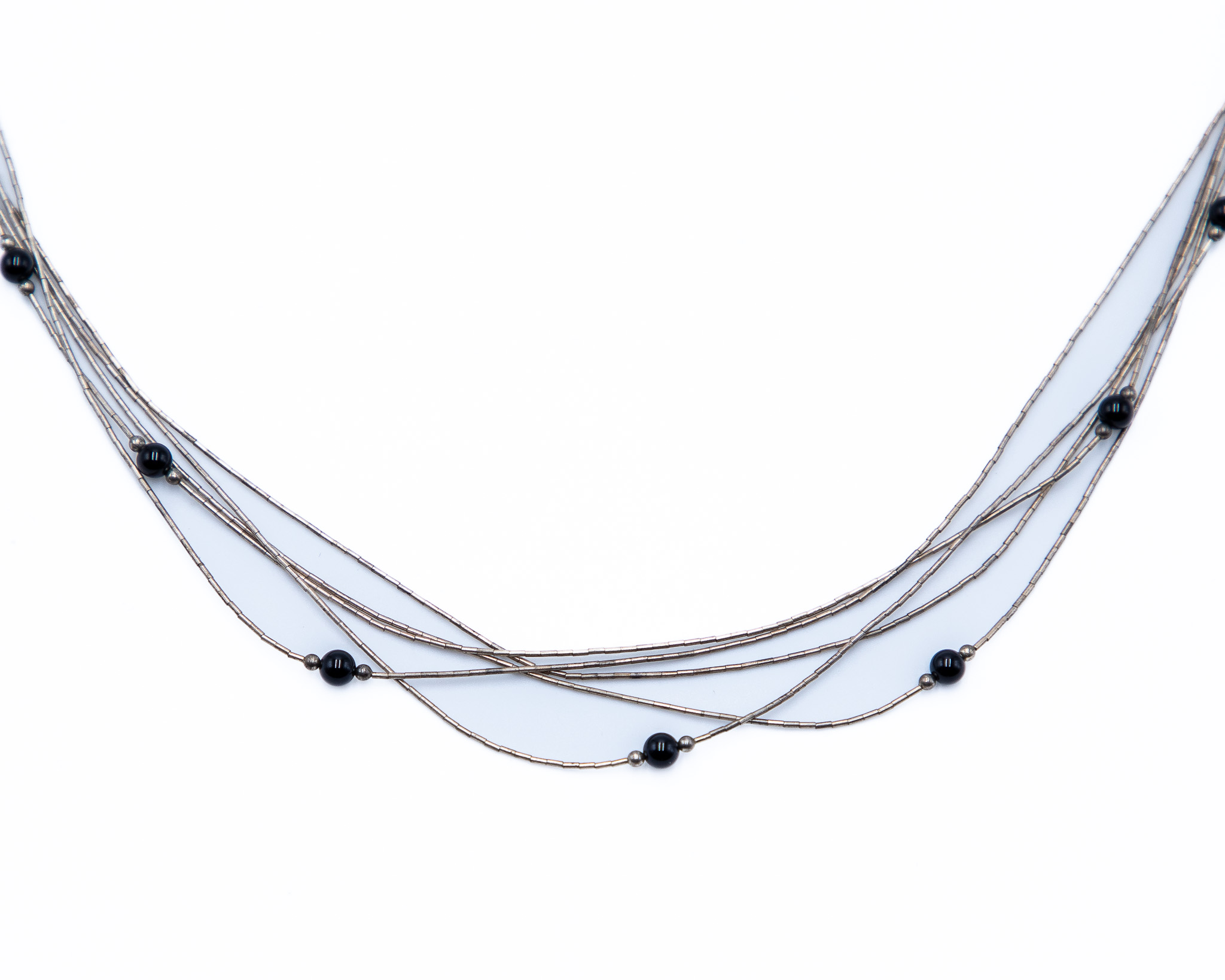 Signed Native American Liquid Sterling Silver Onyx Multi Strand Necklace 9.5g