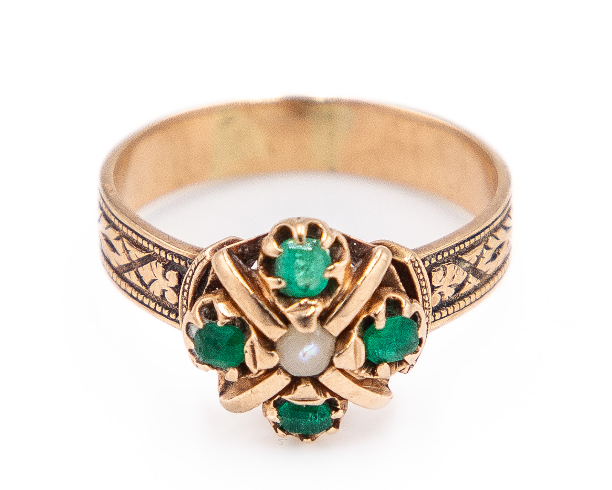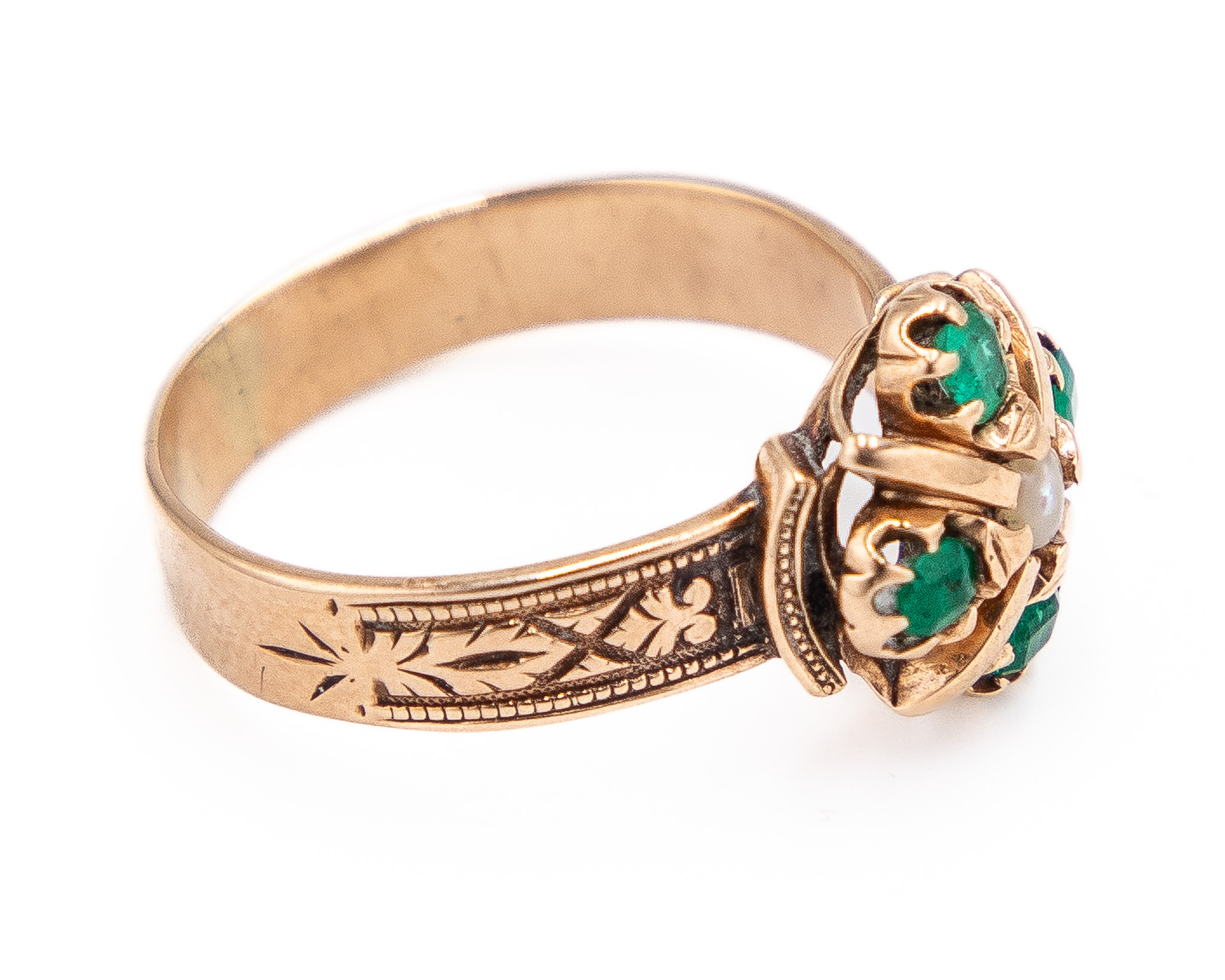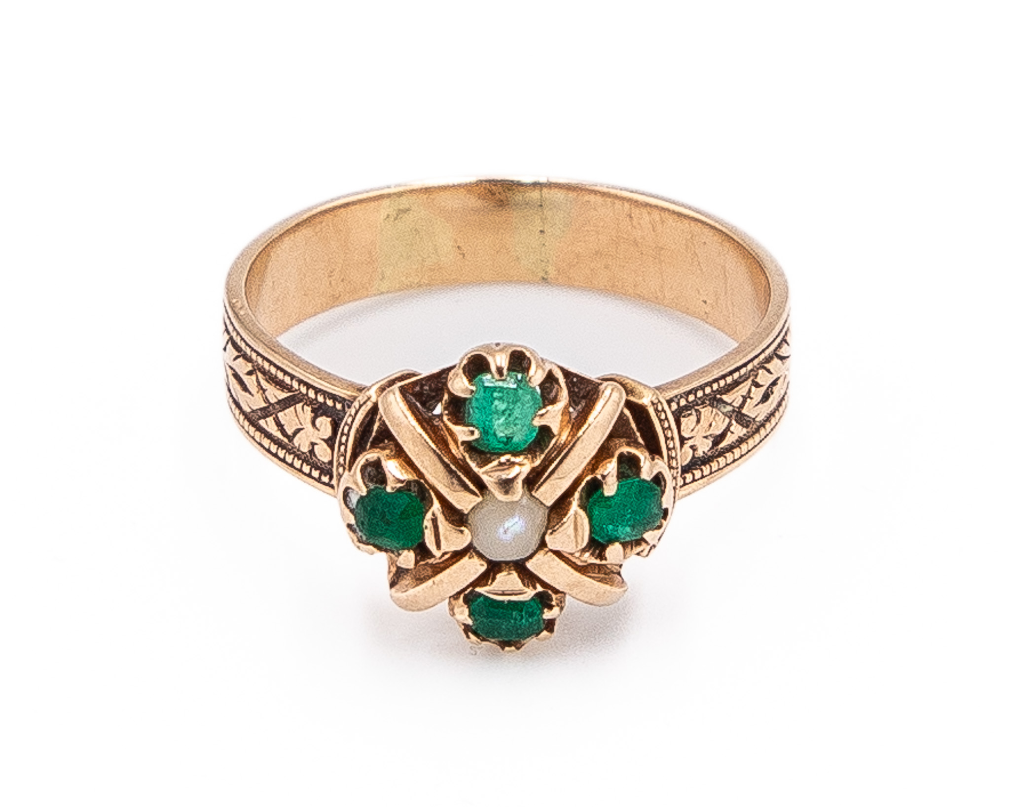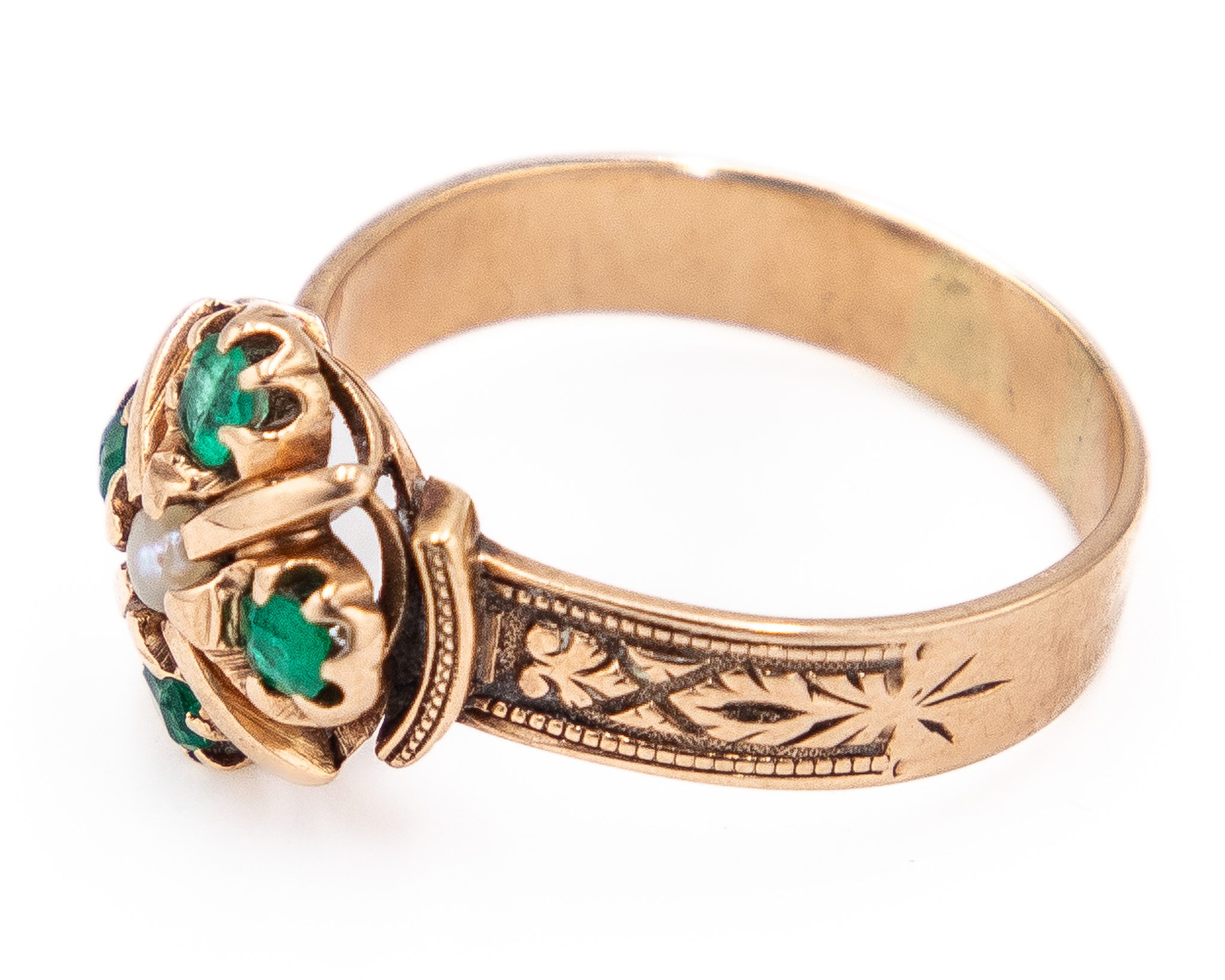 Emerald Pearl 14K Gold Cocktail Ring Sz. 7.75, 4.5g-approx. 0.40TCW emerald