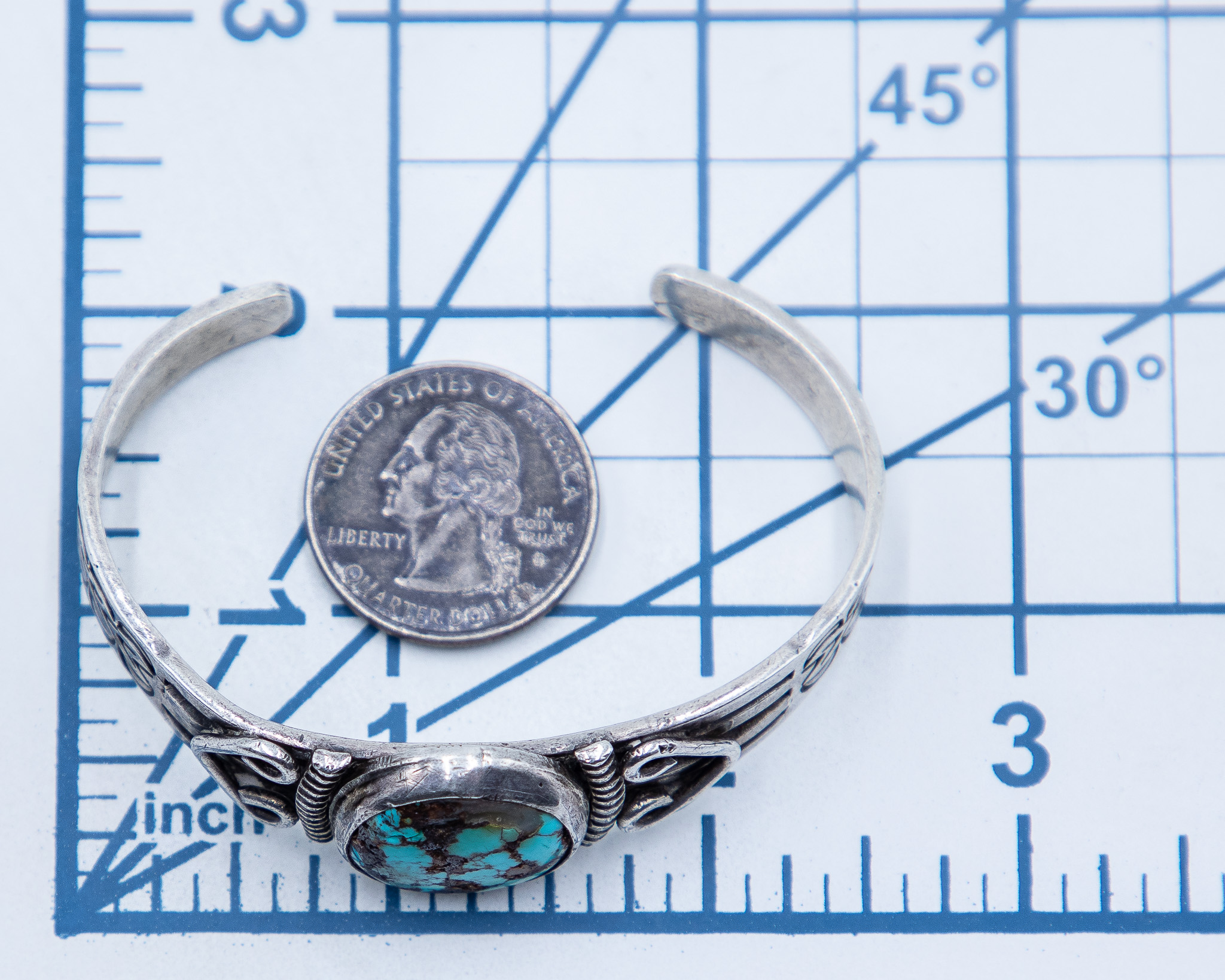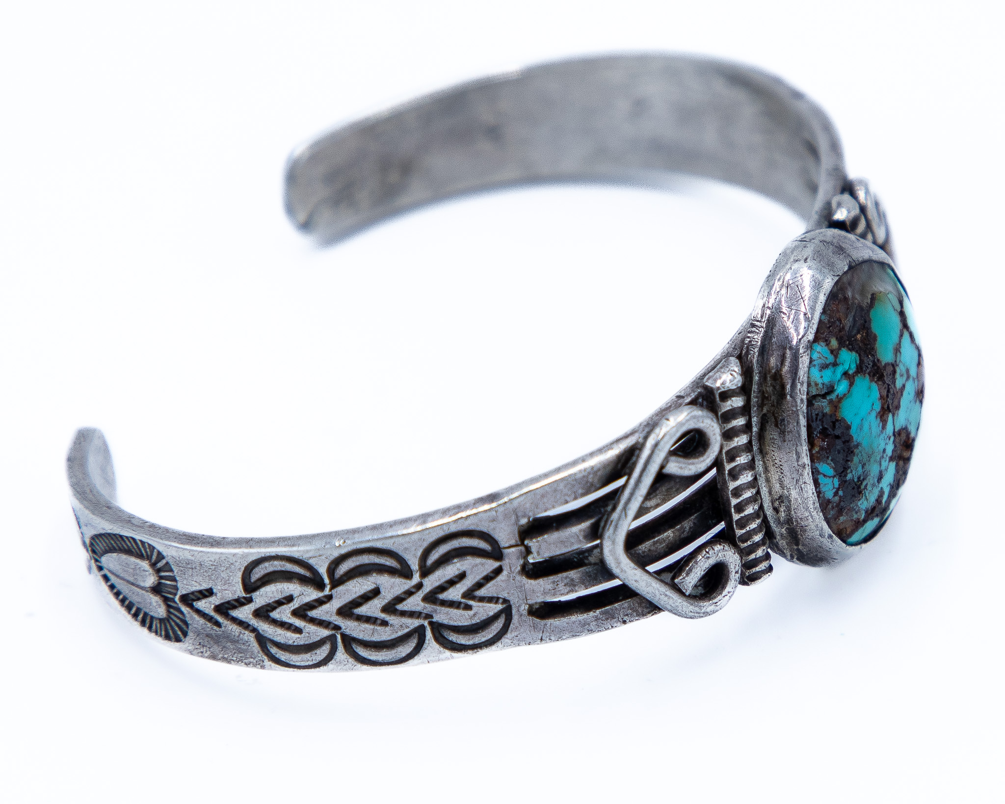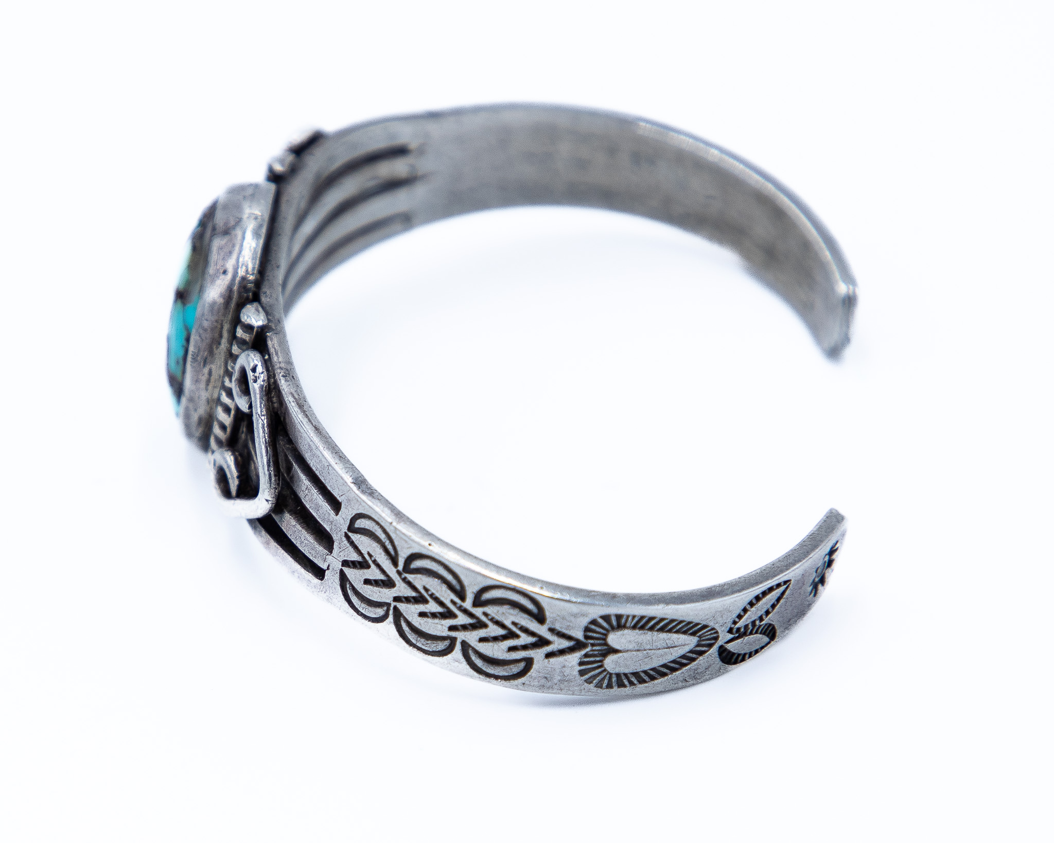 Fred Harvey Era Turquoise Sterling Cuff Bracelet 33g-Horizontal crack in stone- Maybe Morenci