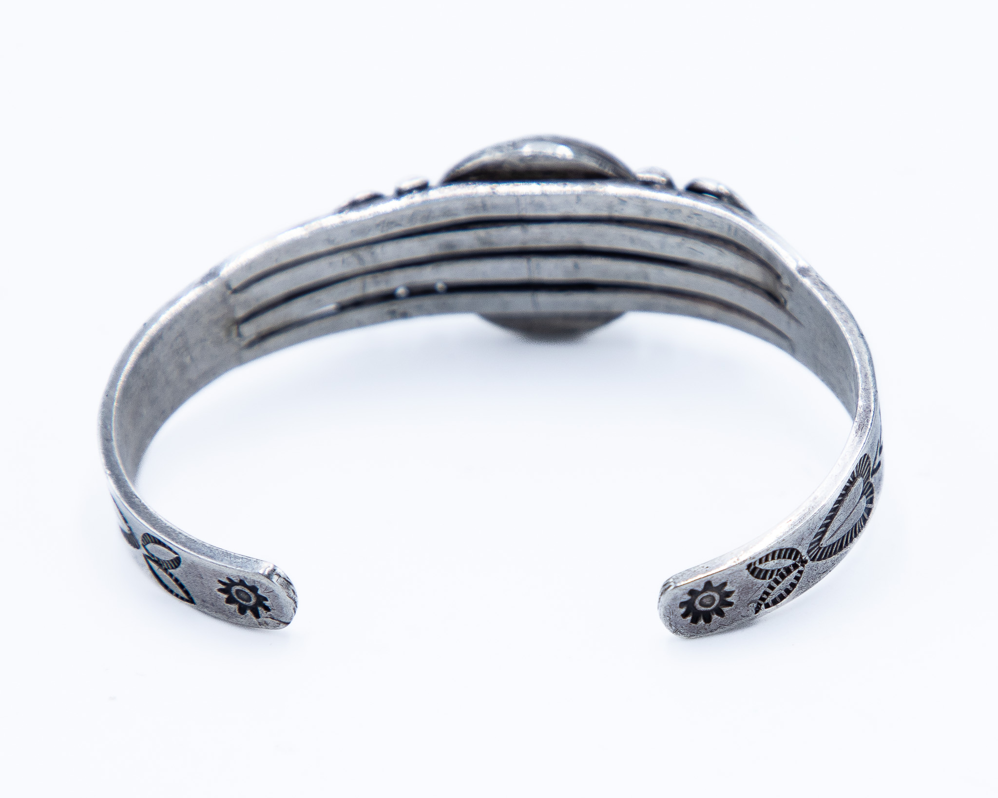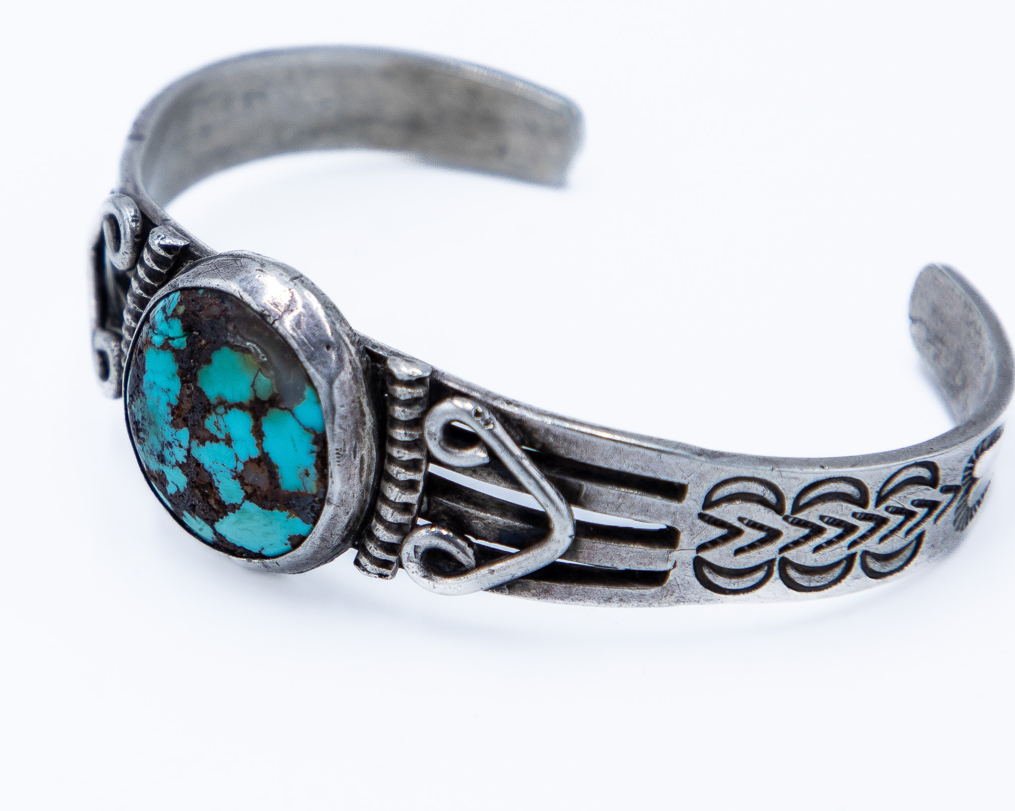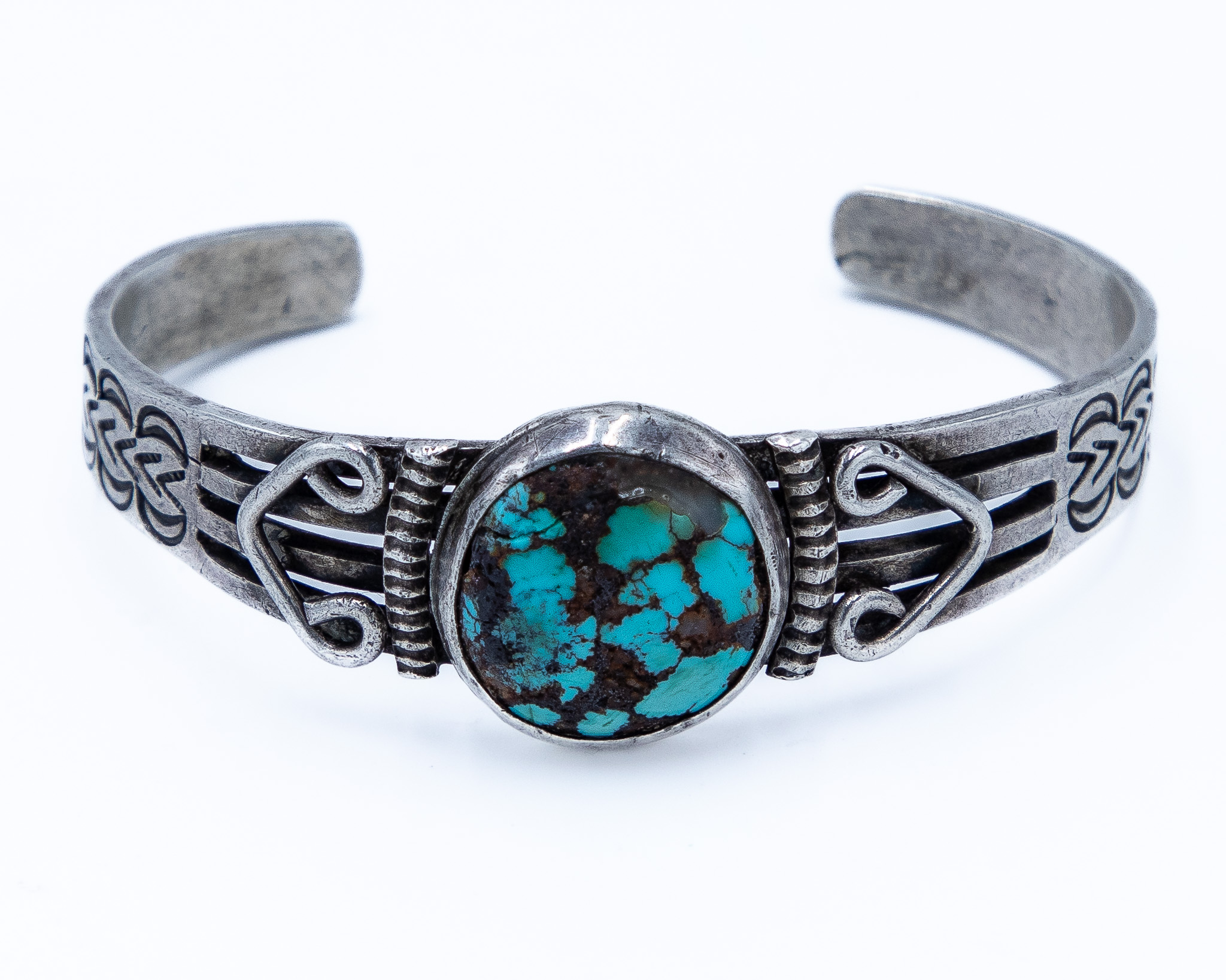 Fred Harvey Era Turquoise Sterling Cuff Bracelet 33g-Horizontal crack in stone- Maybe Morenci