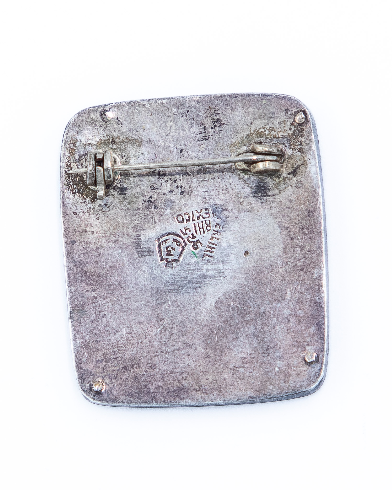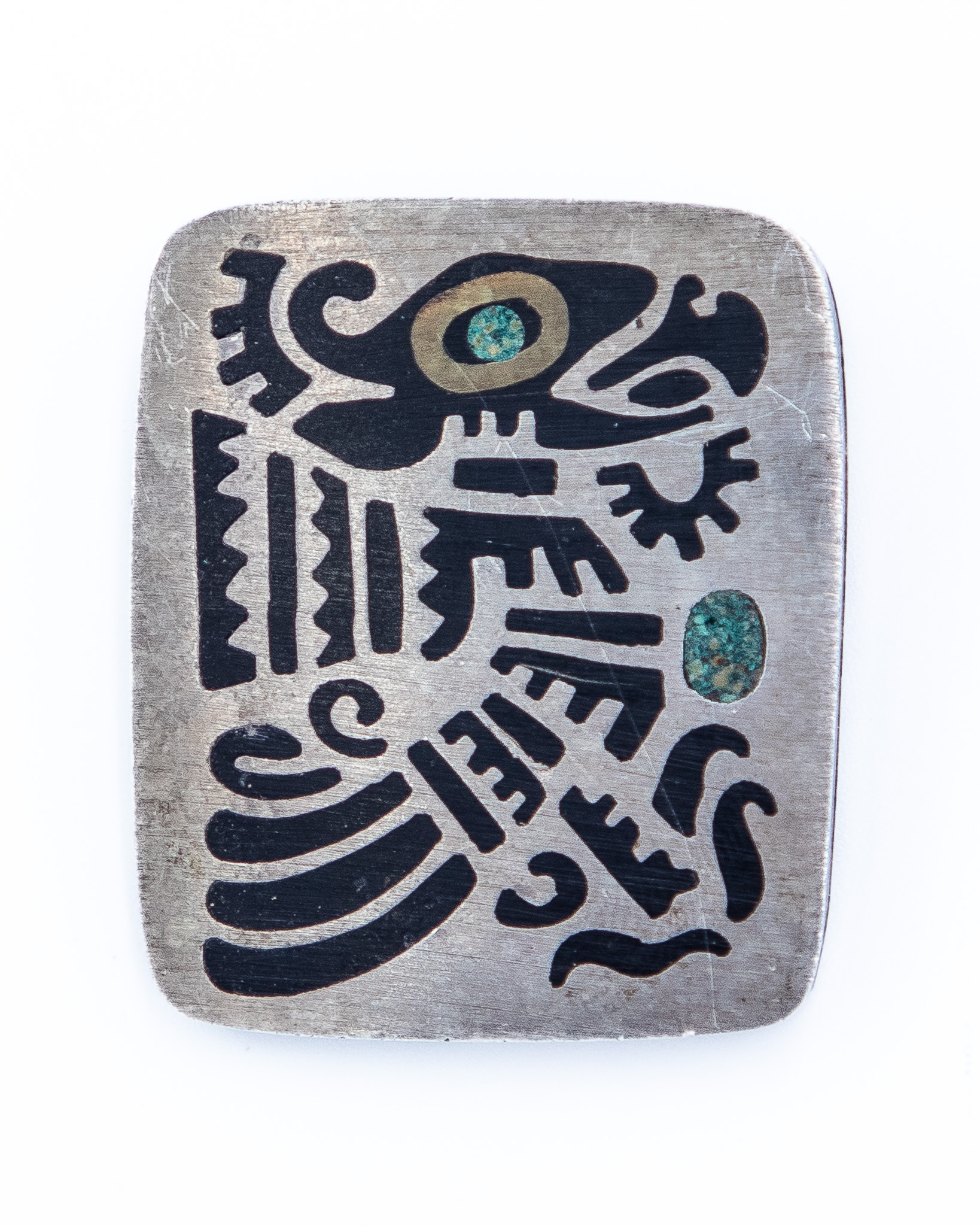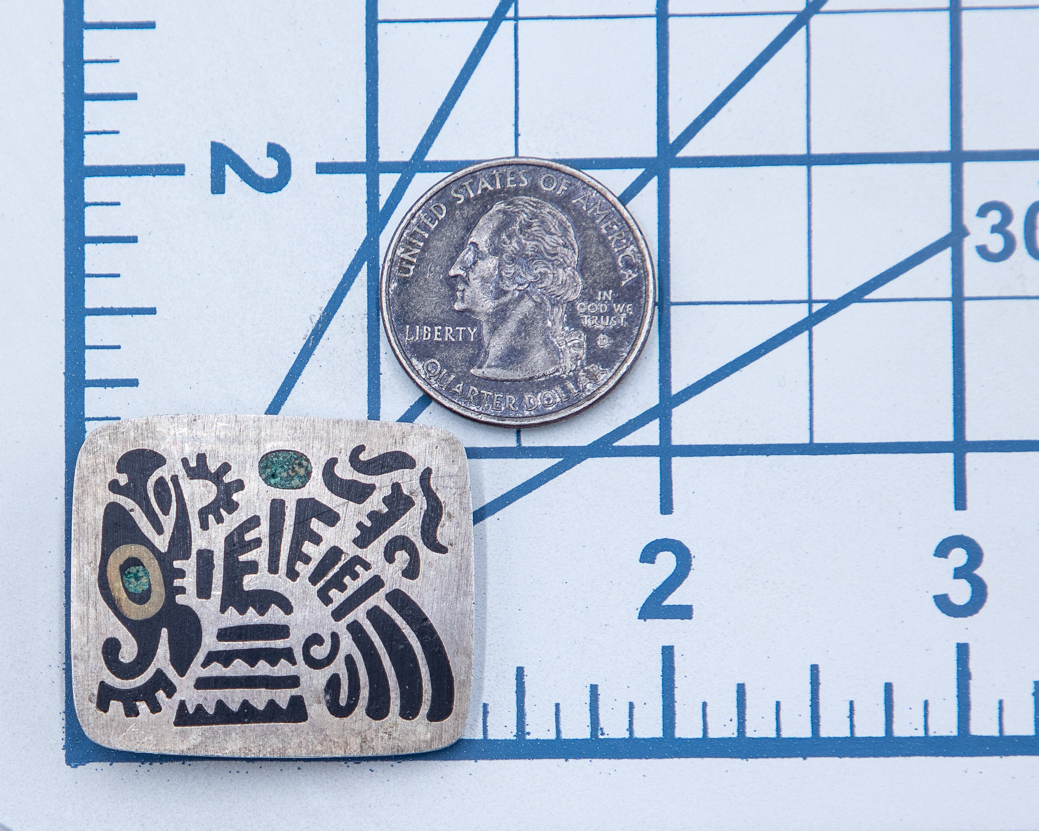 Signed RHI Vintage Mexico Eagle #3 Sterling Crushed Turquoise Jet Inlay Brooch Pin 9g
