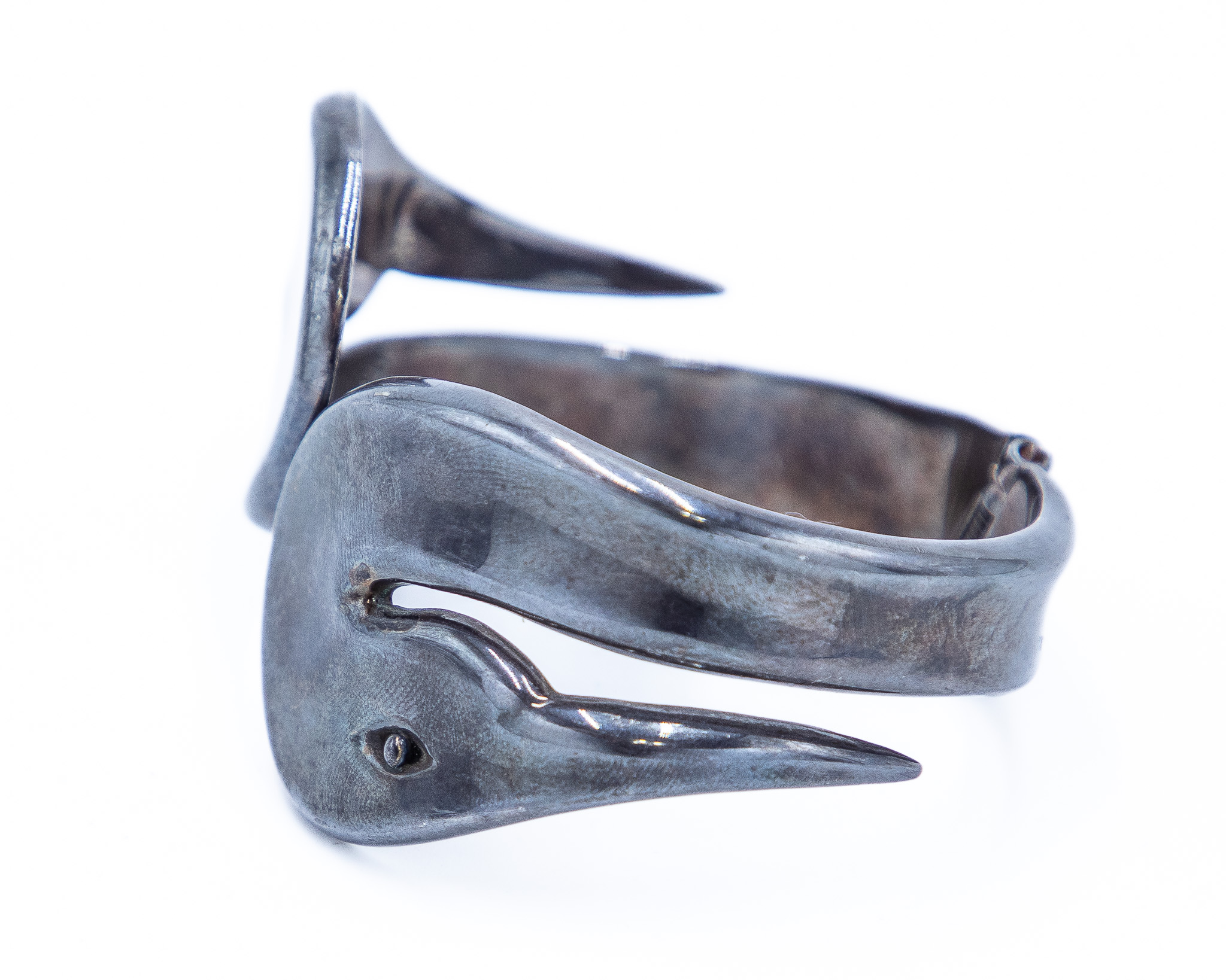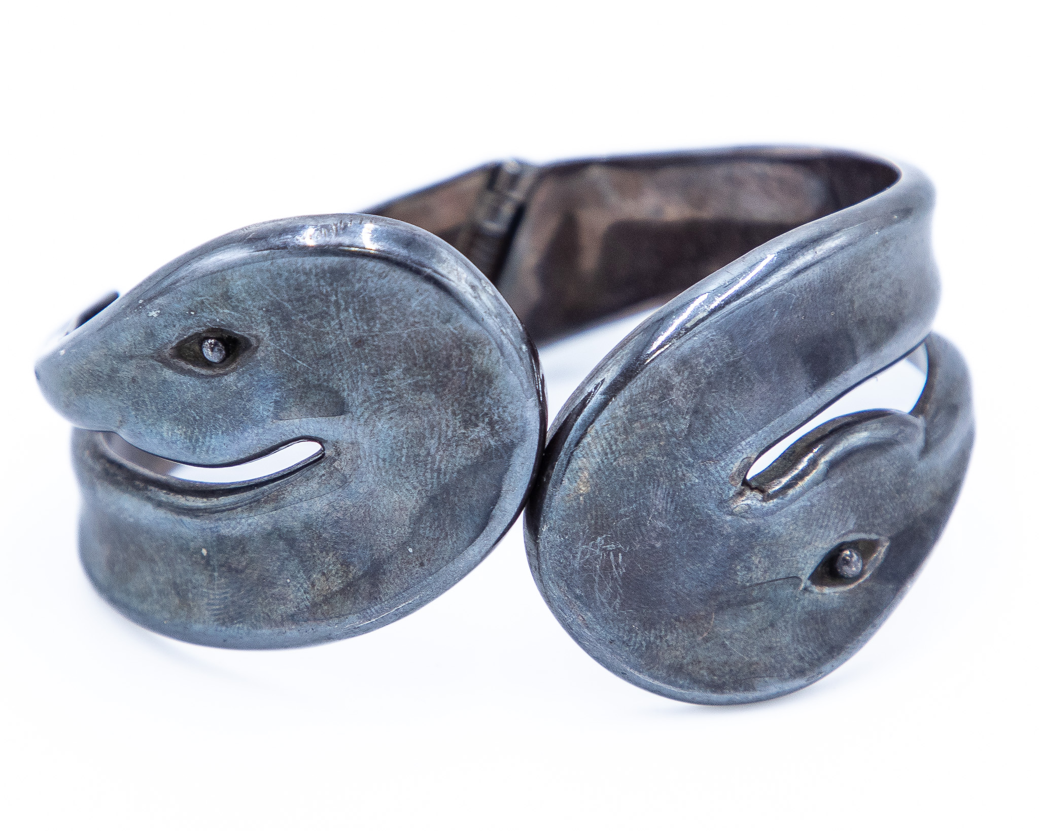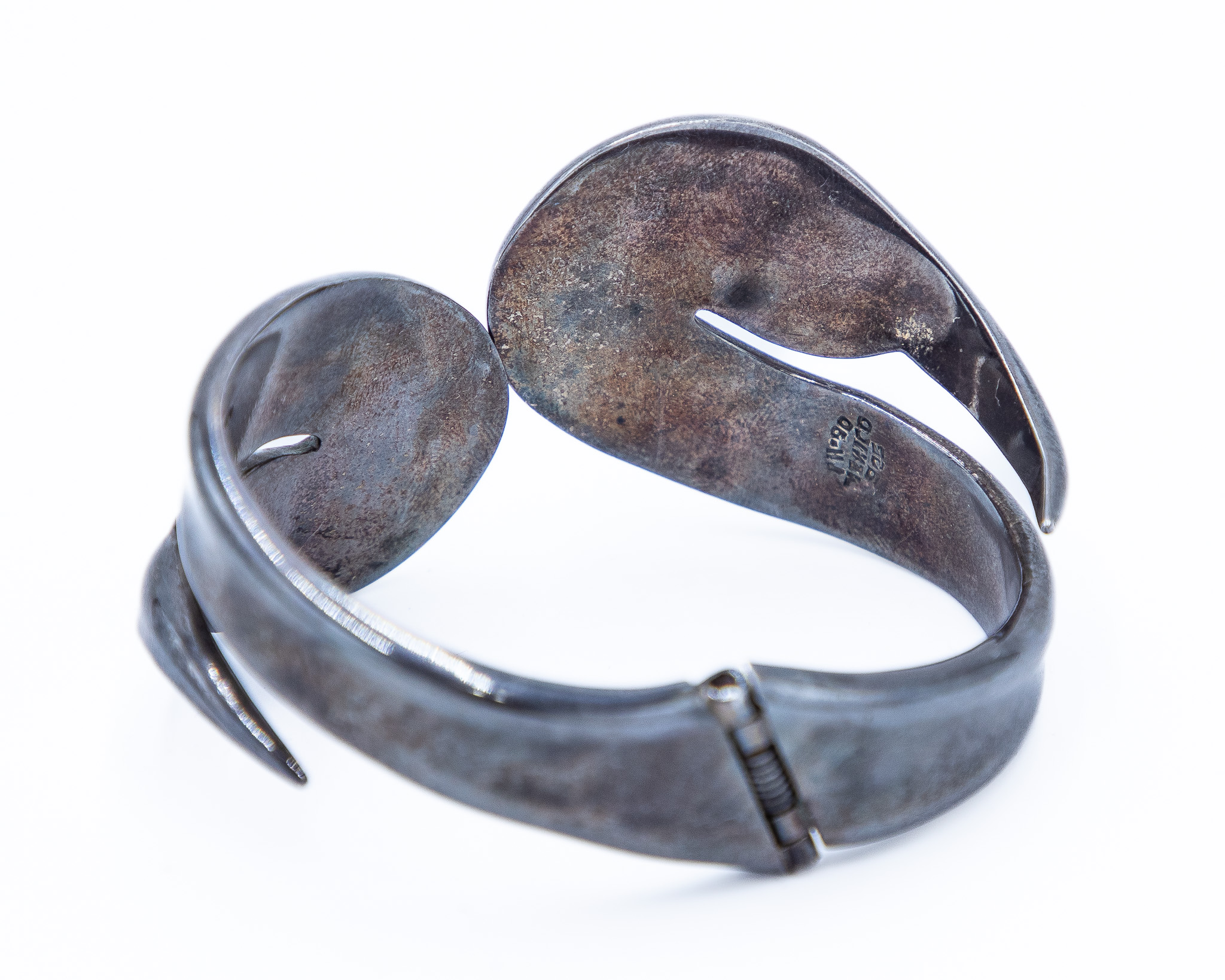 Signed TH-90 Taxco Mexico Sterling Duck Hinge Bracelet 62g