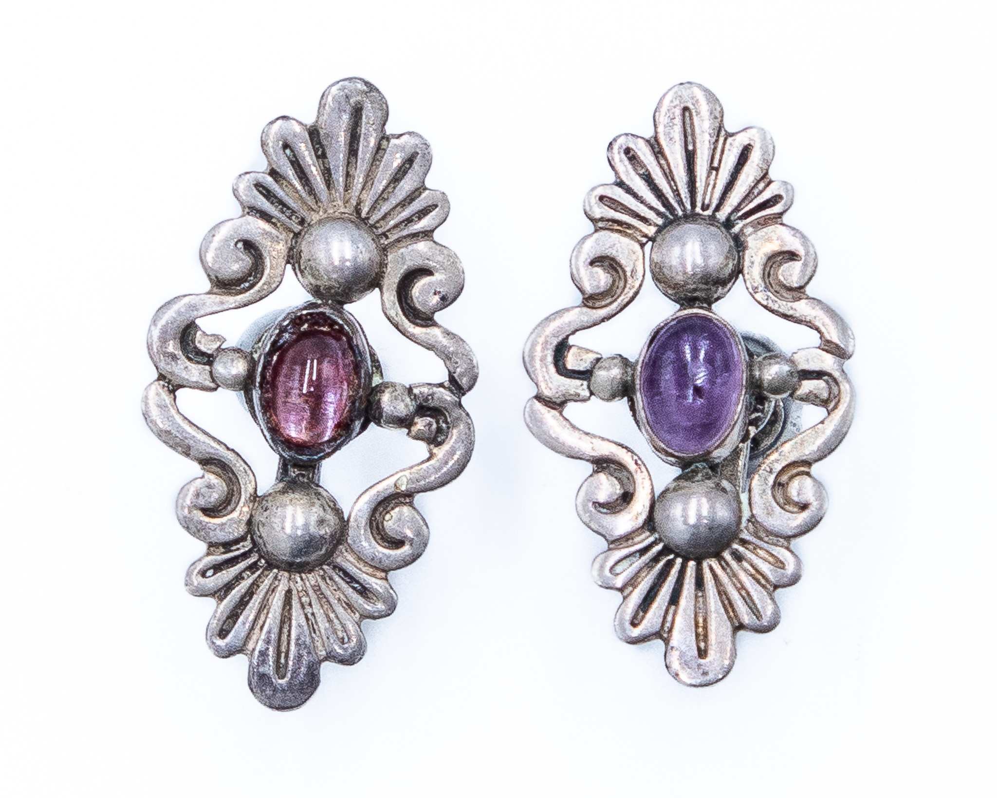 Vintage Mexican Sterling Amethyst Screw Back Earrings 6.5g
