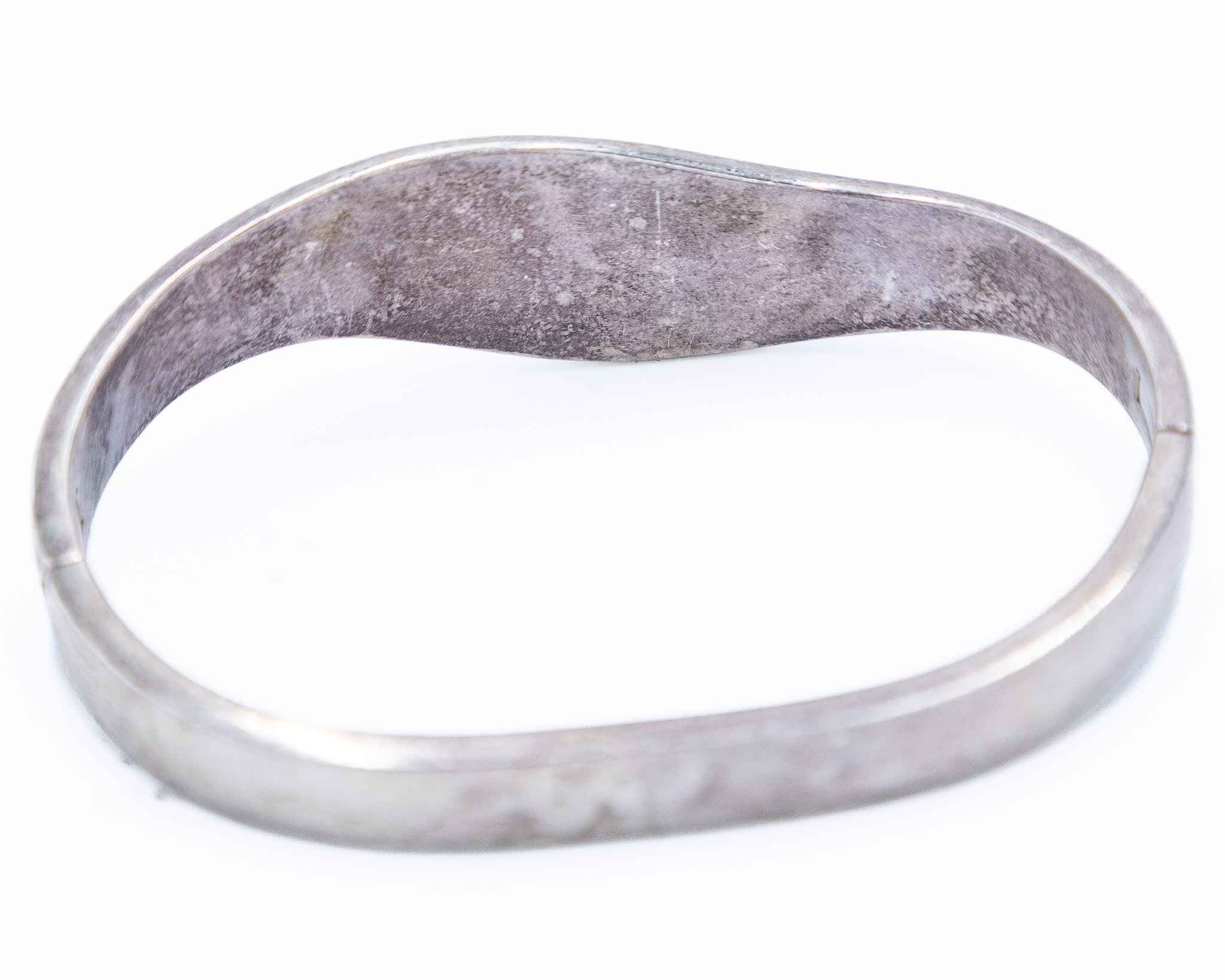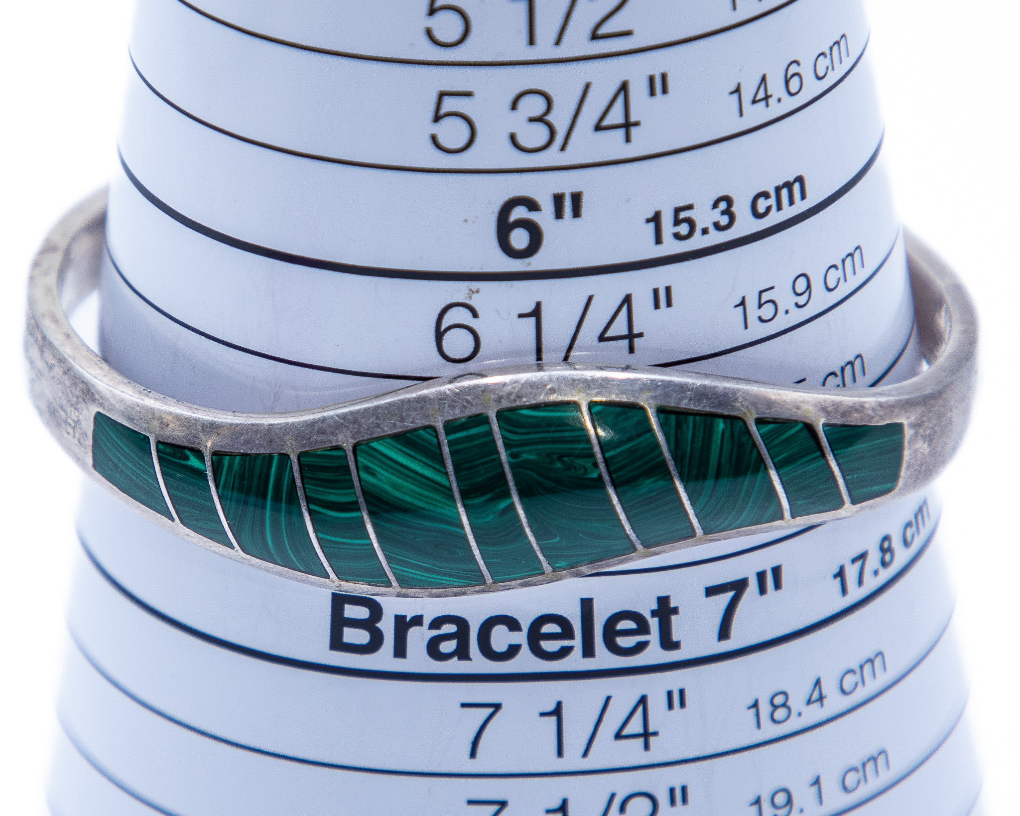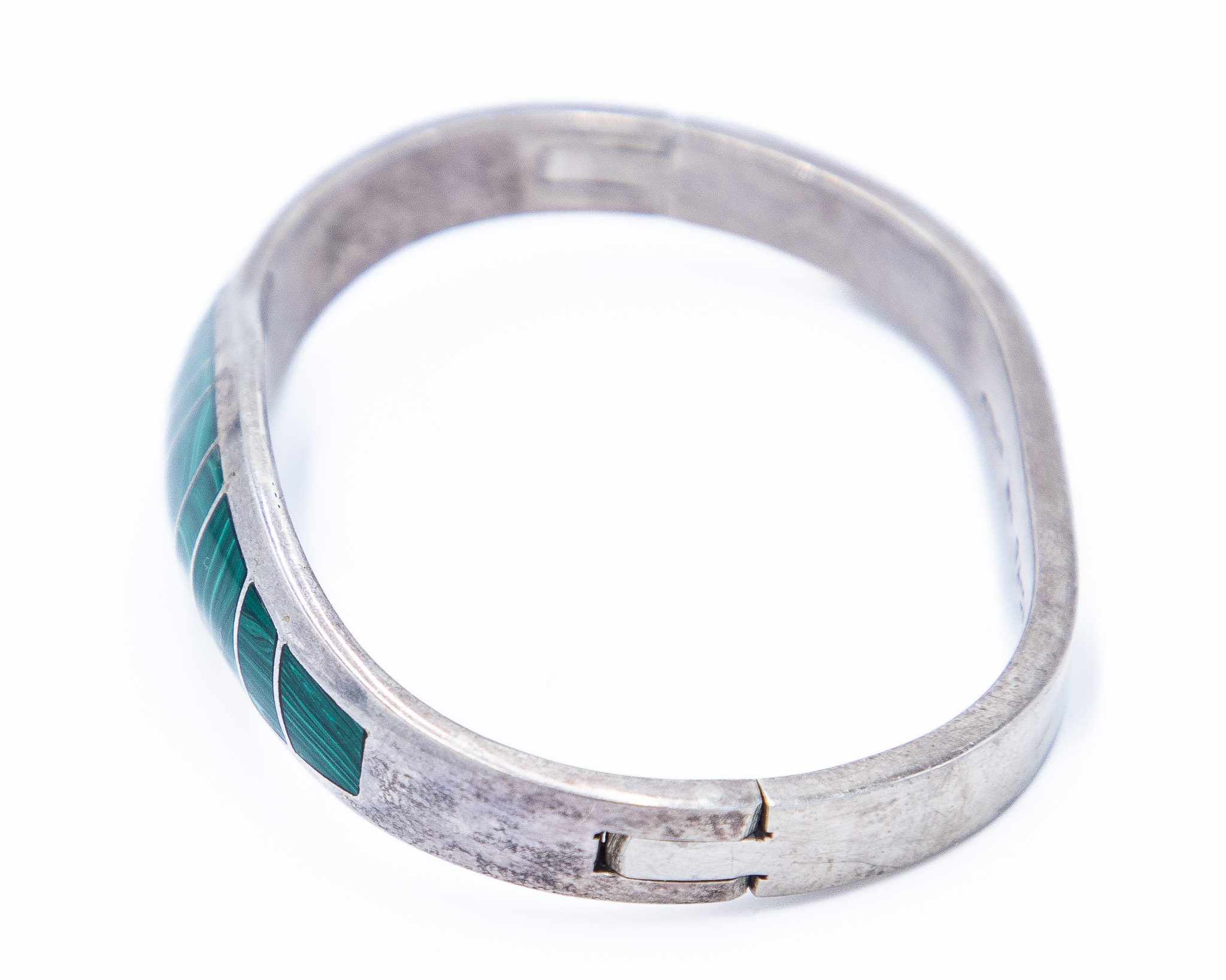 Signed TJ-56 Taxco Mexico Sterling Malachite Inlay Hinge Bracelet 41.5g