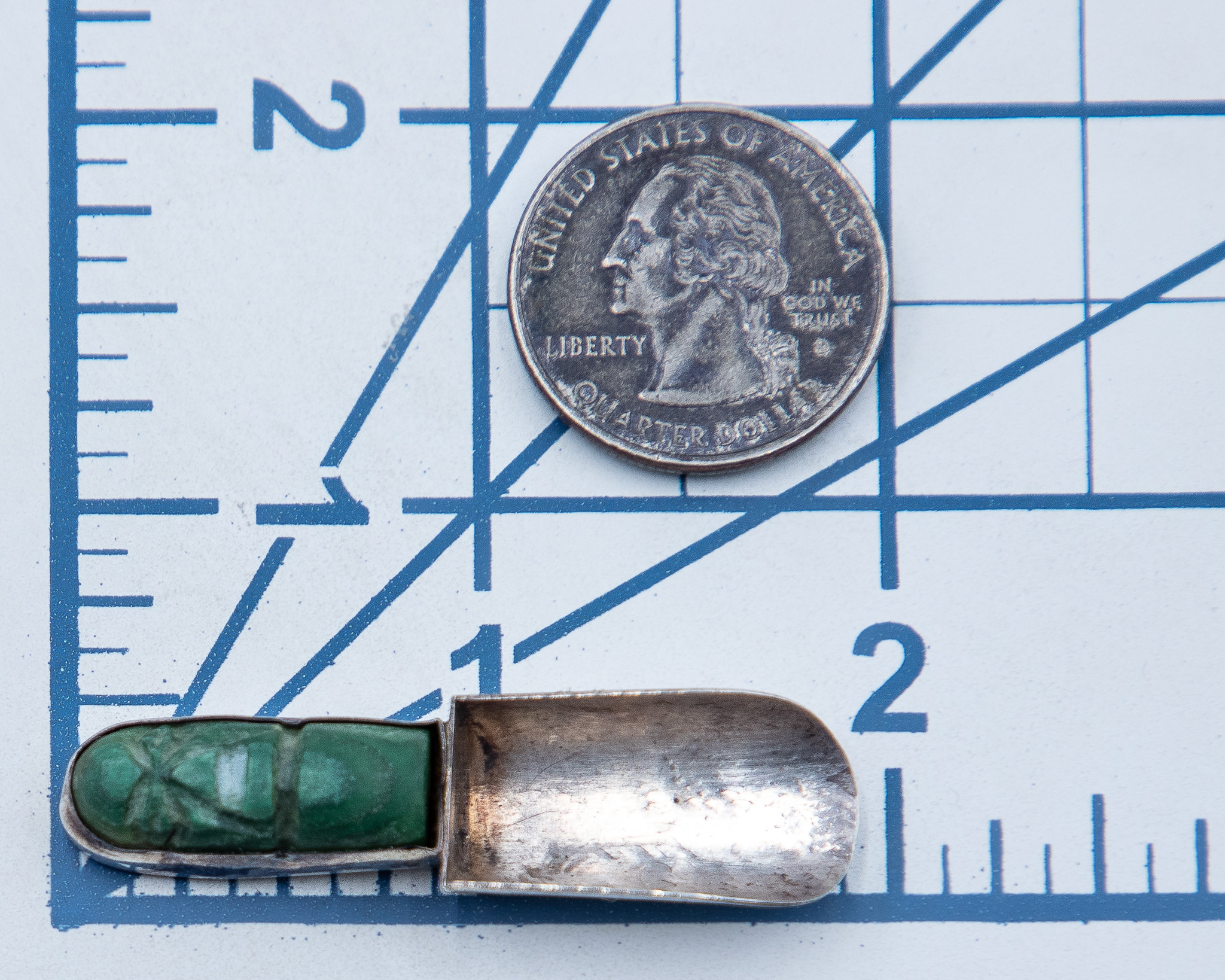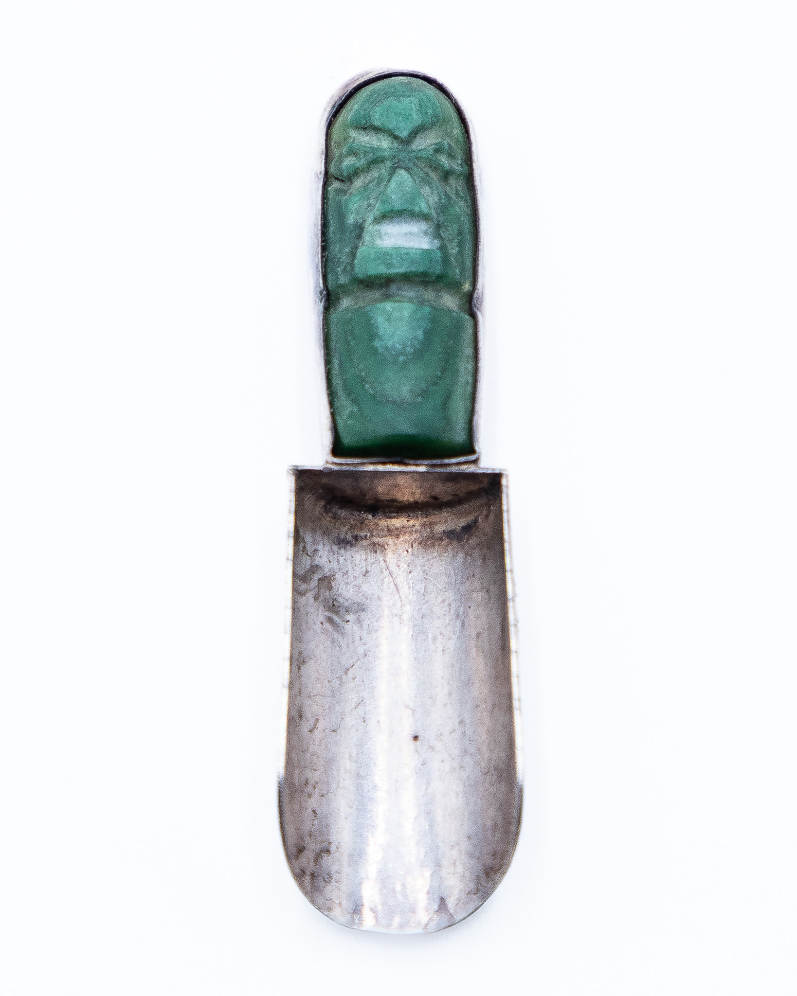 Signed ERR Vintage Mexico Sterling Carved Green Stone Face Sugar Coffee Scoop Spoon 6g