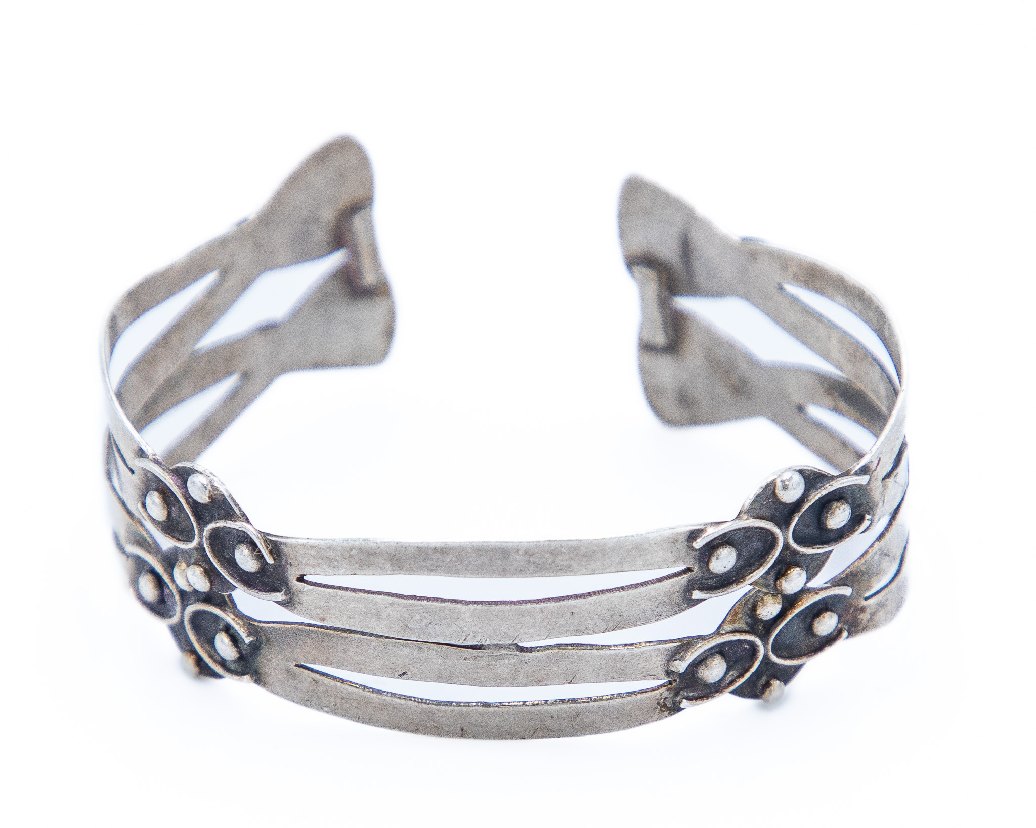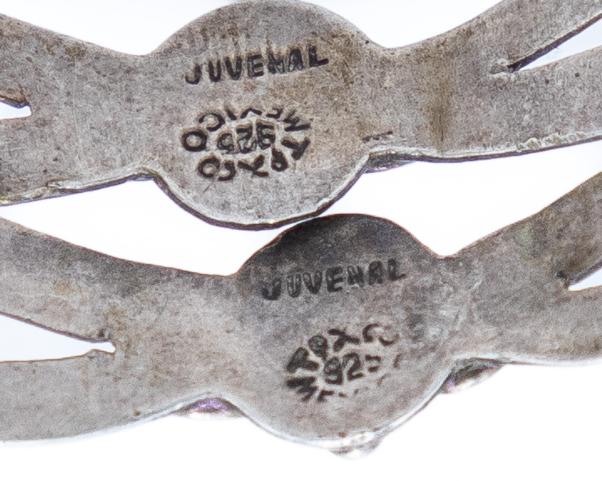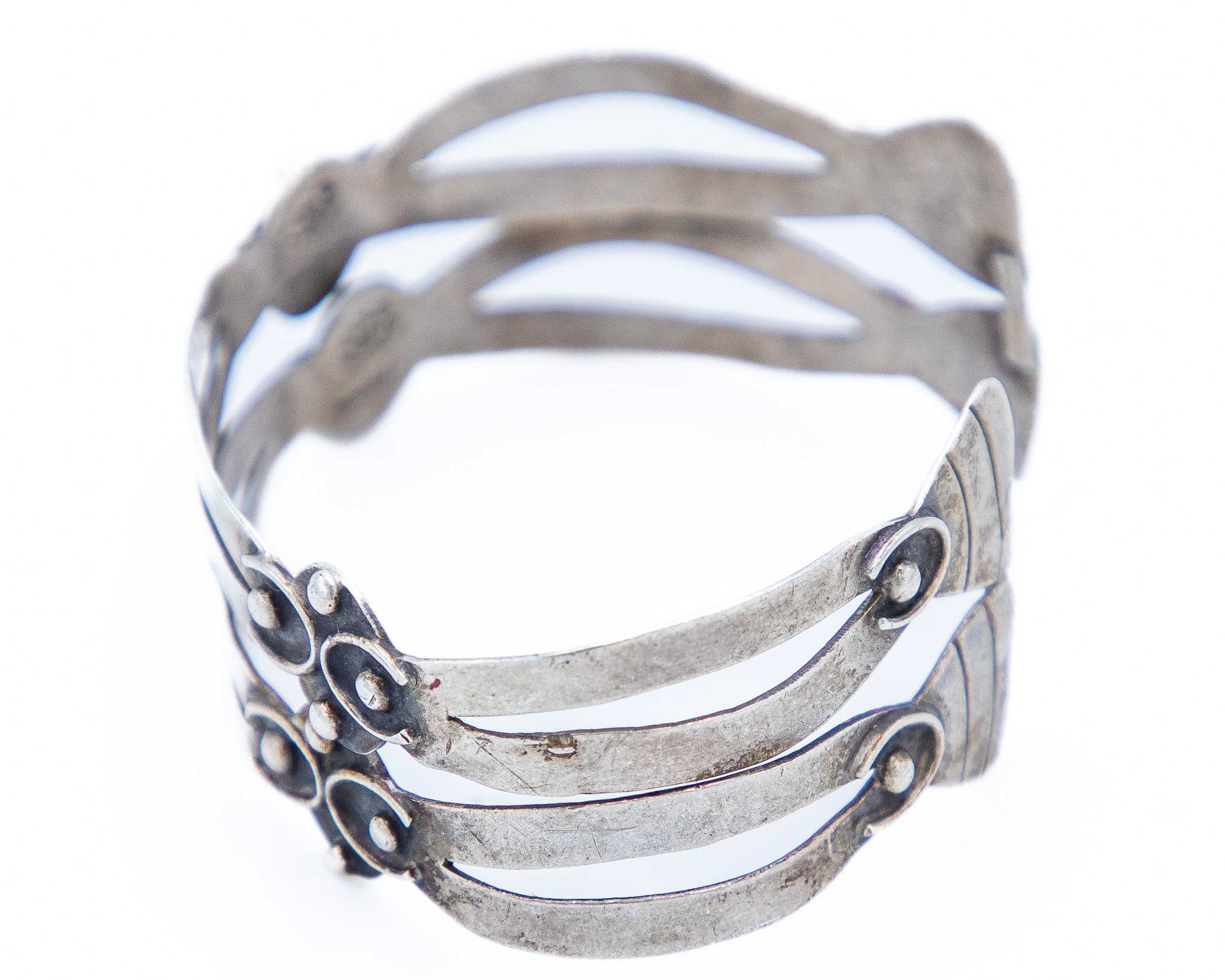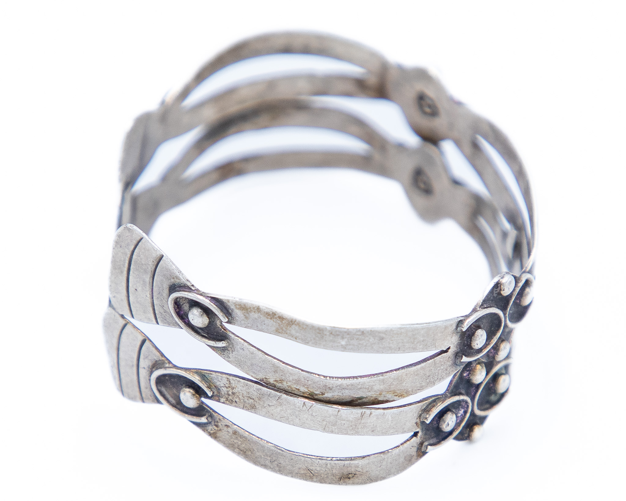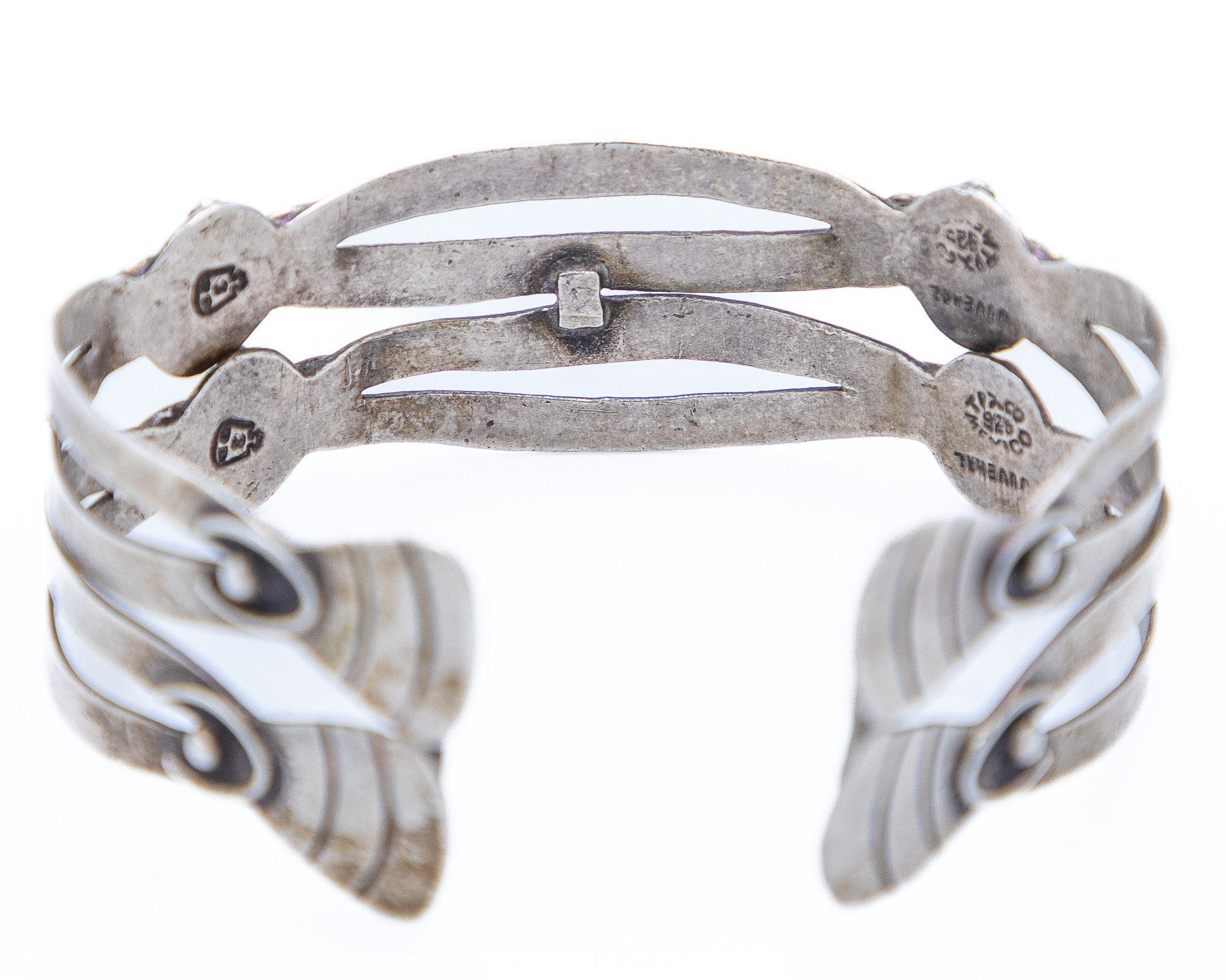 Signed Juvenal Sterling Taxco Mexico Layered Overlay Cuff Bracelet
