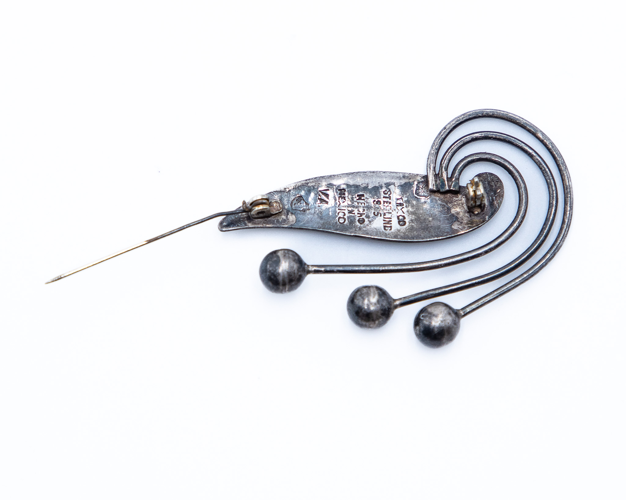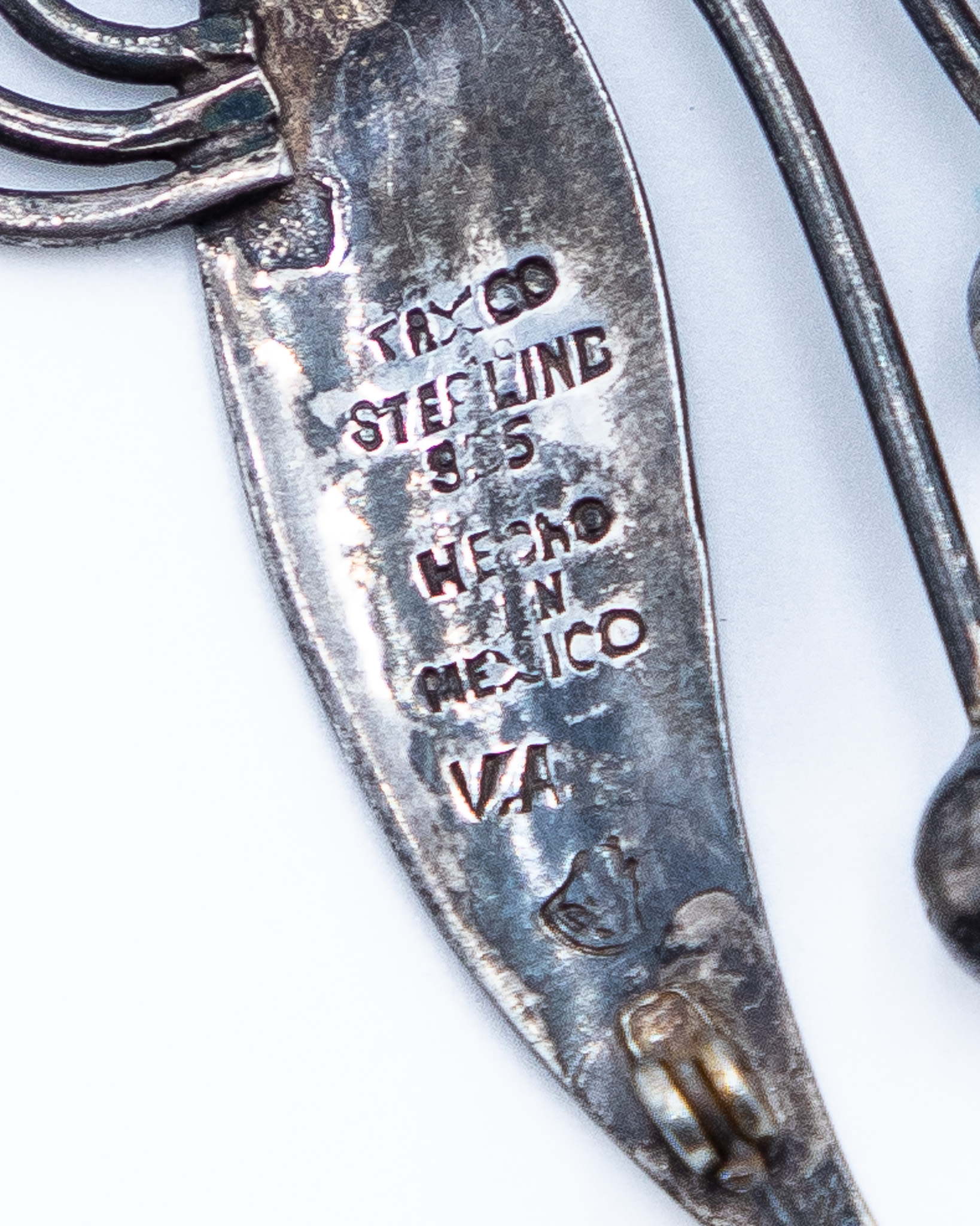 Signed VA Vintage Taxco Mexico Sterling Pea Brooch Pin 10g