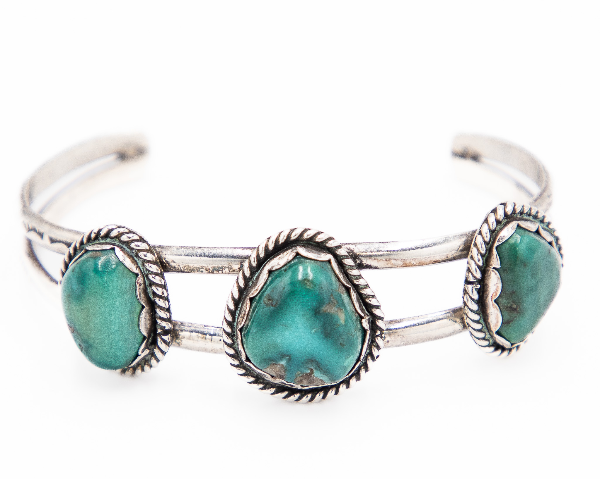 Navajo Sterling 3 Stone Turquoise Cuff Bracelet 21g