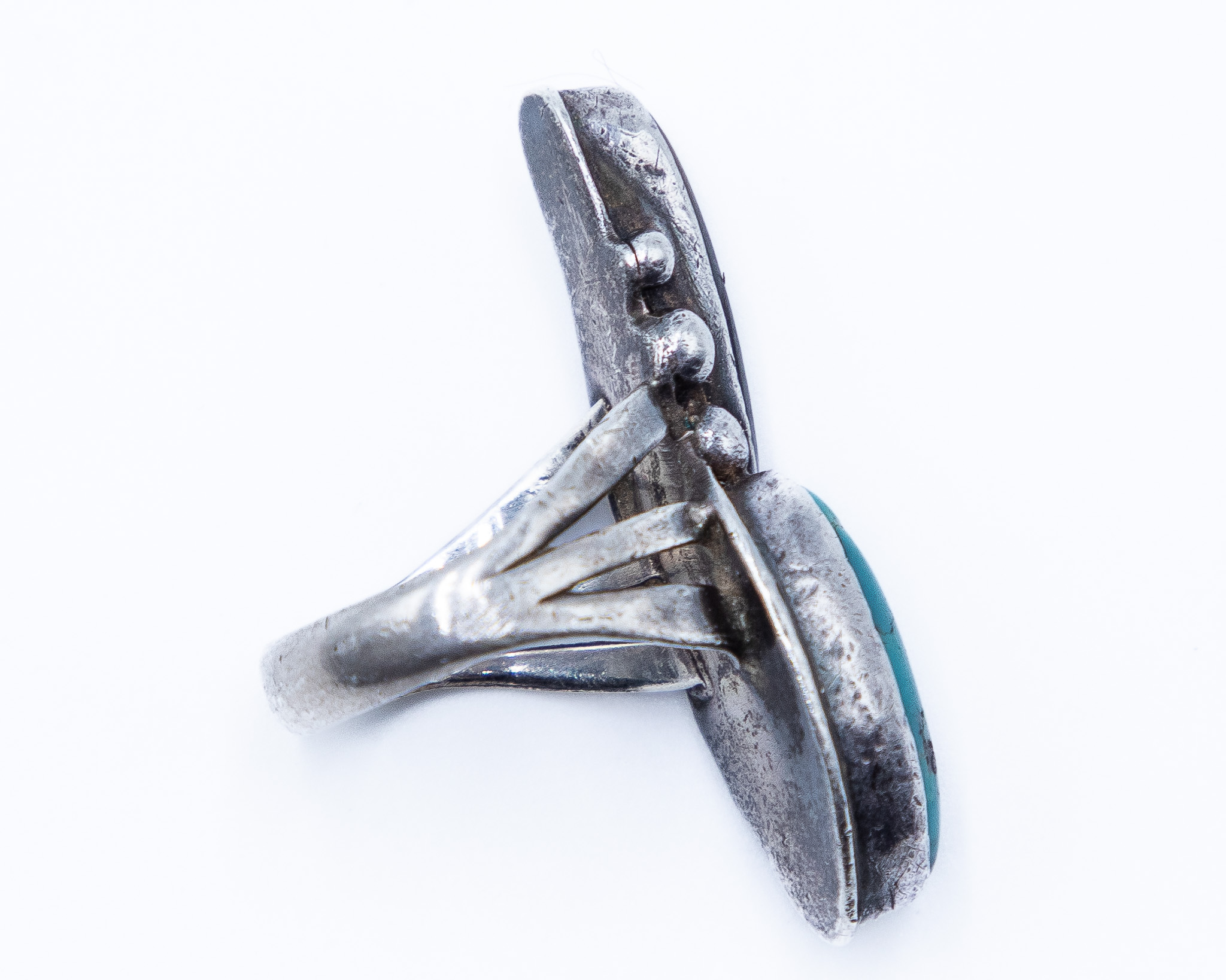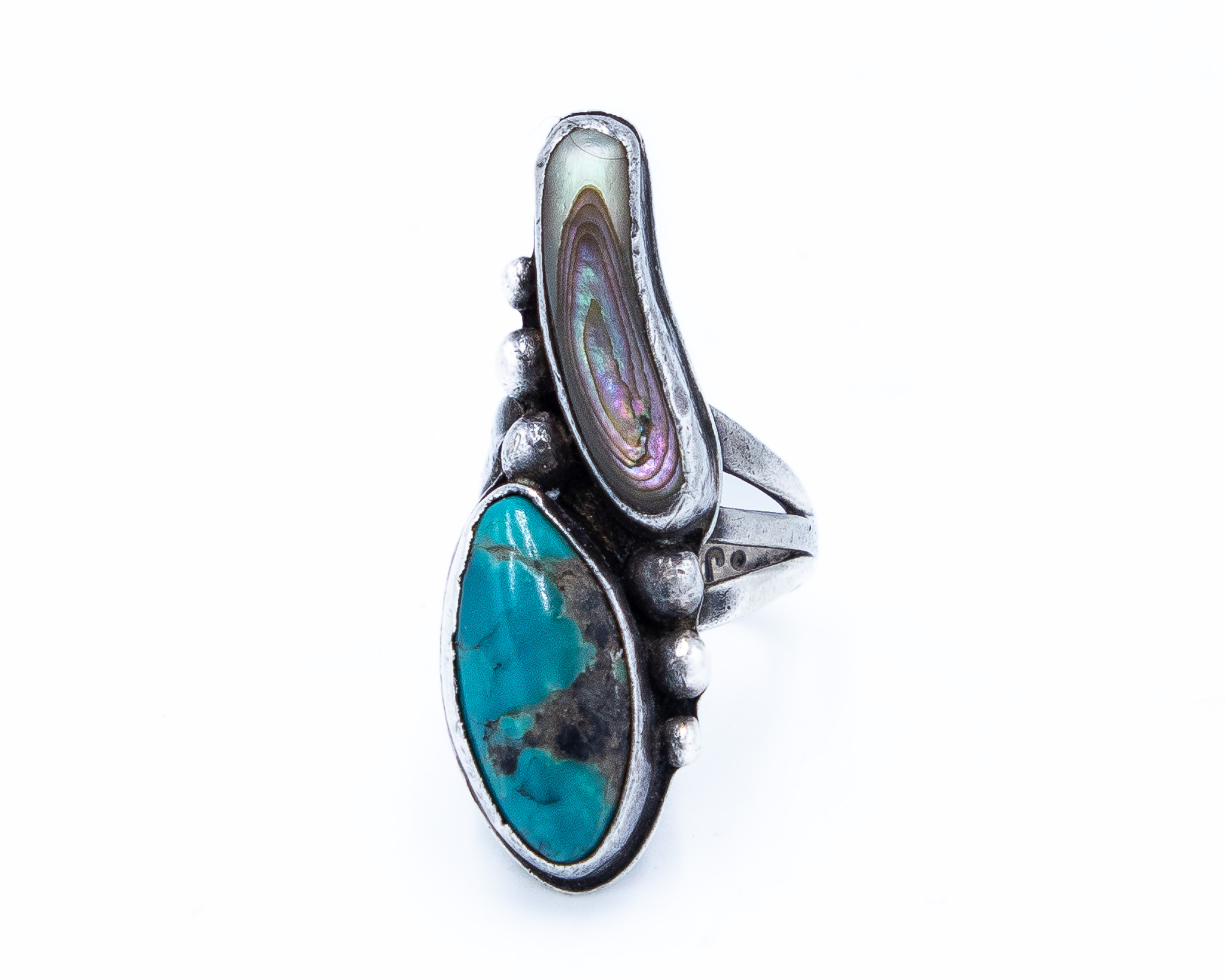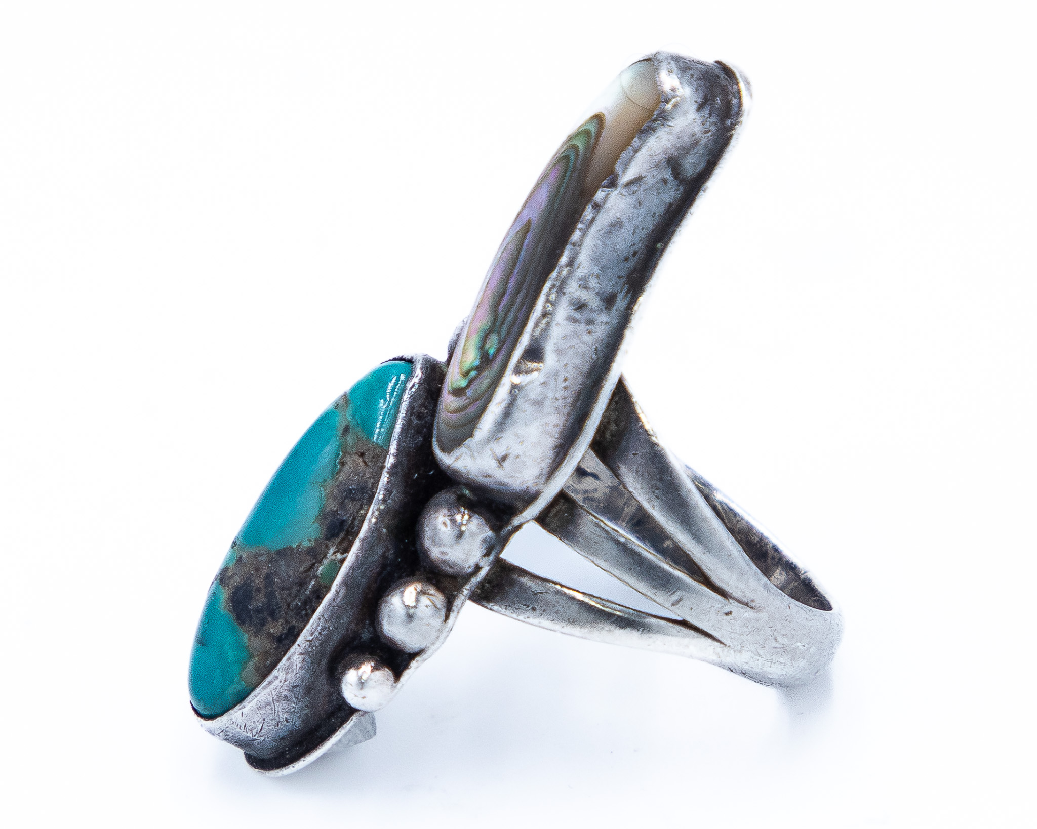 Signed JP Vintage Navajo Sterling Turquoise Abalone Ring Sz. 6, 11g