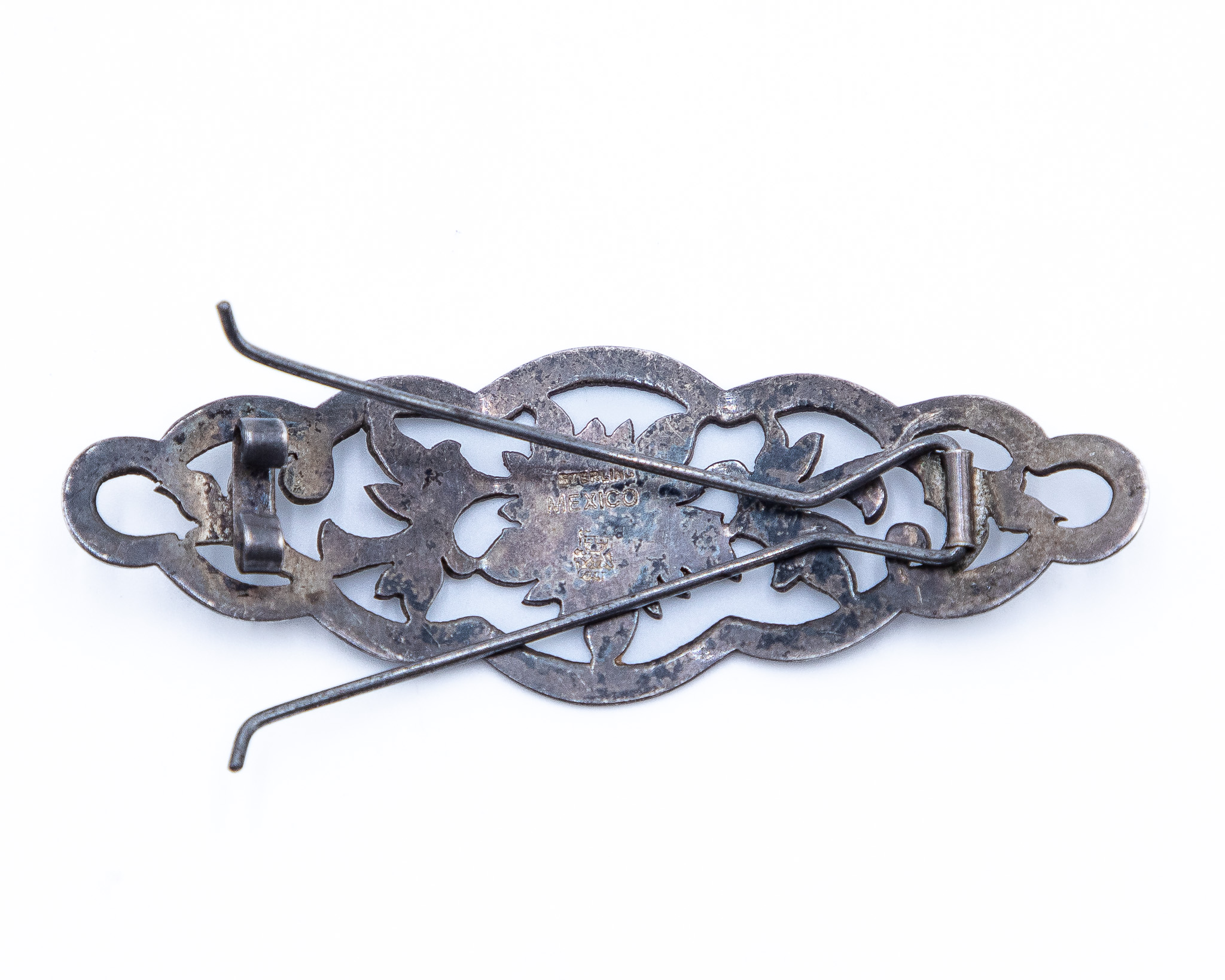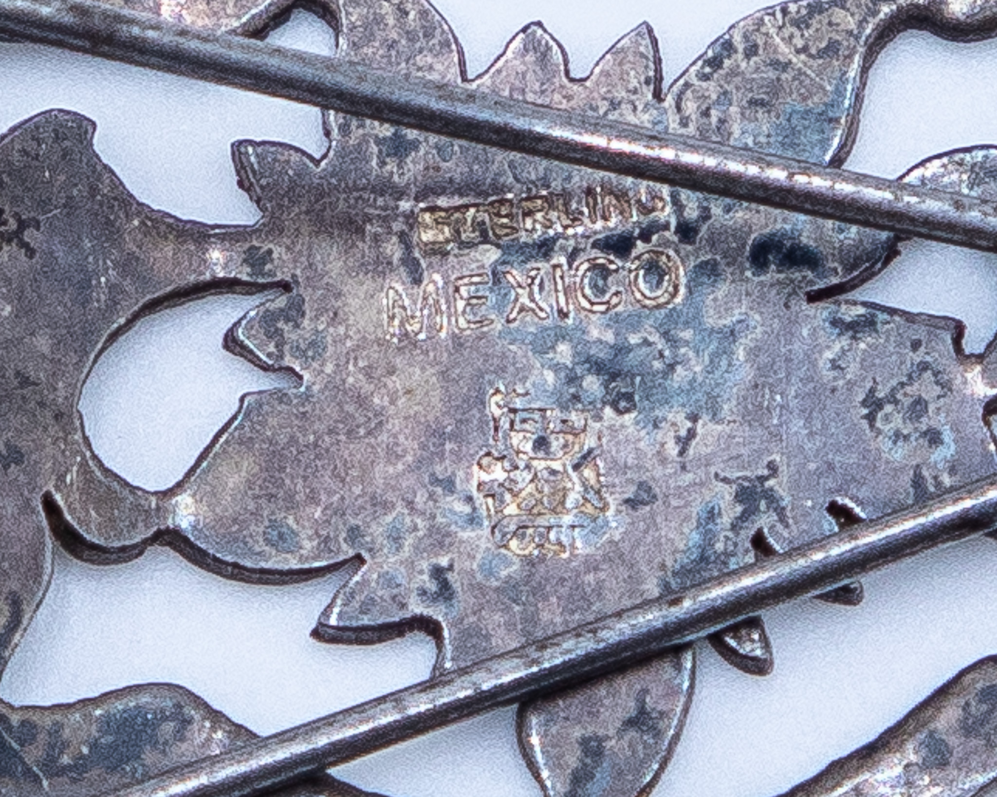 Signed Vintage Mexico Sterling Hair Clip 8g-Pictograph Signature Stamp