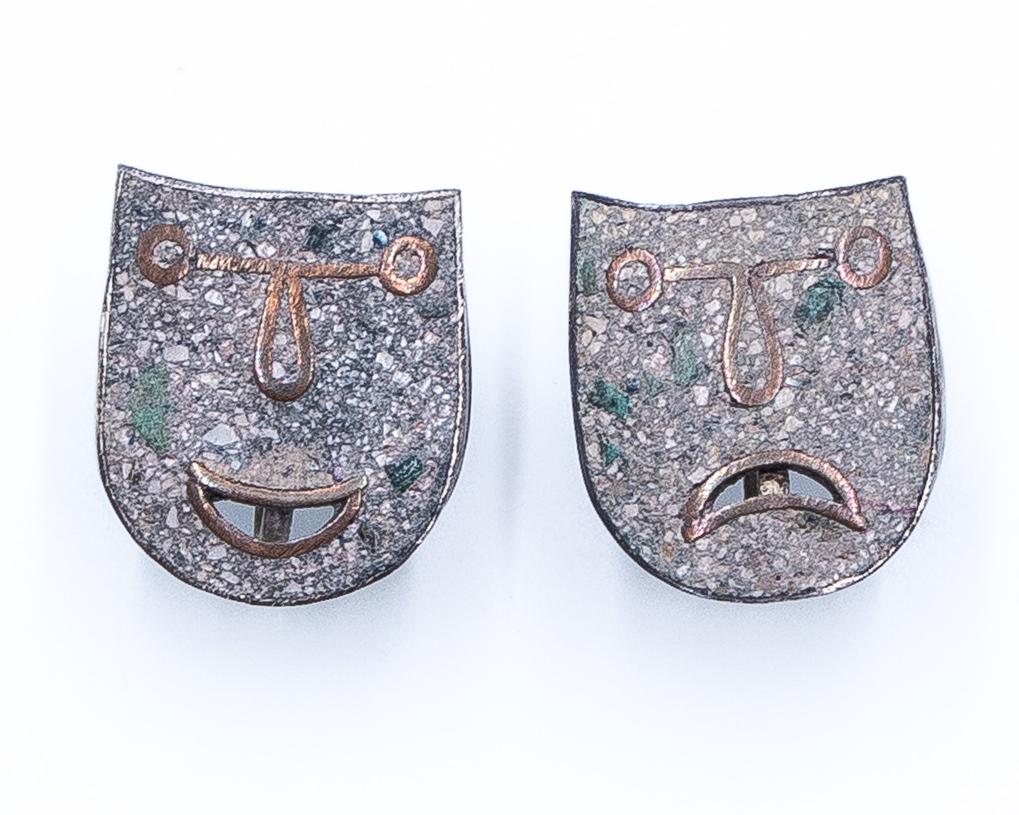 Signed REH Vintage Mexico Sterling And Stone Drama Mask Earrings