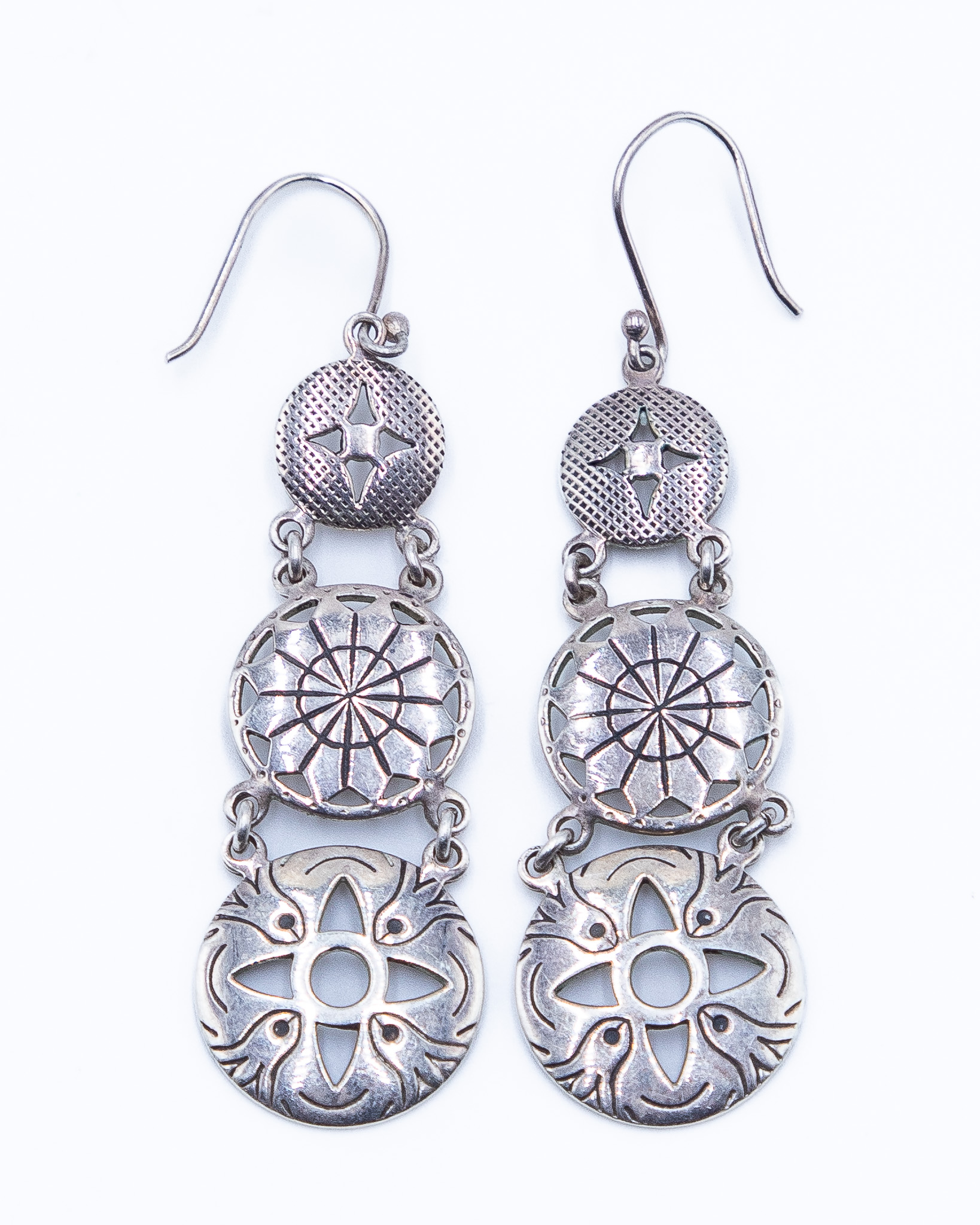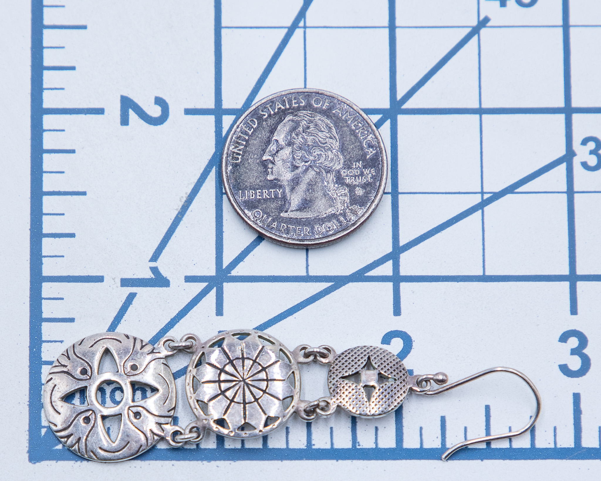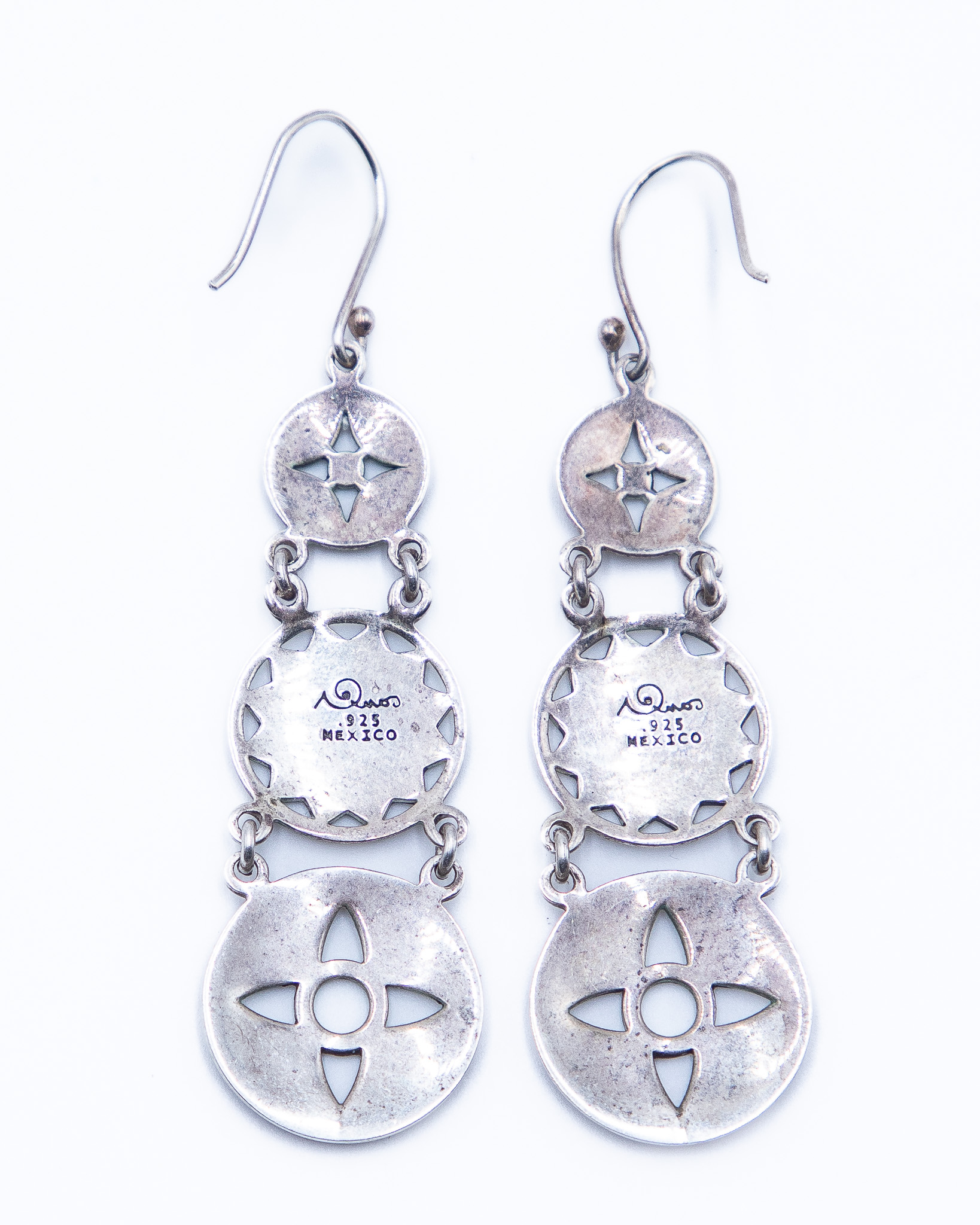 Signed Mexico Stamped Sterling Dangle Hook Earrings 12.5g