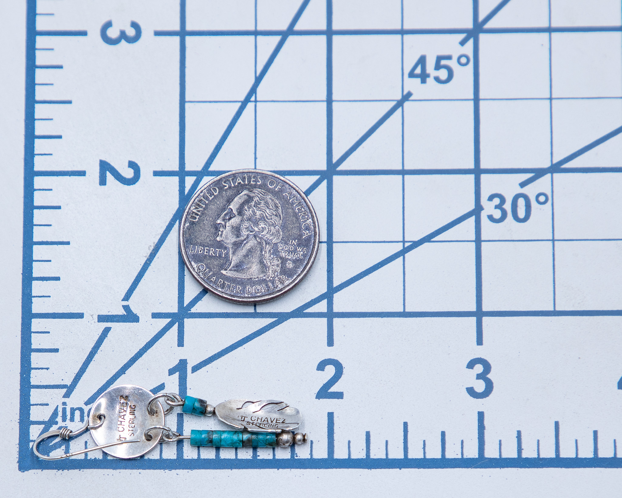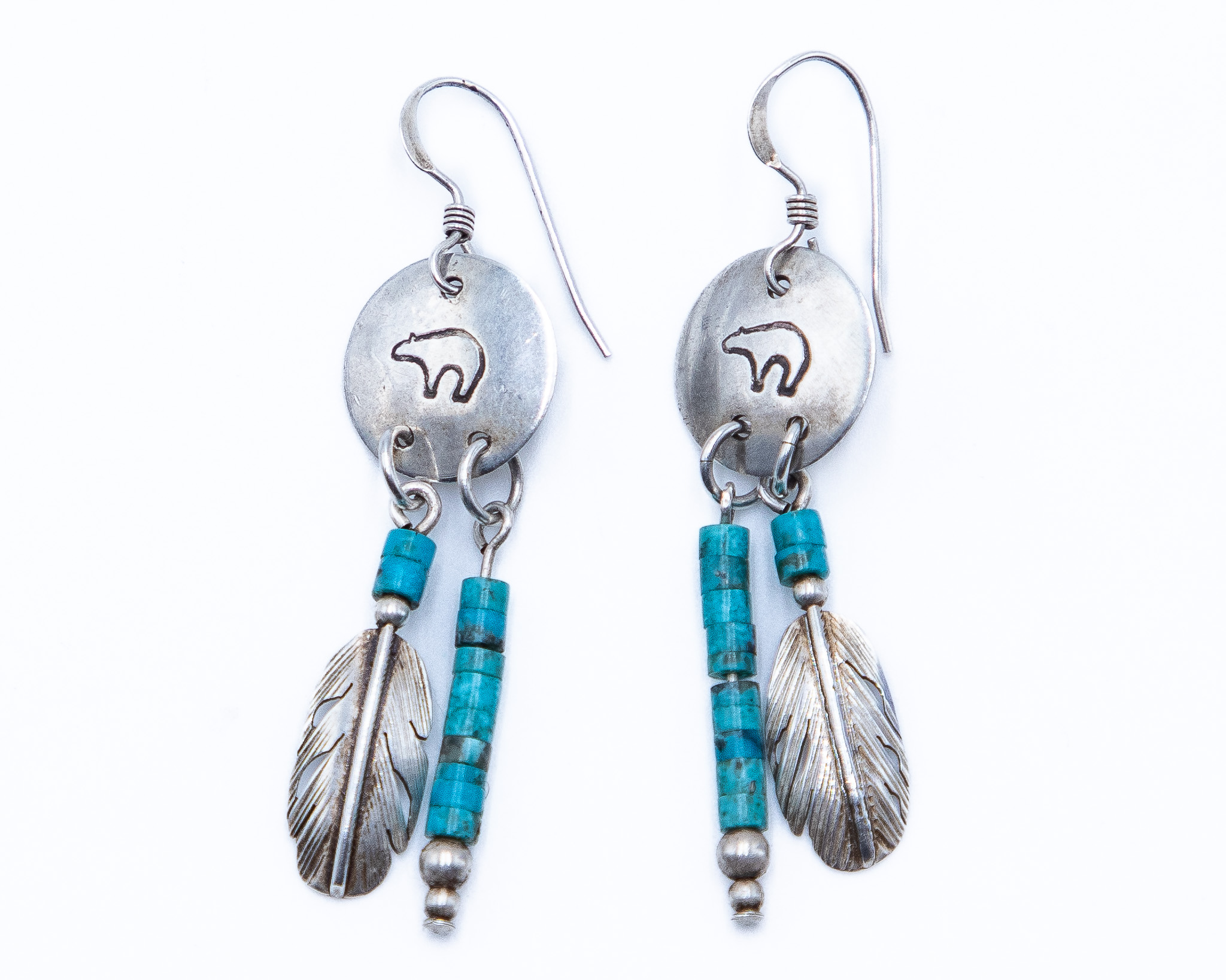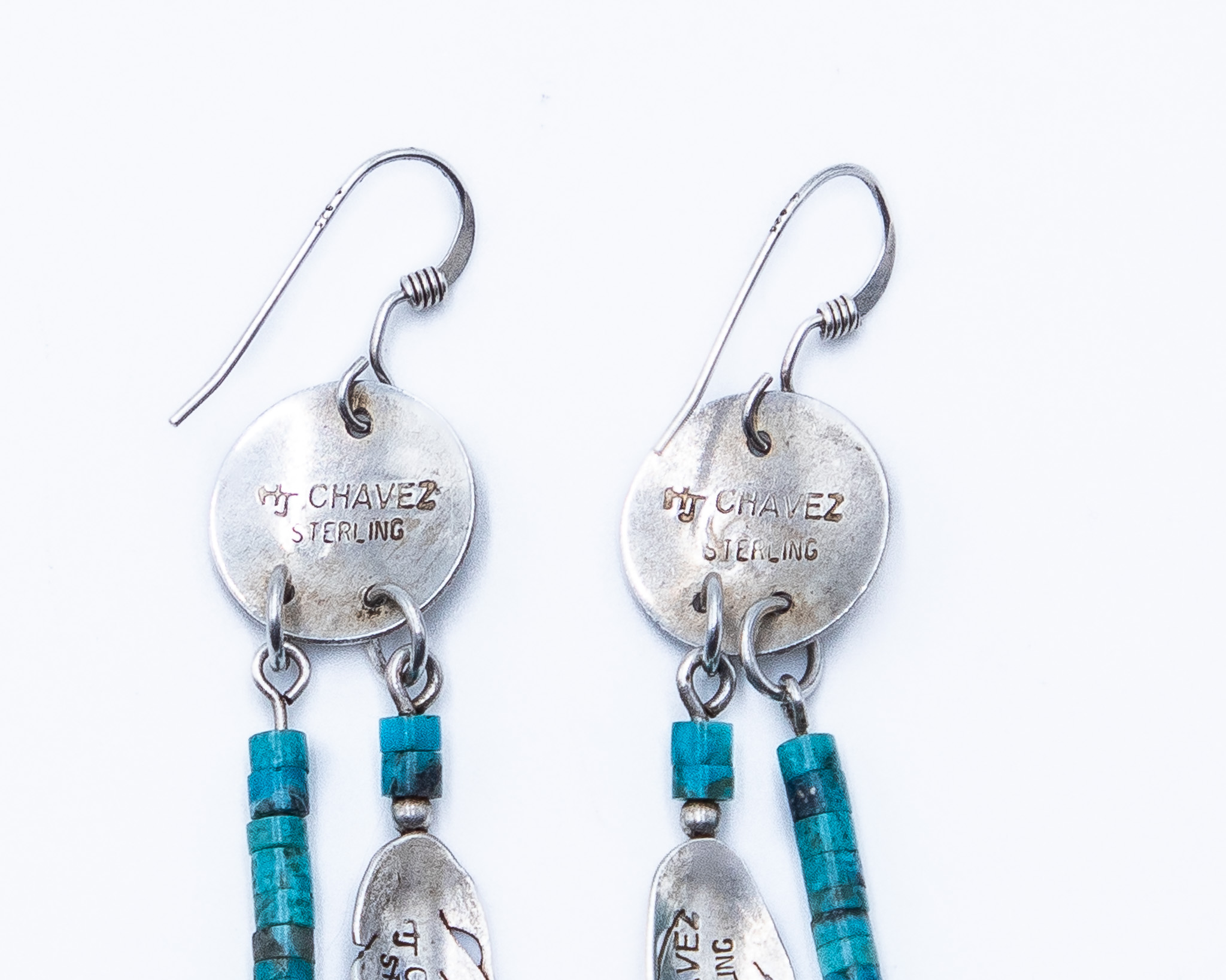 HJ Chavez Vintage Kewa Sterling Turquoise Feathers Hook Earrings 4g