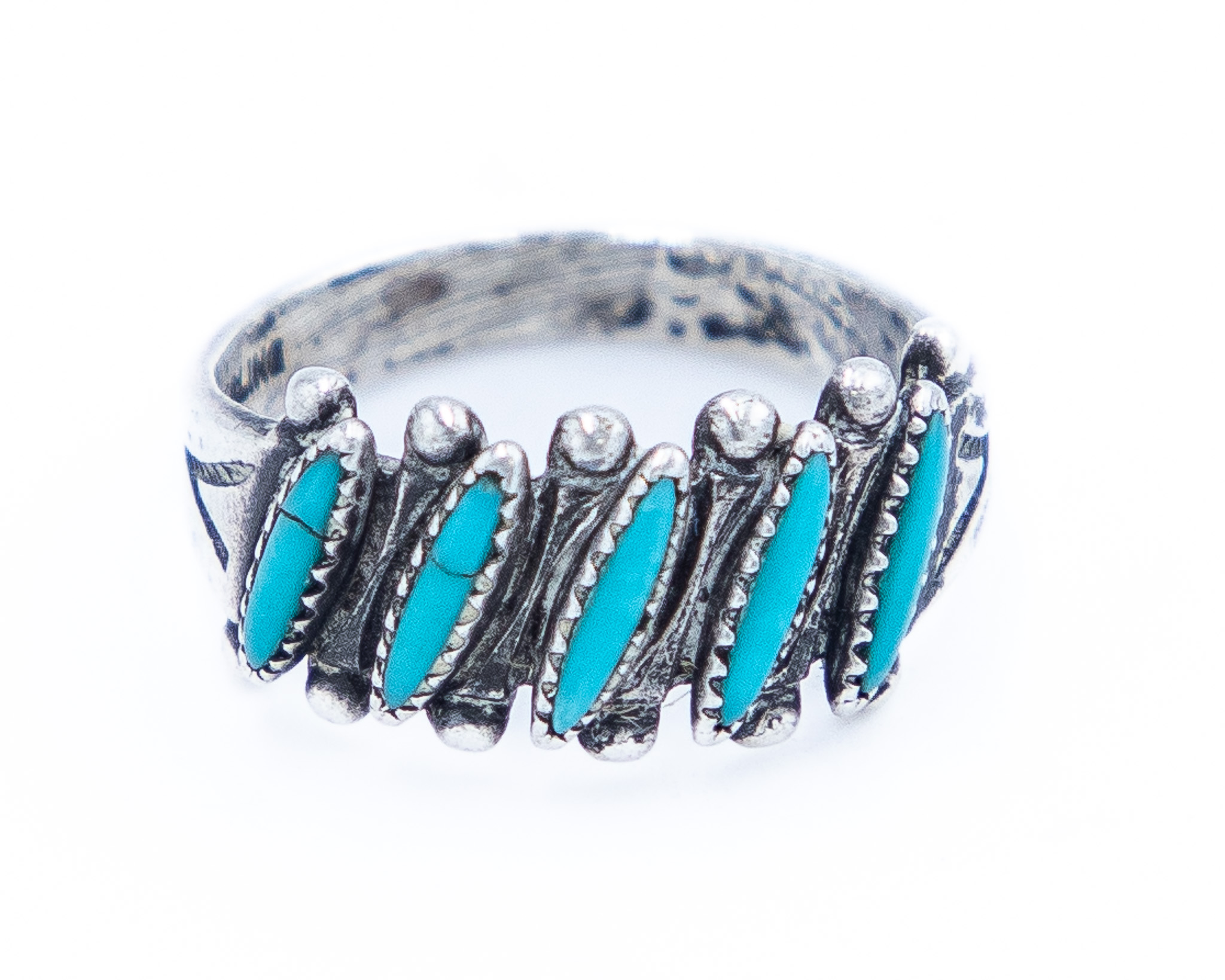 Bell Trading Post Vintage Sterling Needlepoint Turquoise Ring Sz. 6, 3g
