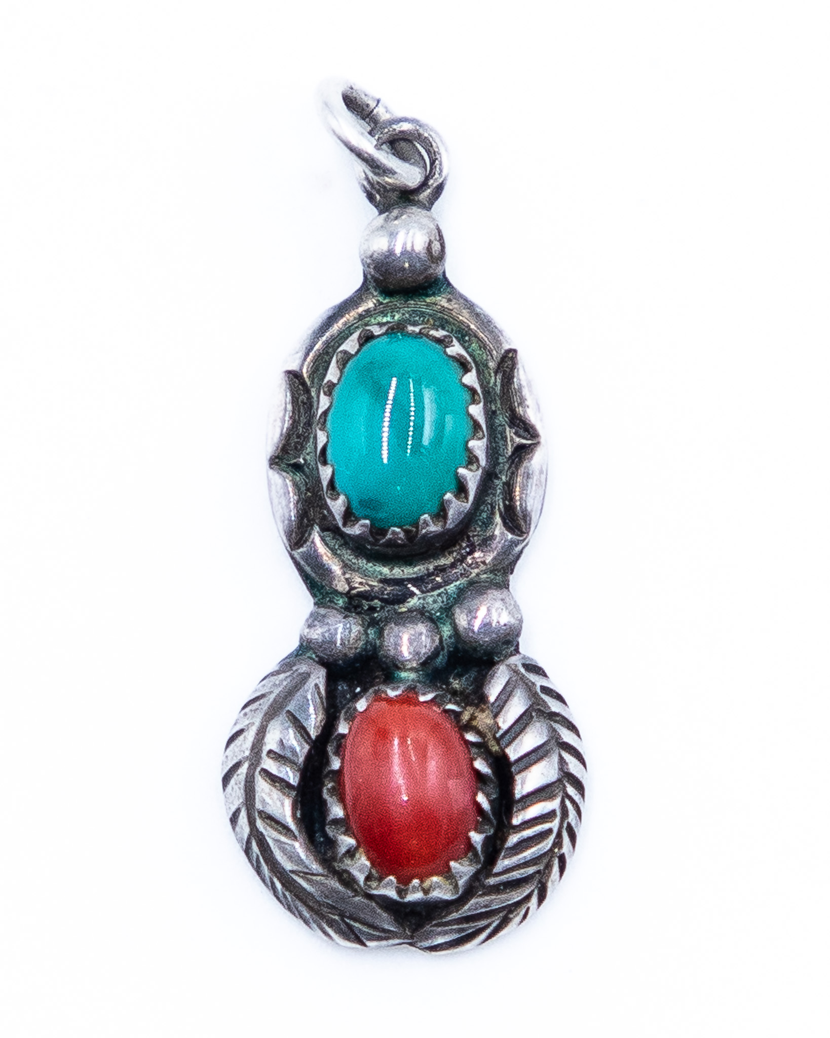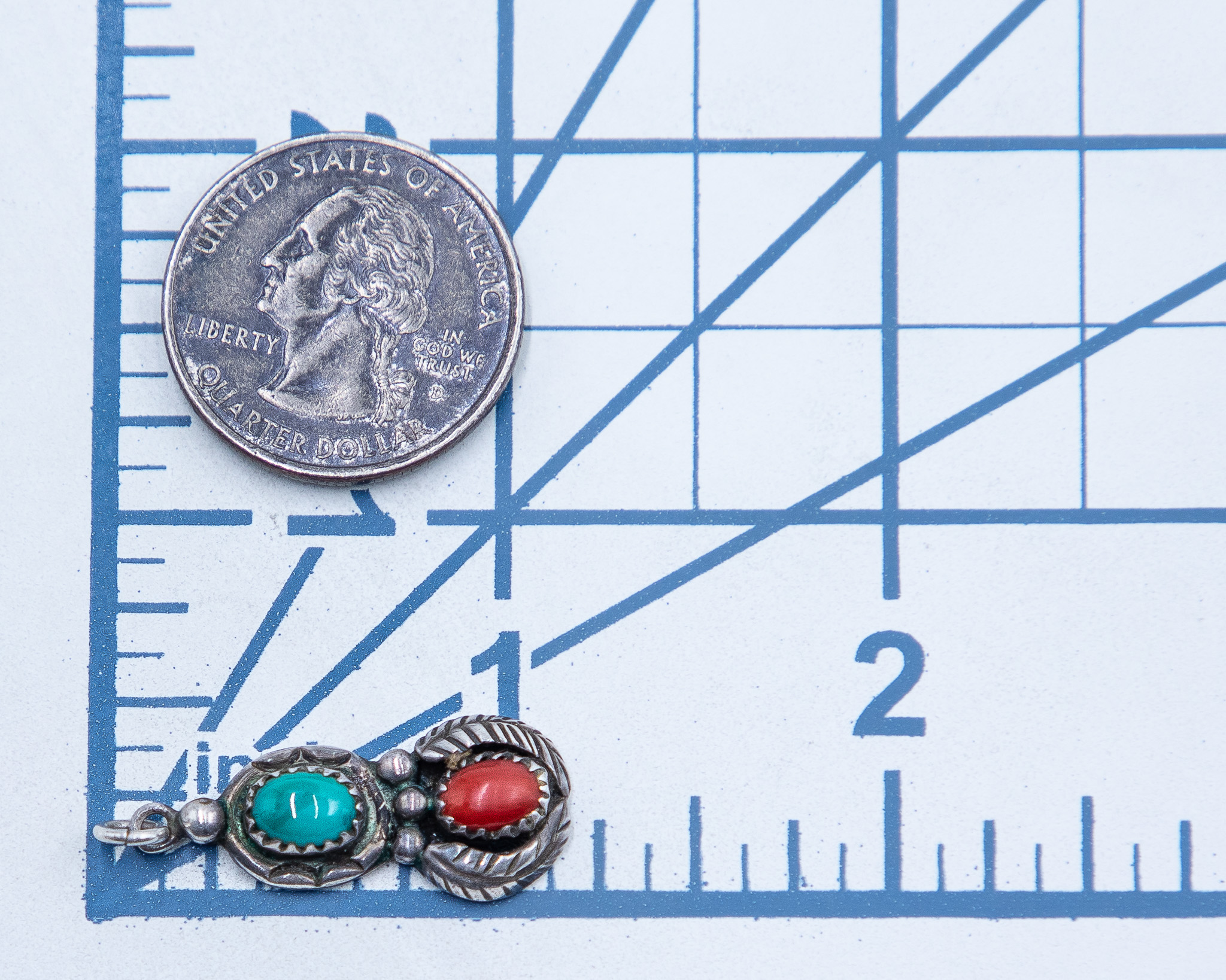 Kary Begay Navajo Sterling Coral Turquoise Pendant 3g