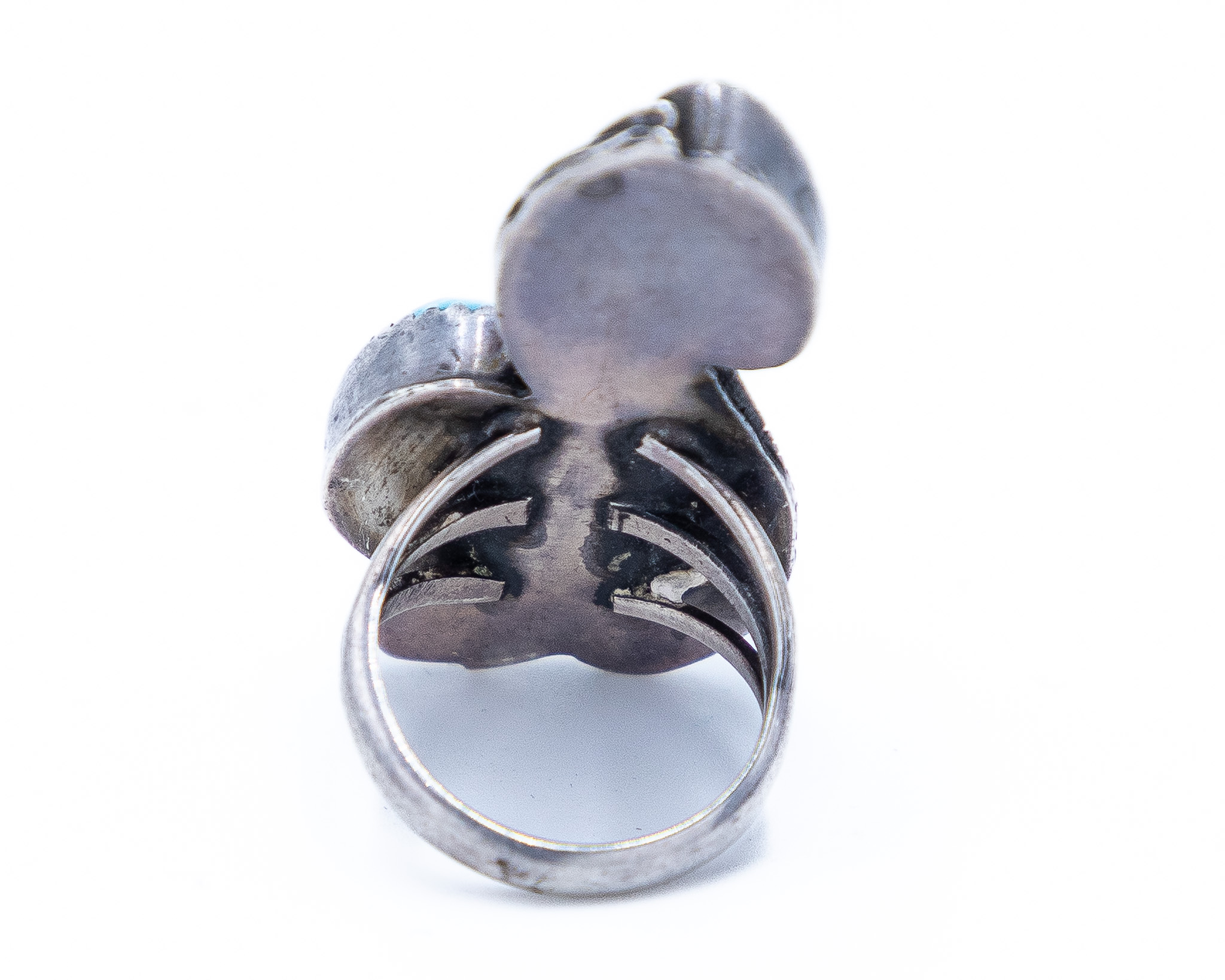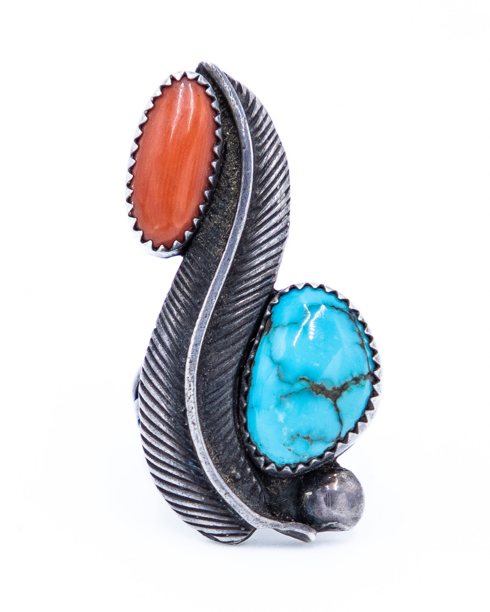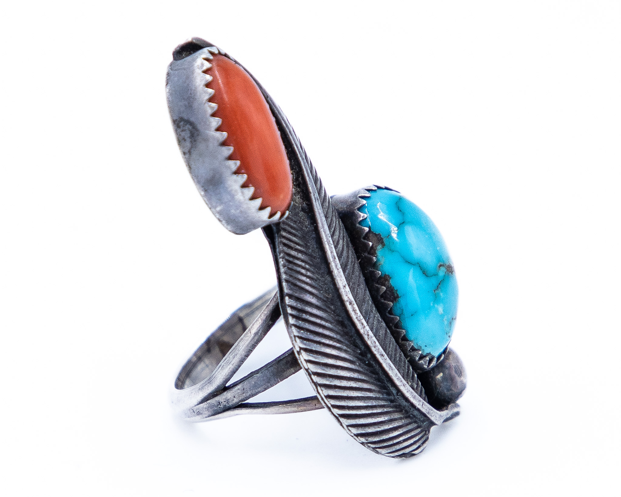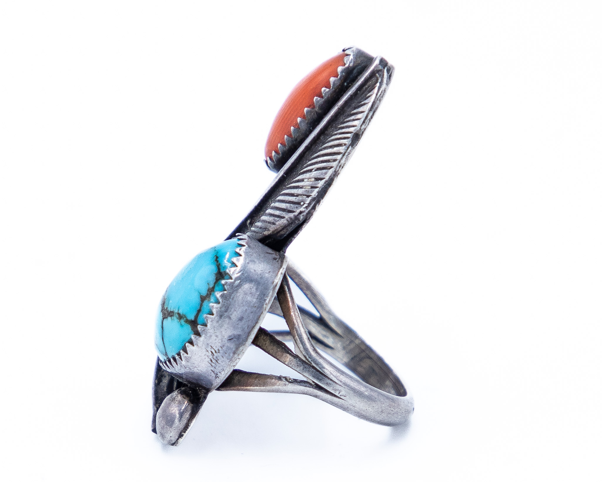 Vintage Navajo Sterling Turquoise Coral Ring Sz. 6.5, 12g