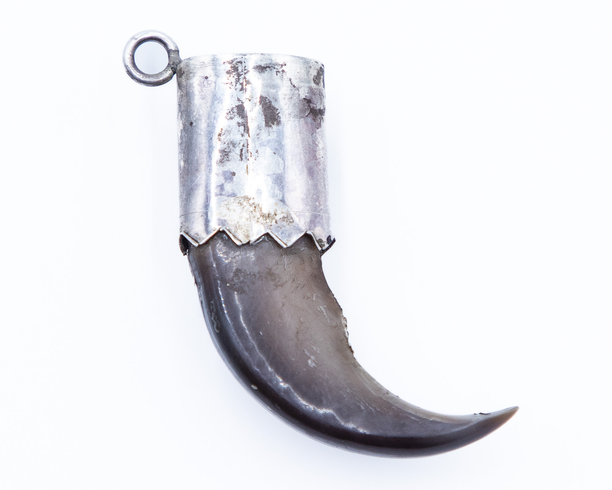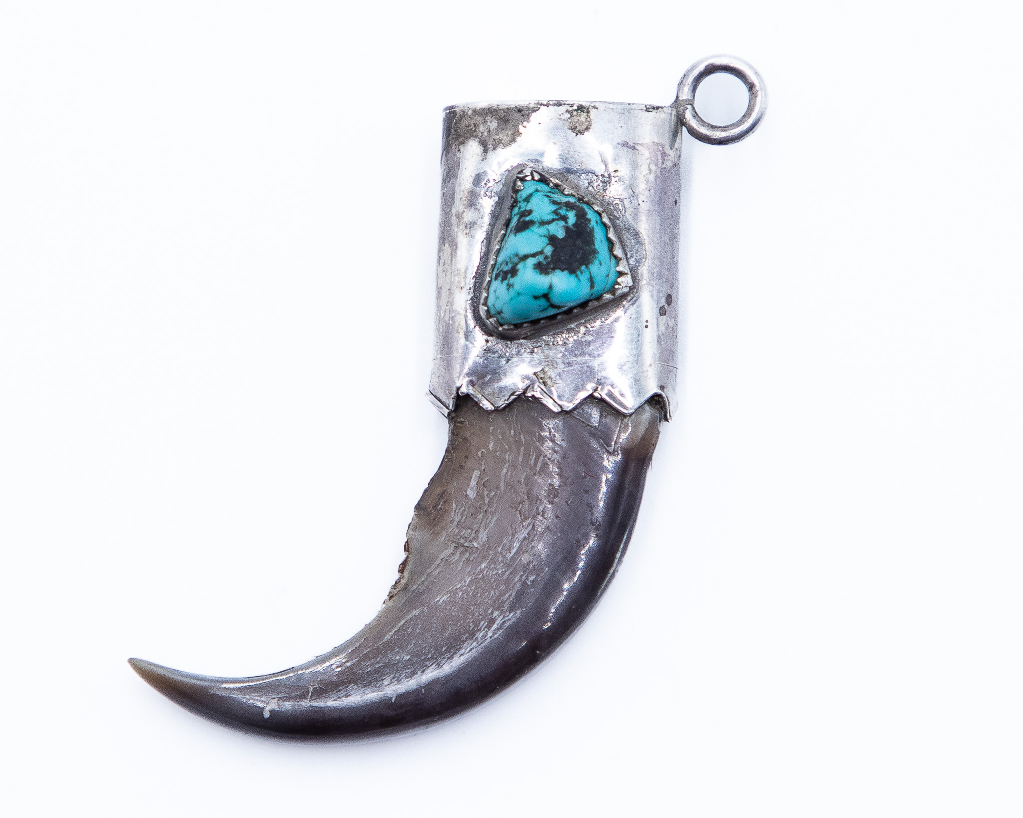 Vintage Navajo Turquoise Chunk Sterling Bear Claw Pendant