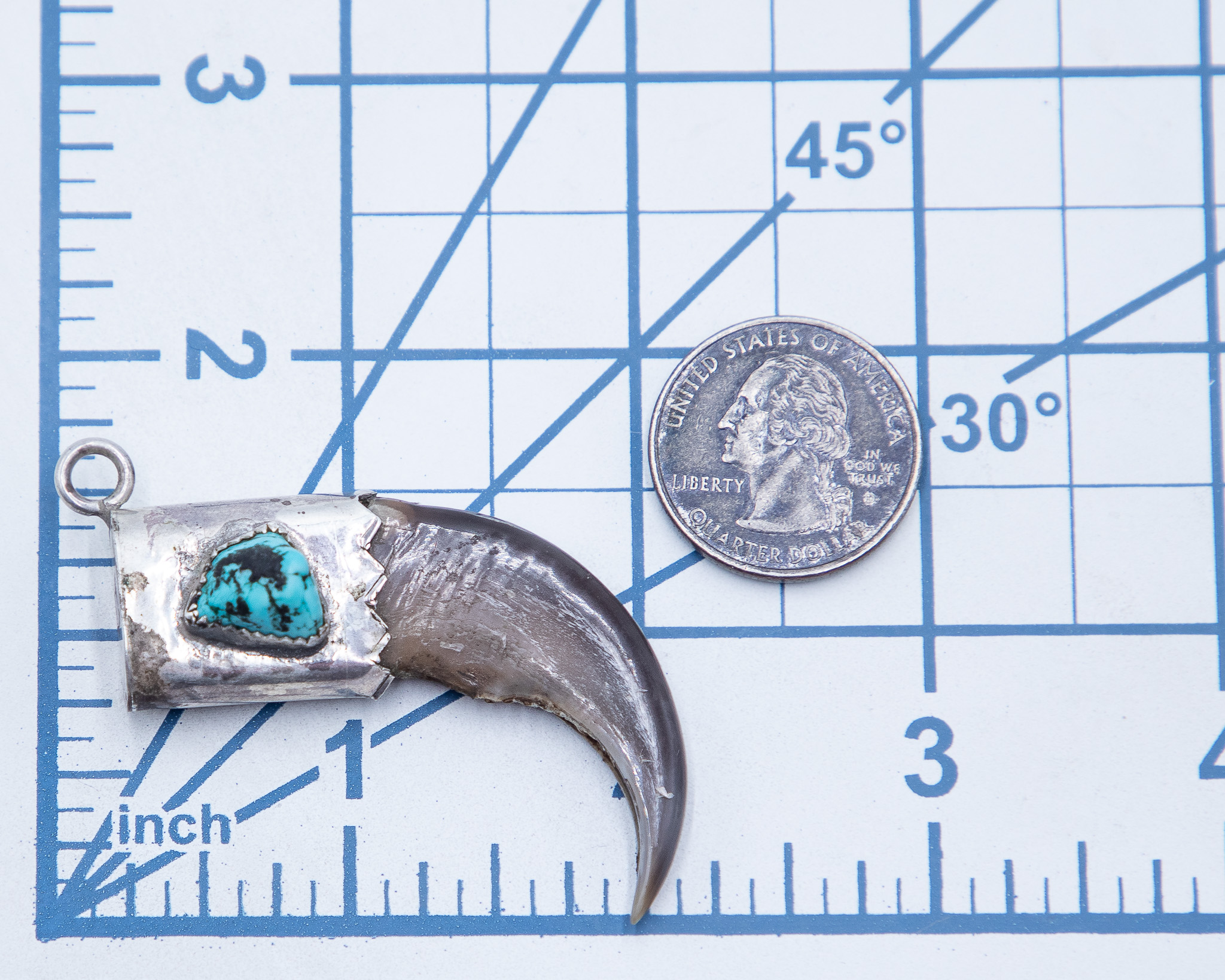 Vintage Navajo Turquoise Chunk Sterling Bear Claw Pendant 9g