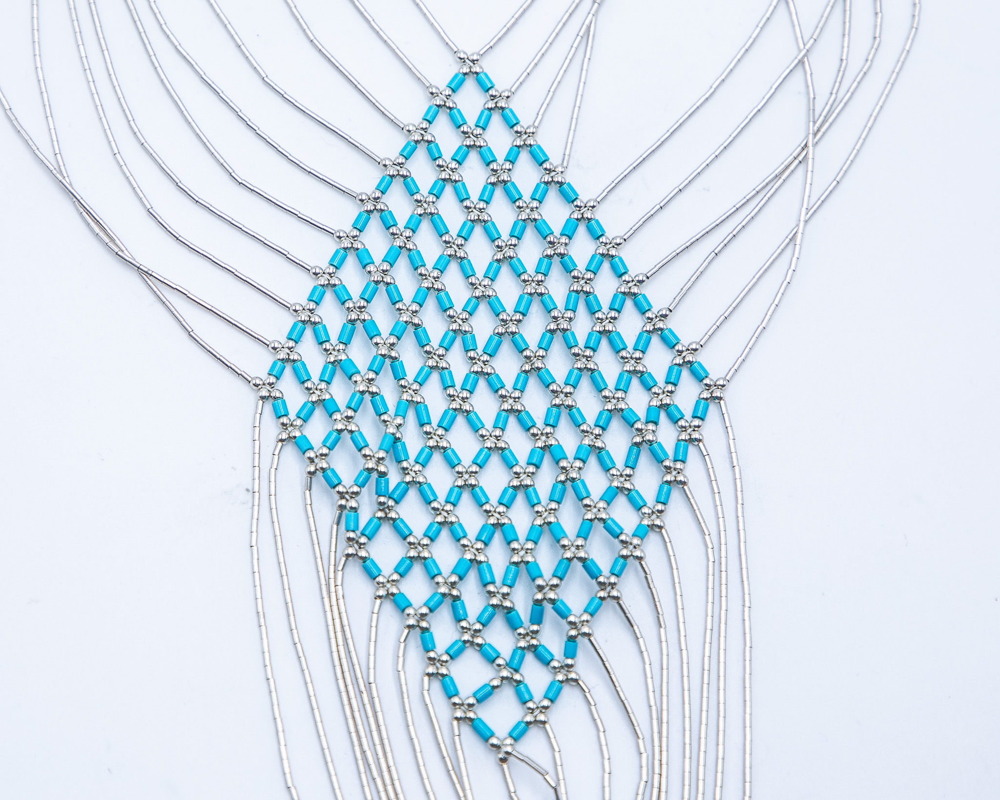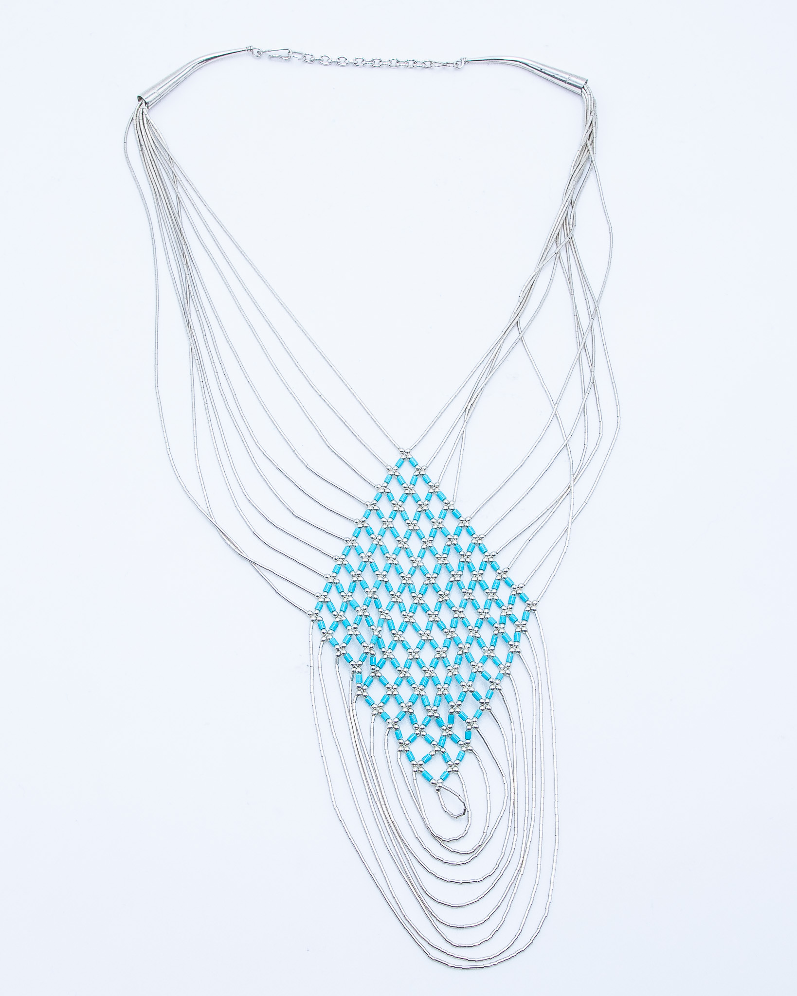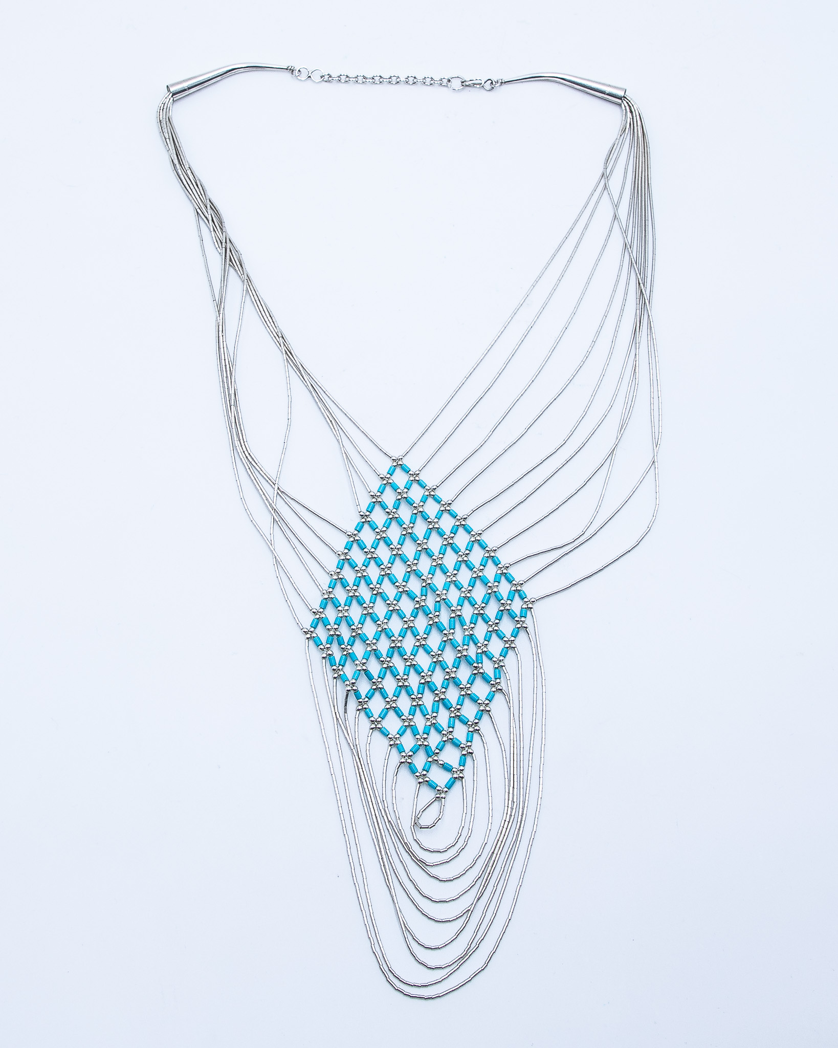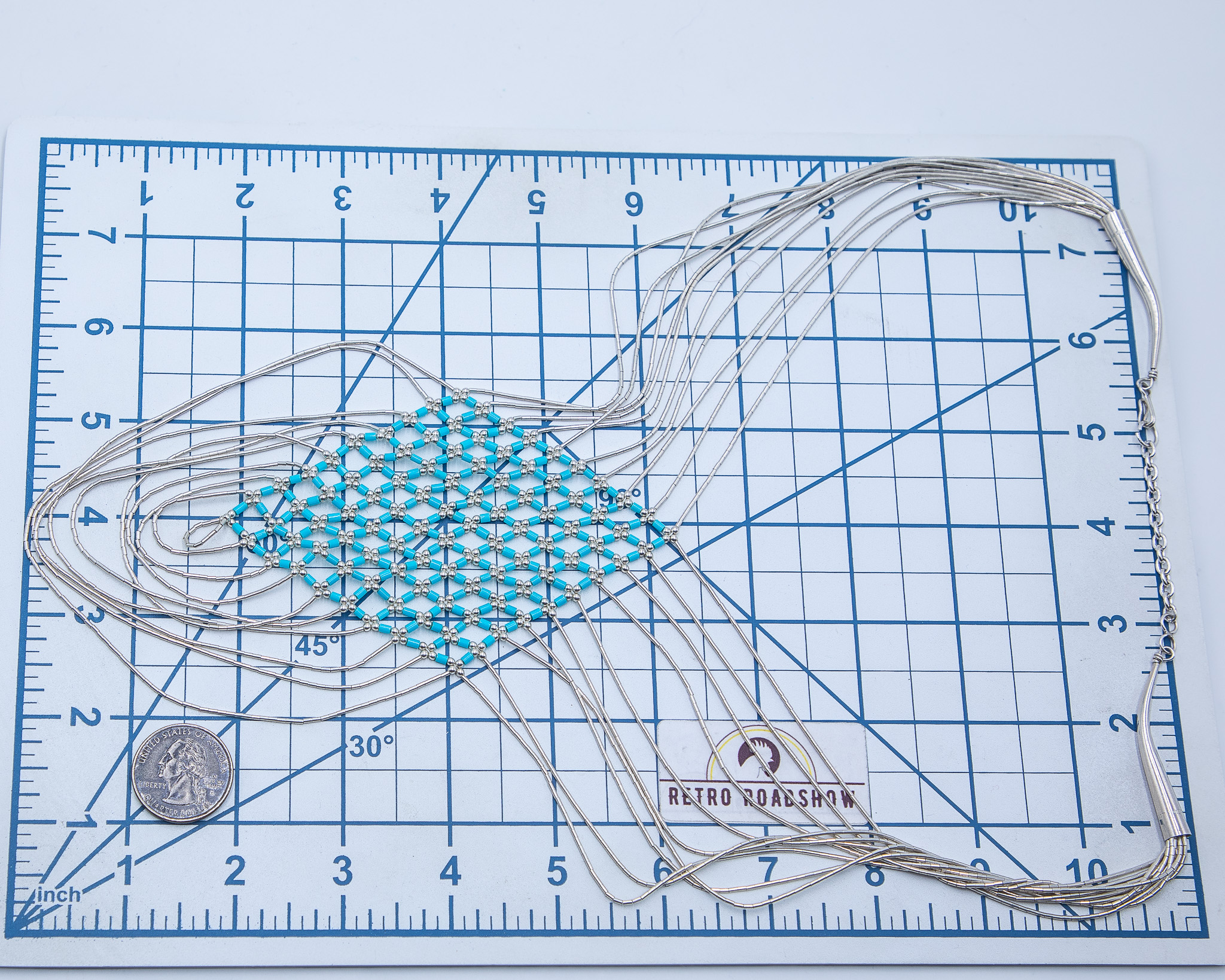 Native American Liquid Sterling Silver Turquoise Bead Necklace 41g