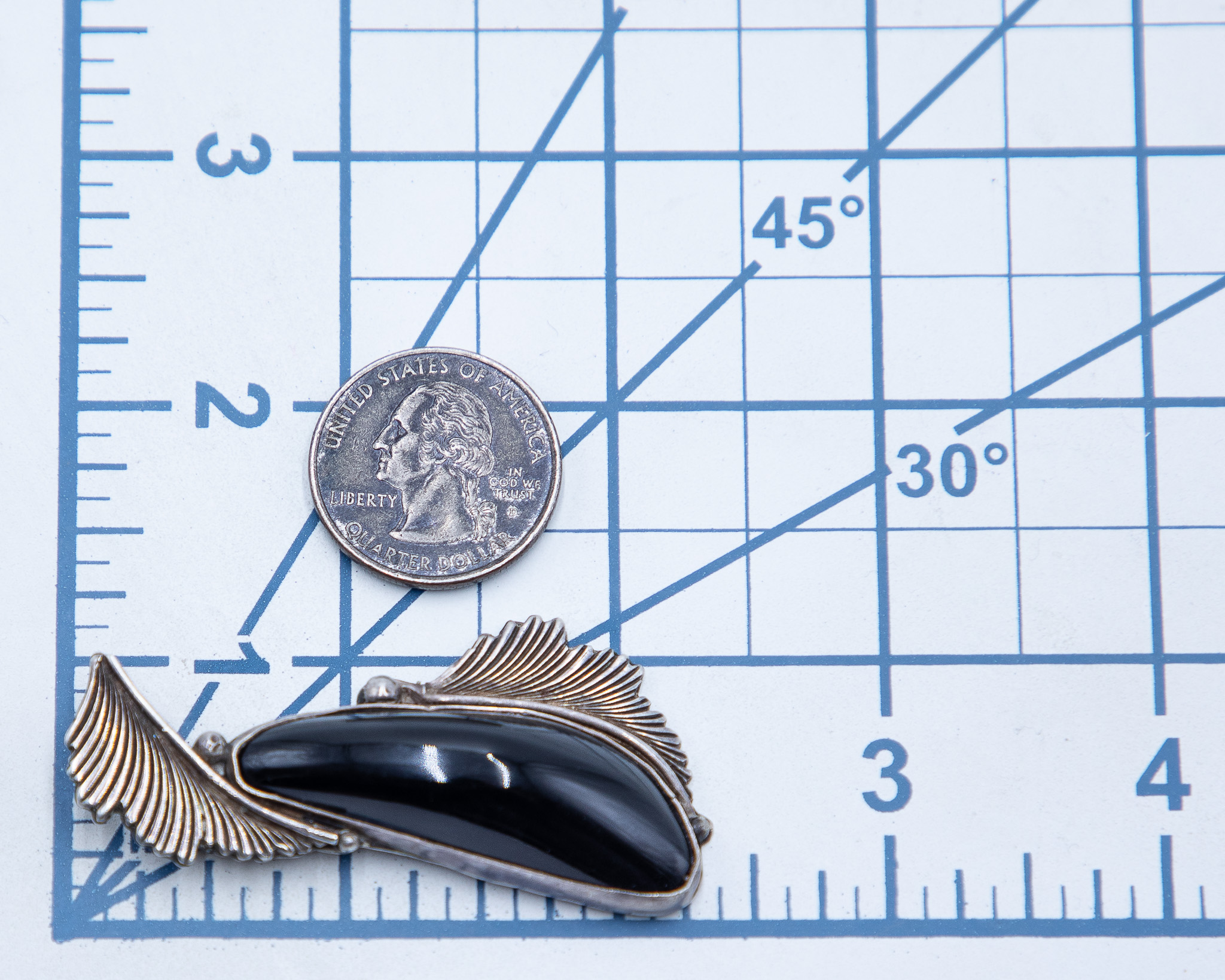 Native American Sterling Onyx Pendant 19g
