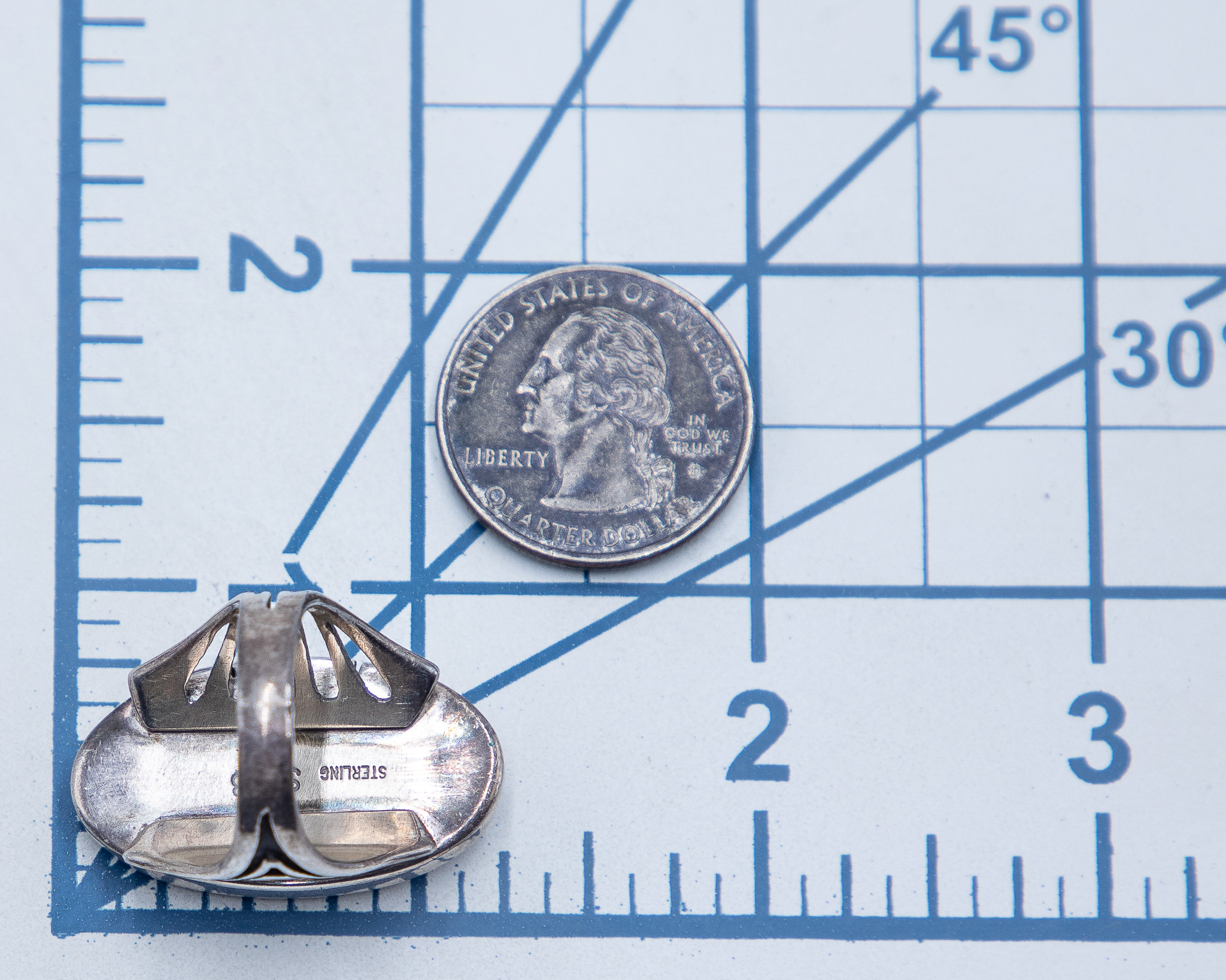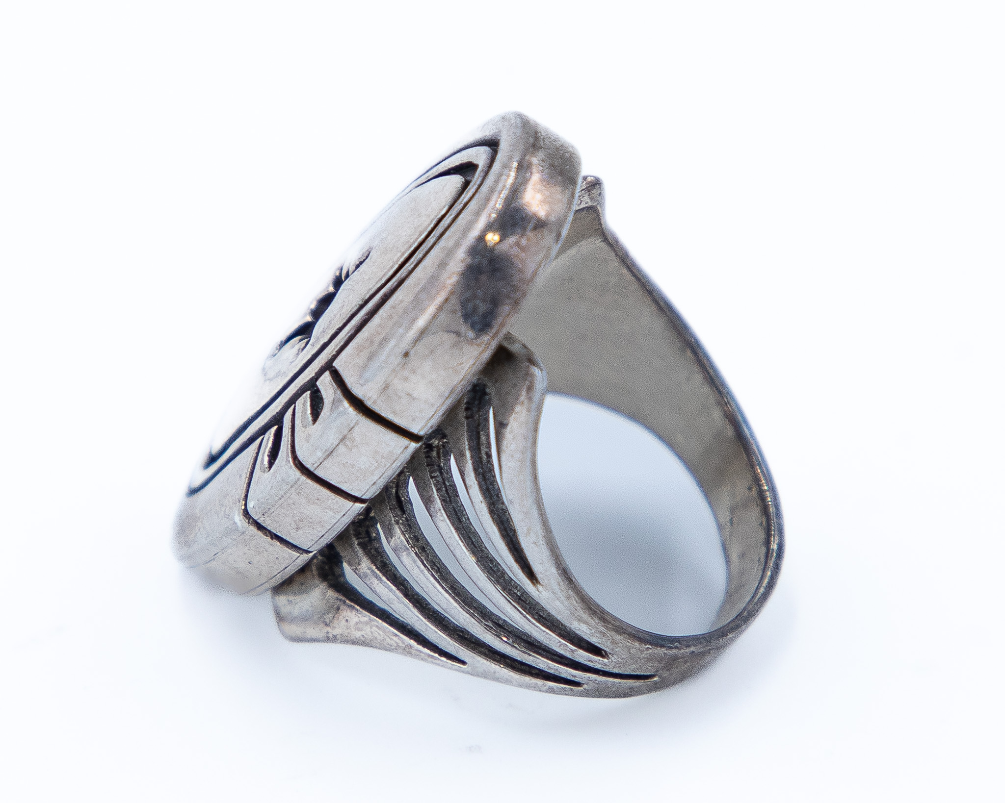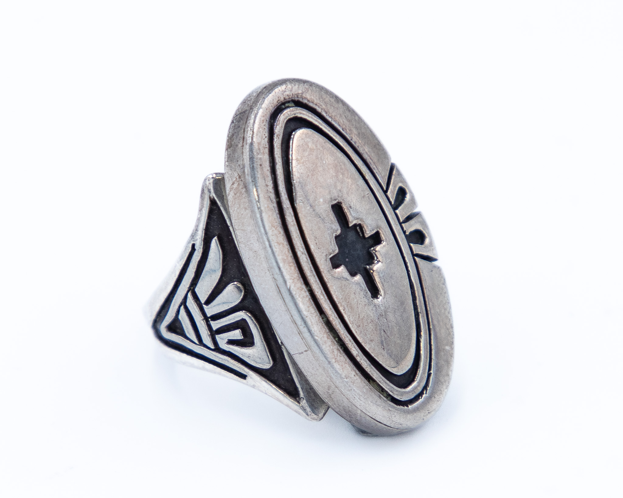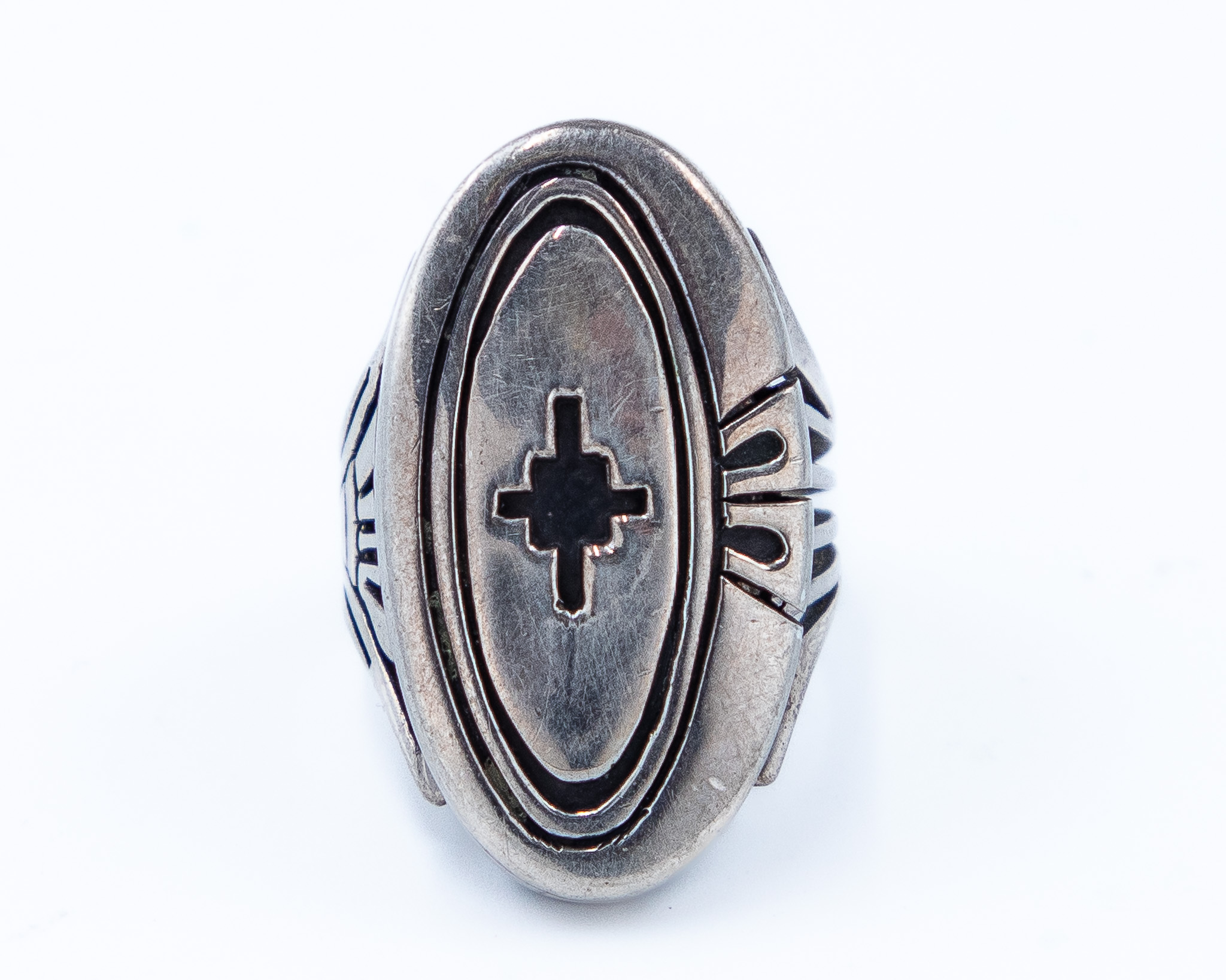 Steven J Begay Navajo Sterling Overlay Ring Sz. 8, 14.5g