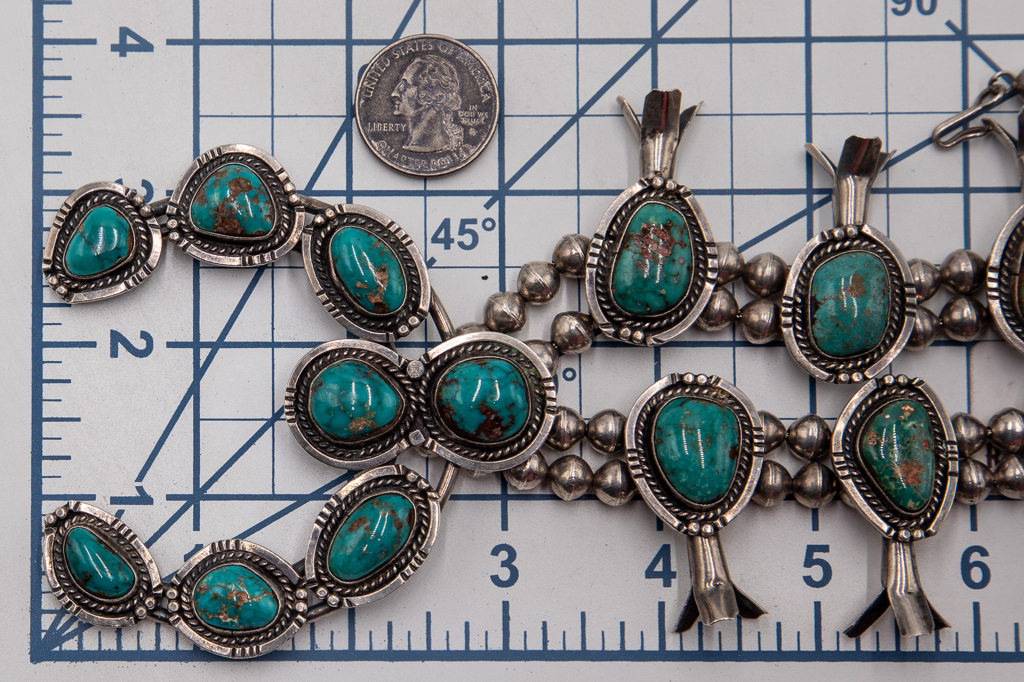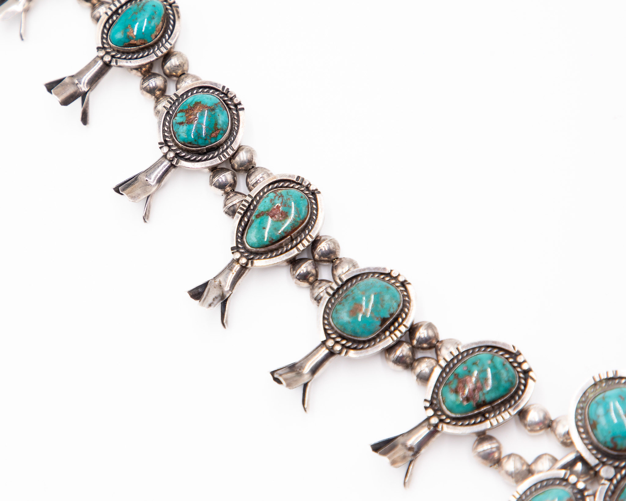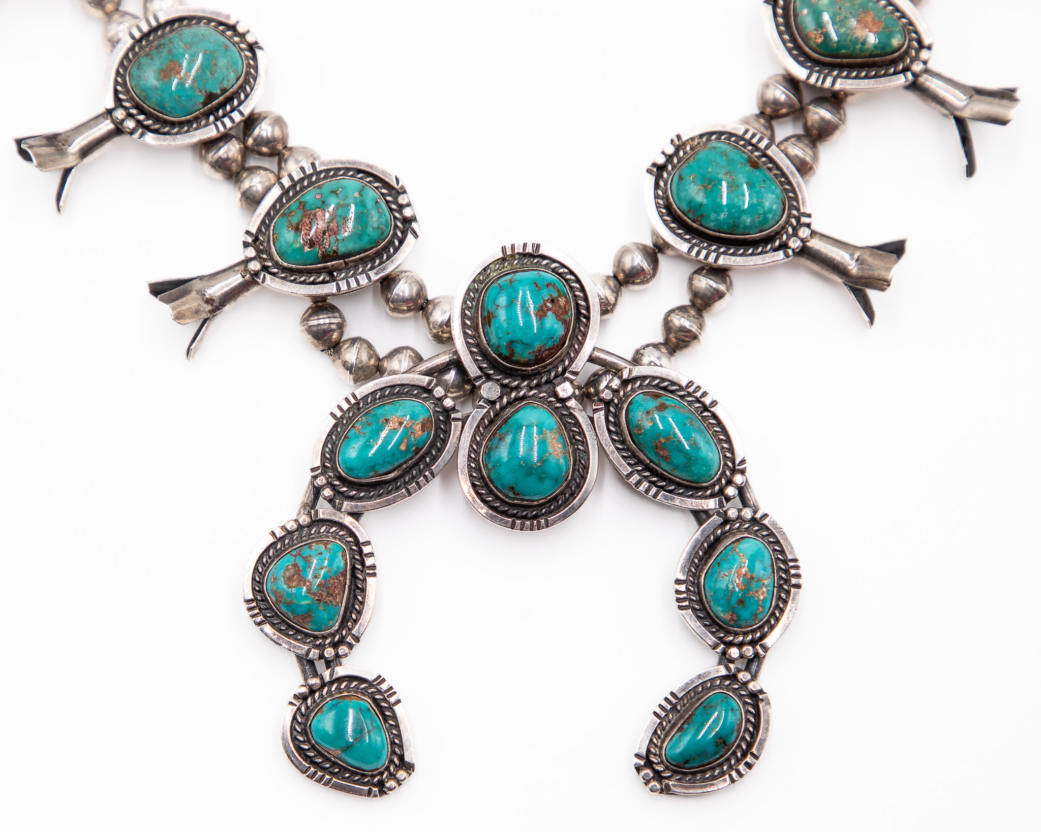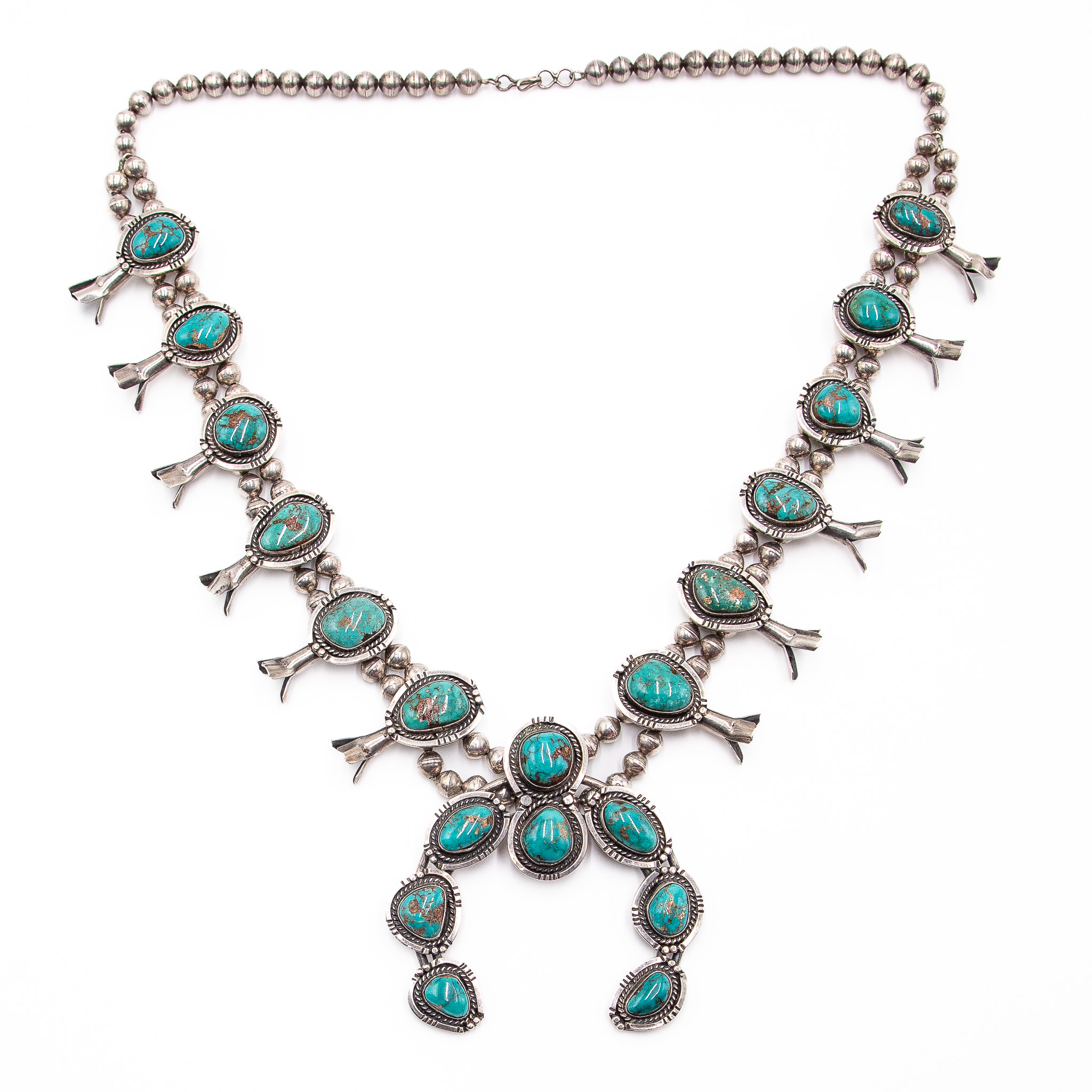 Tony Garcia Turquoise Squash Blossom Necklace 260g-17 Inches