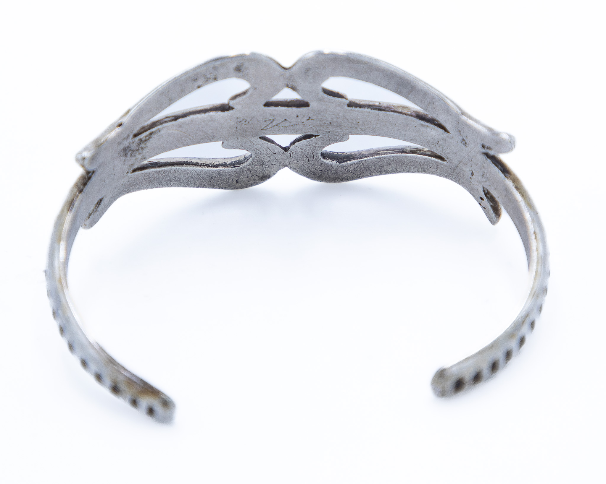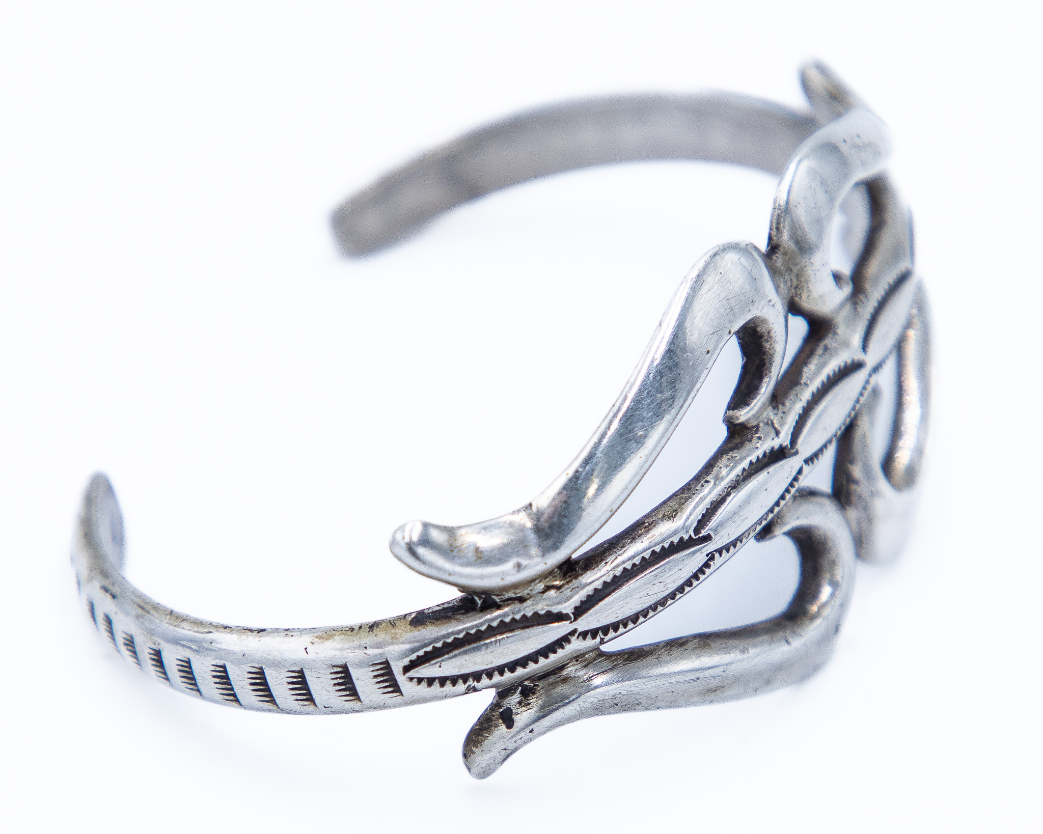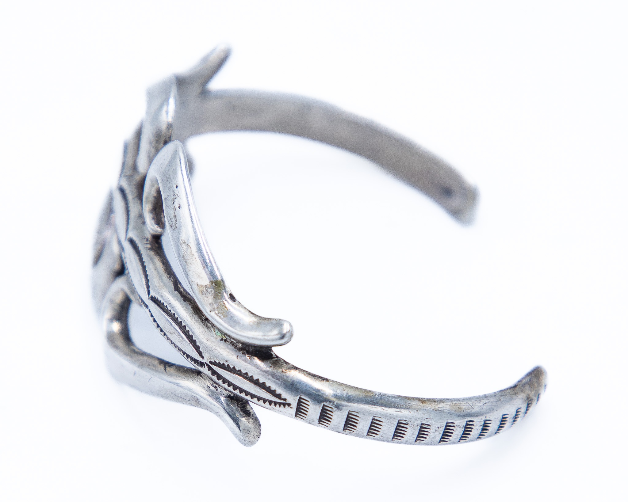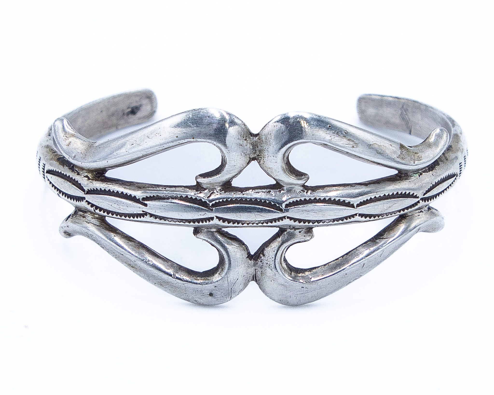 Signed V Navajo Vintage Hand Stamped Sterling Cuff Bracelet 34g