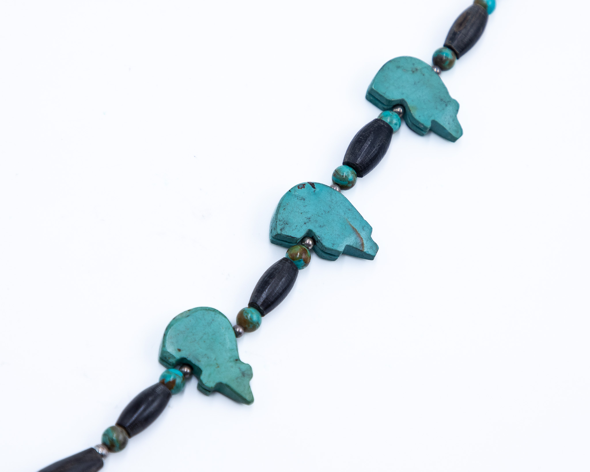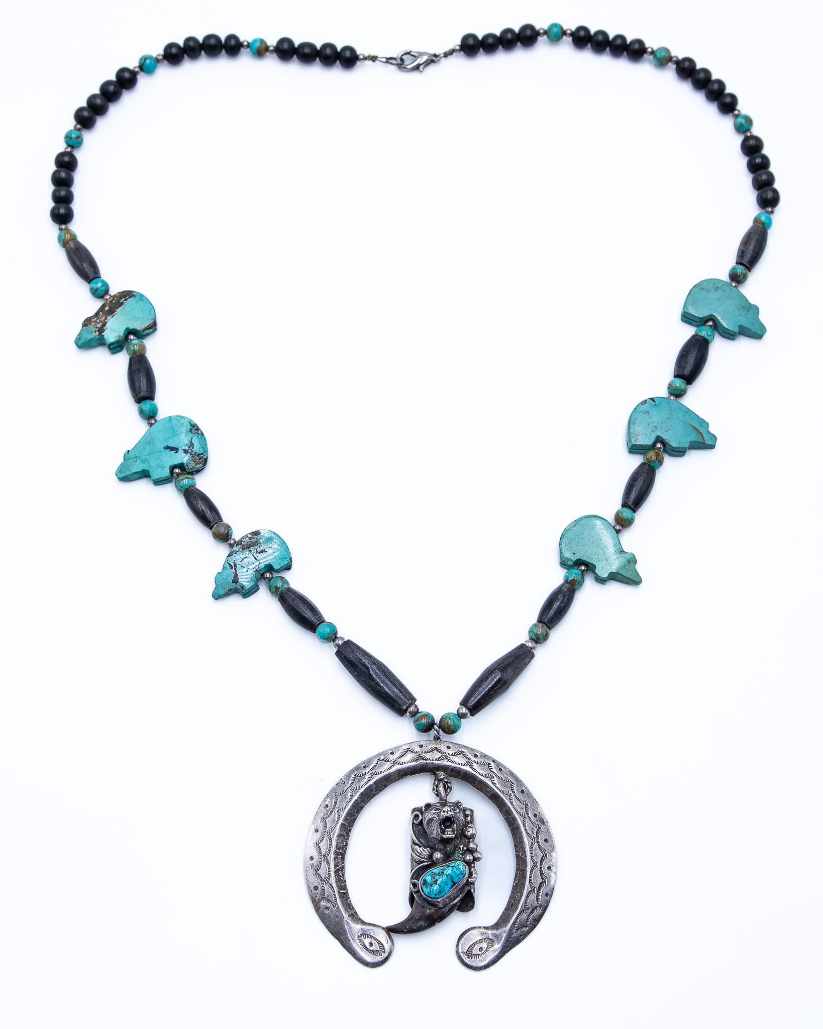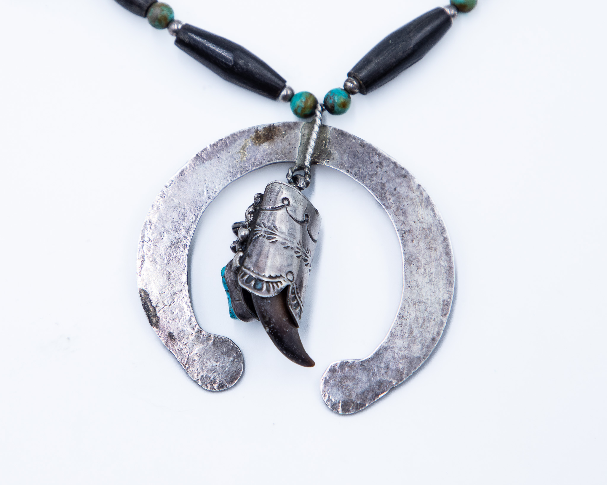 Native Bear Claw Sterling Carved Wood Turquoise Necklace 90.5g