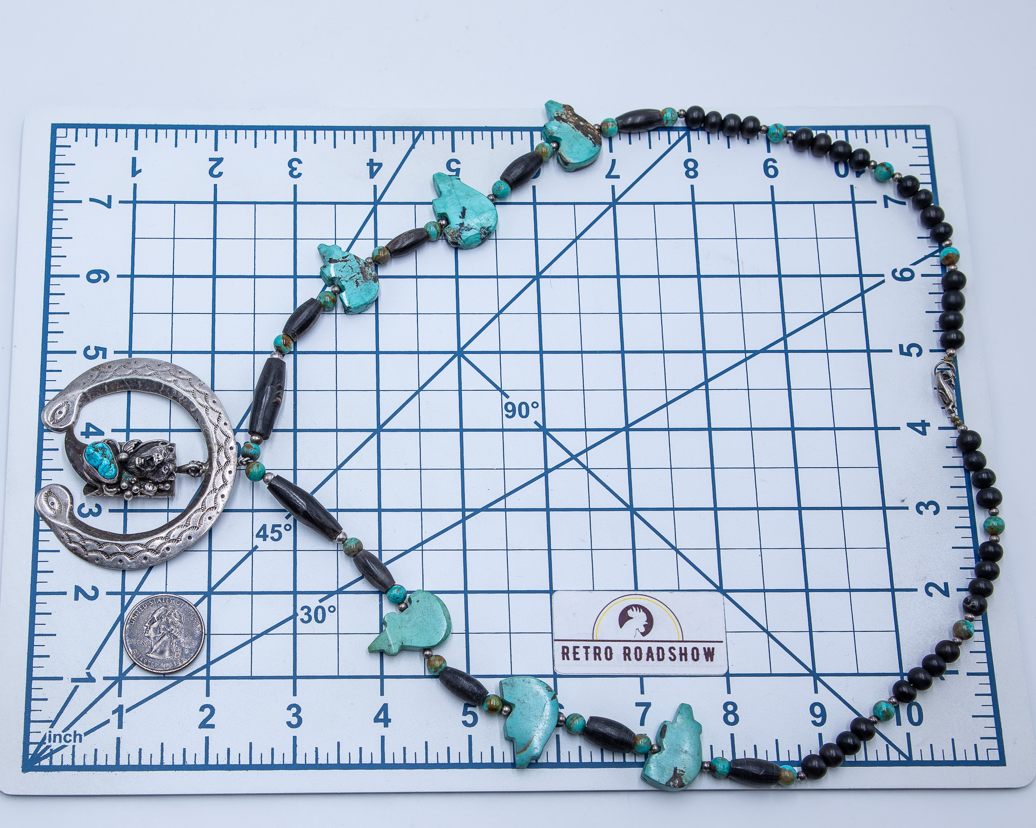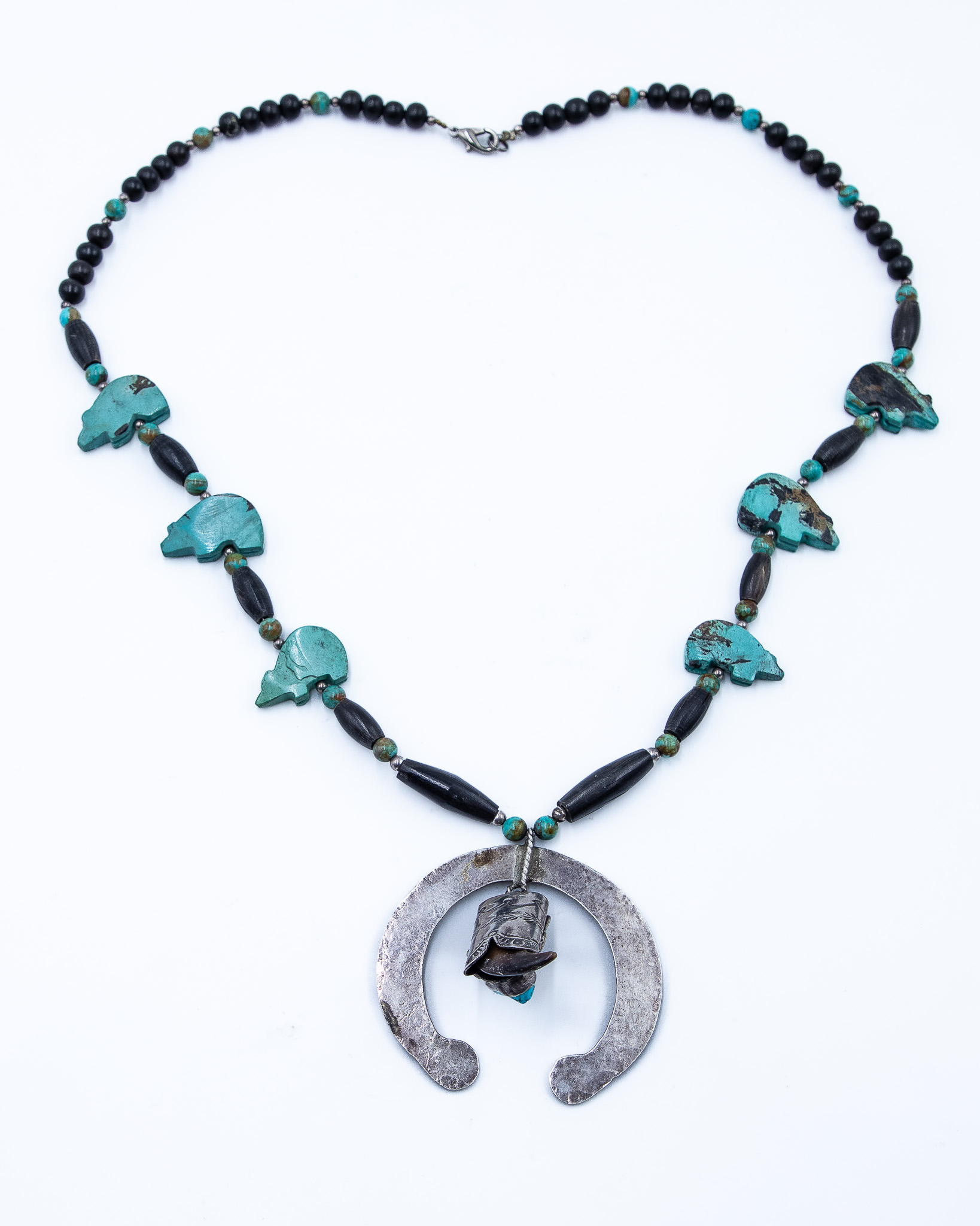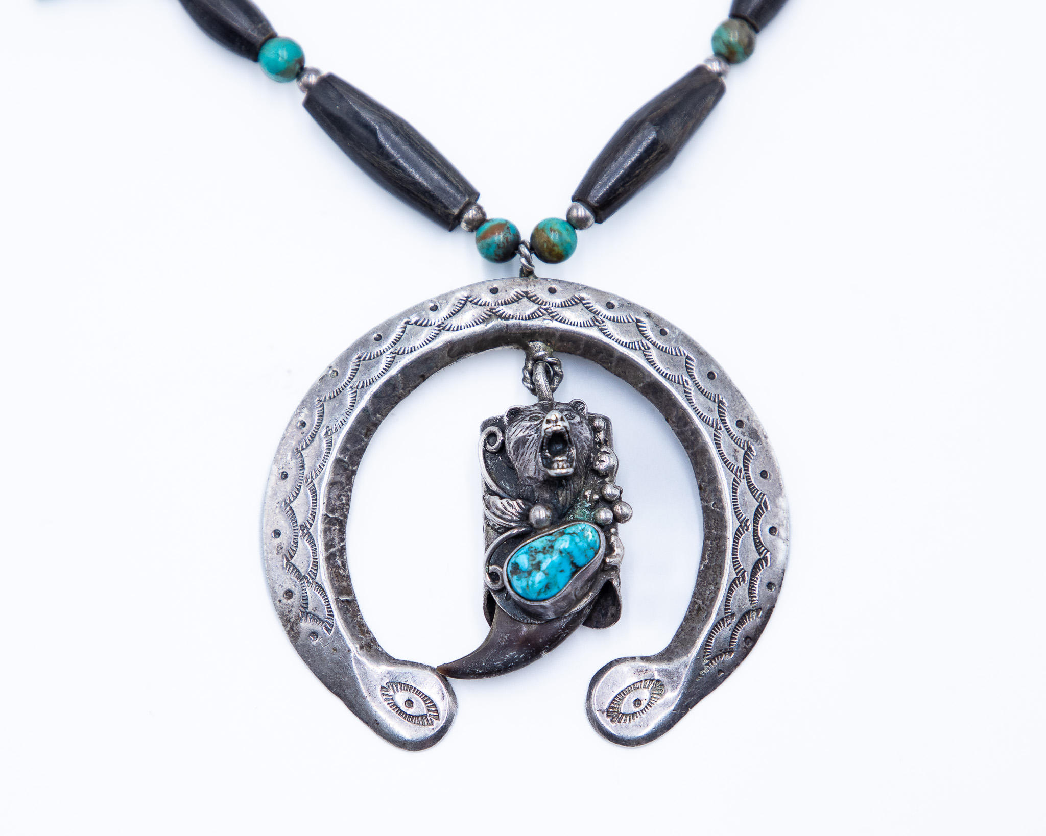 Native Bear Claw Sterling Carved Wood Turquoise Necklace 90.5g