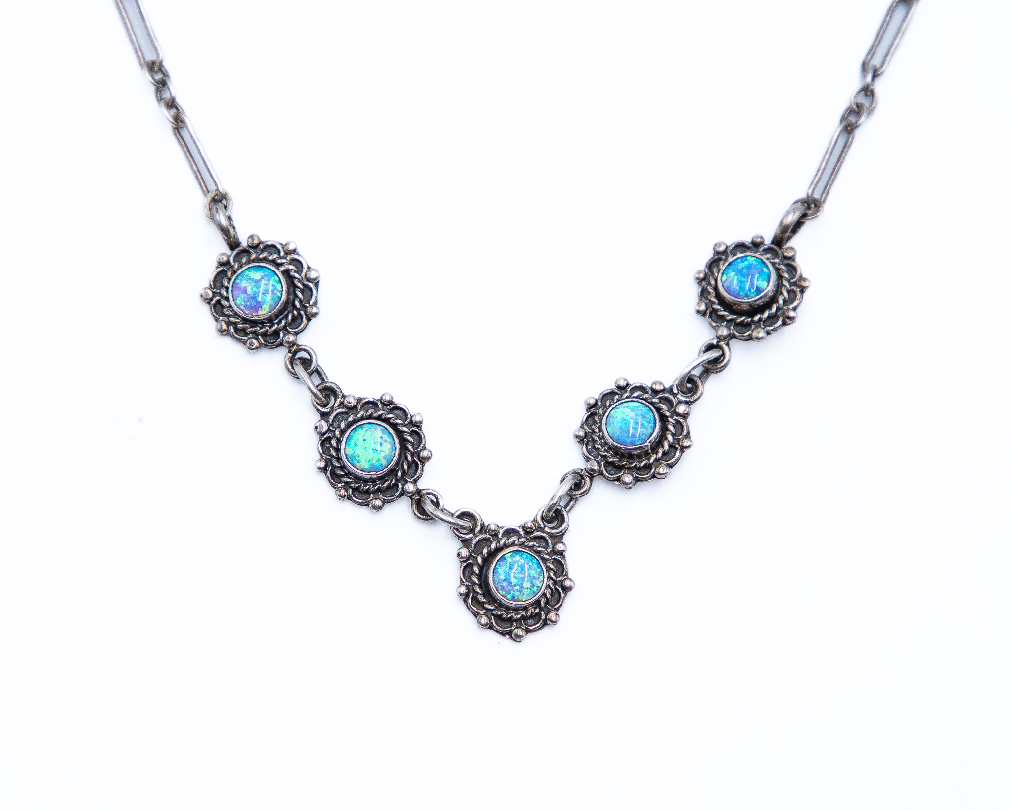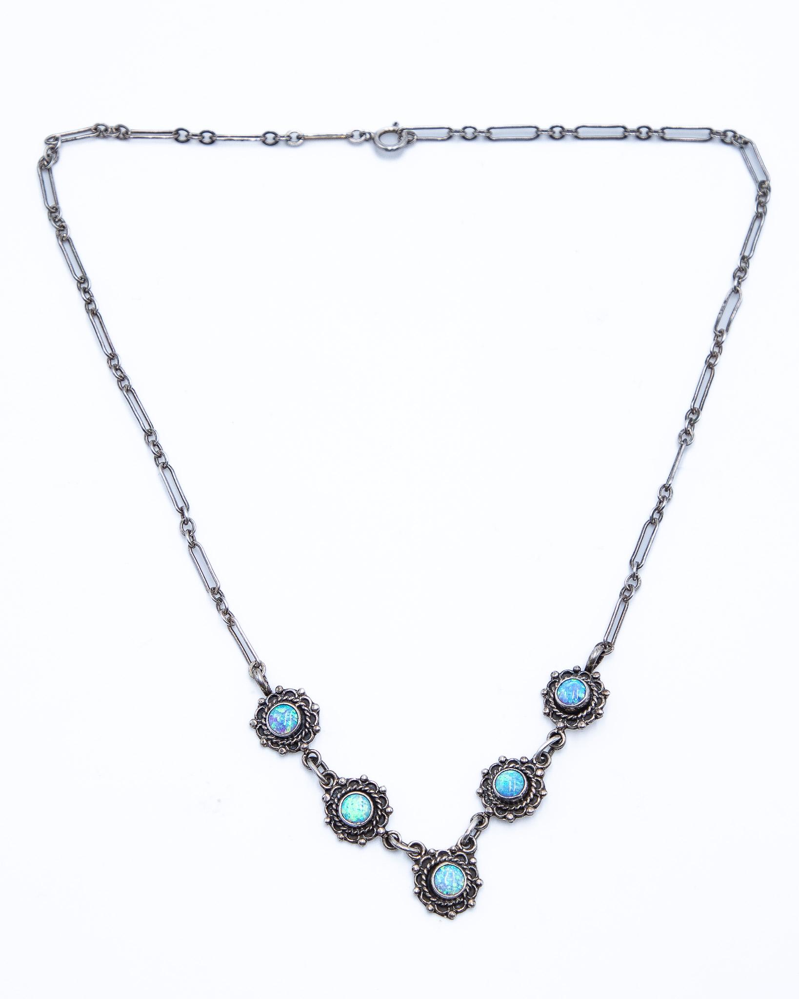 Richard Begay Navajo Sterling Synthetic Opal Necklace 14g